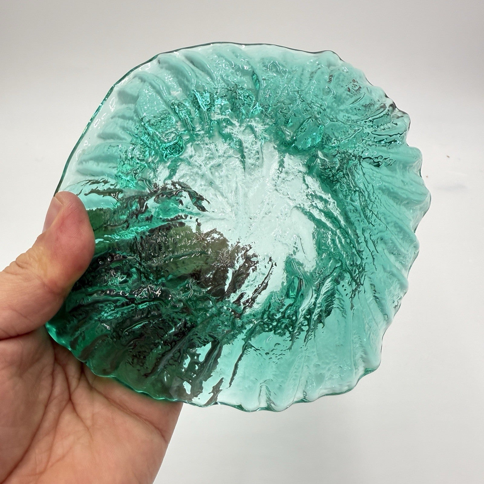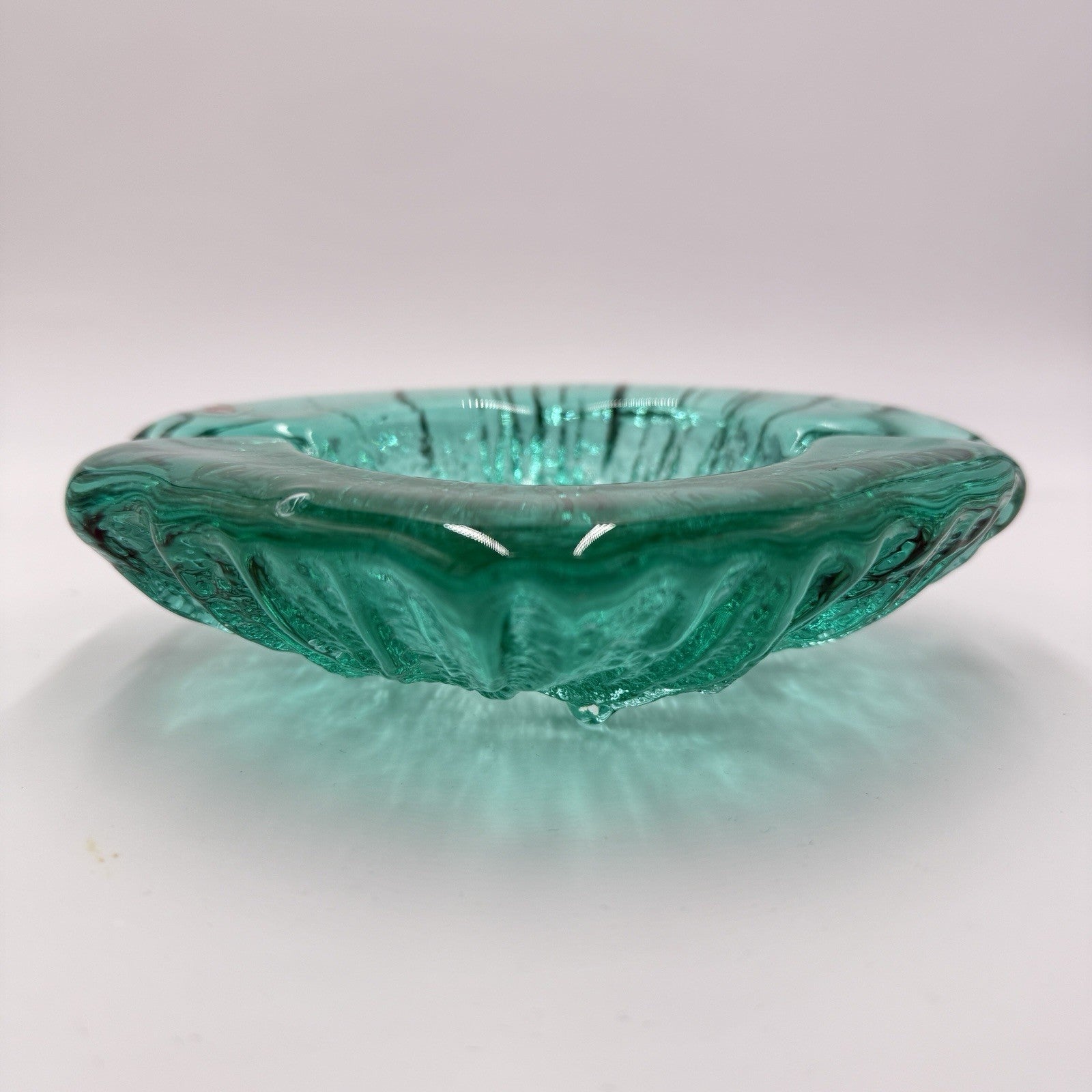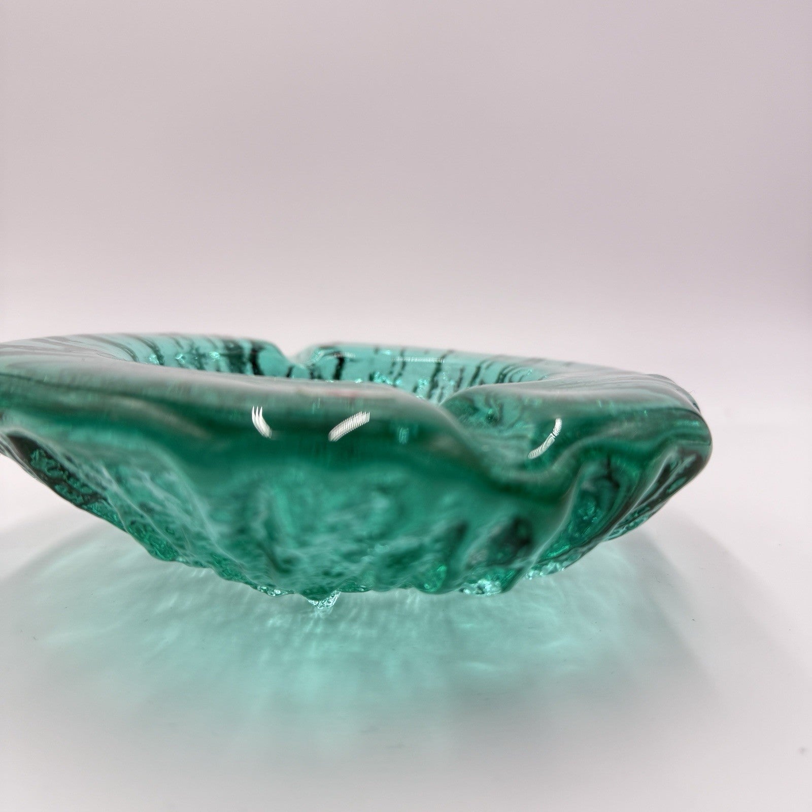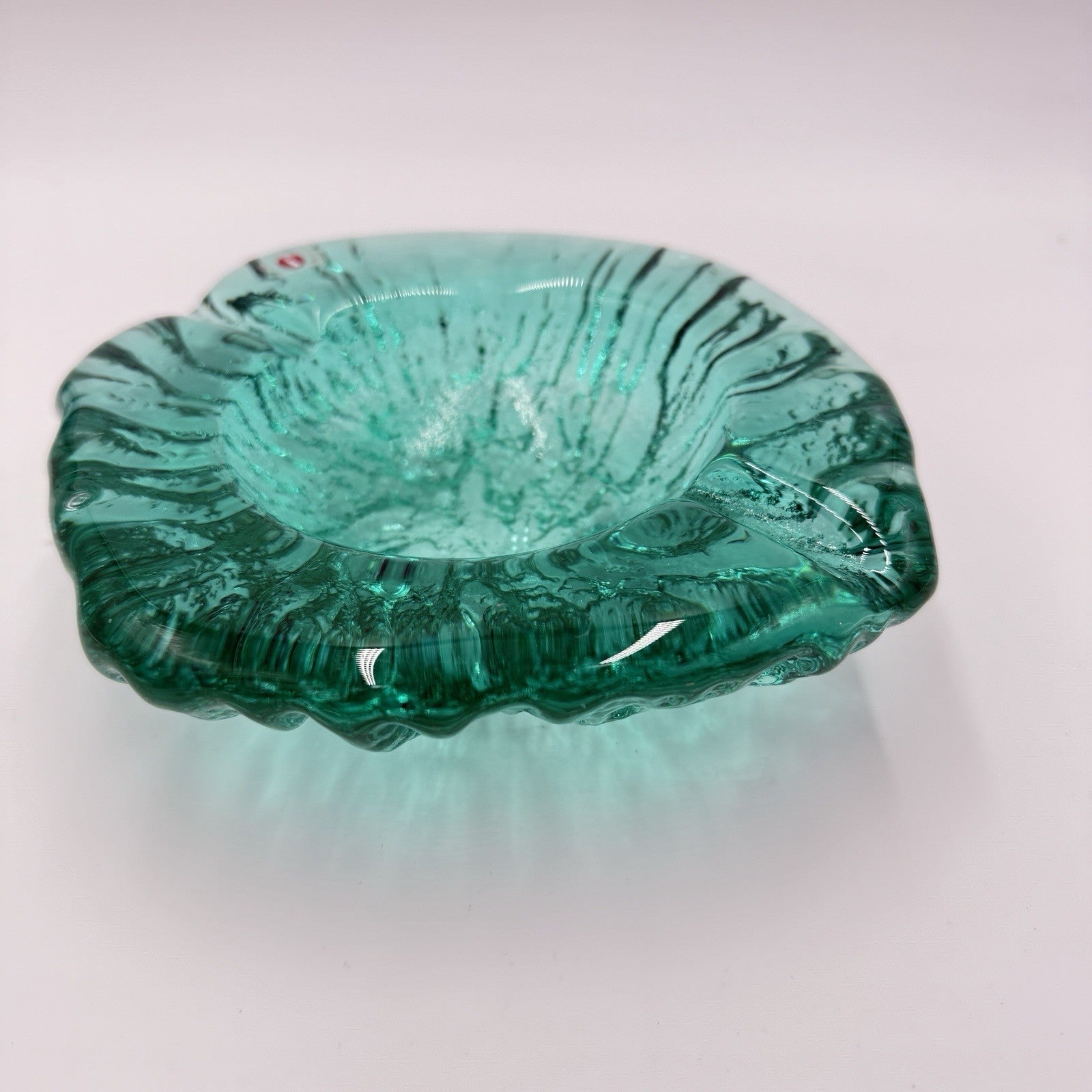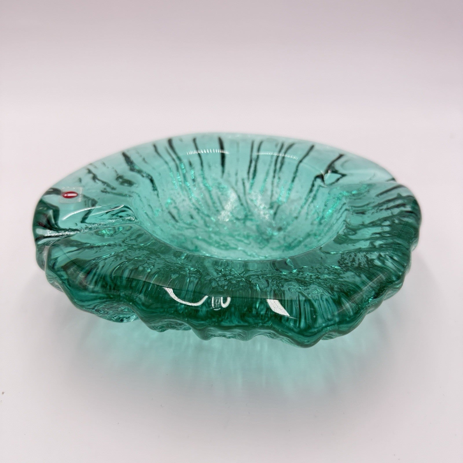 iittala Finland art glass green emerald ashtray footed bowl Rare 2” X 6.5”L X6”w