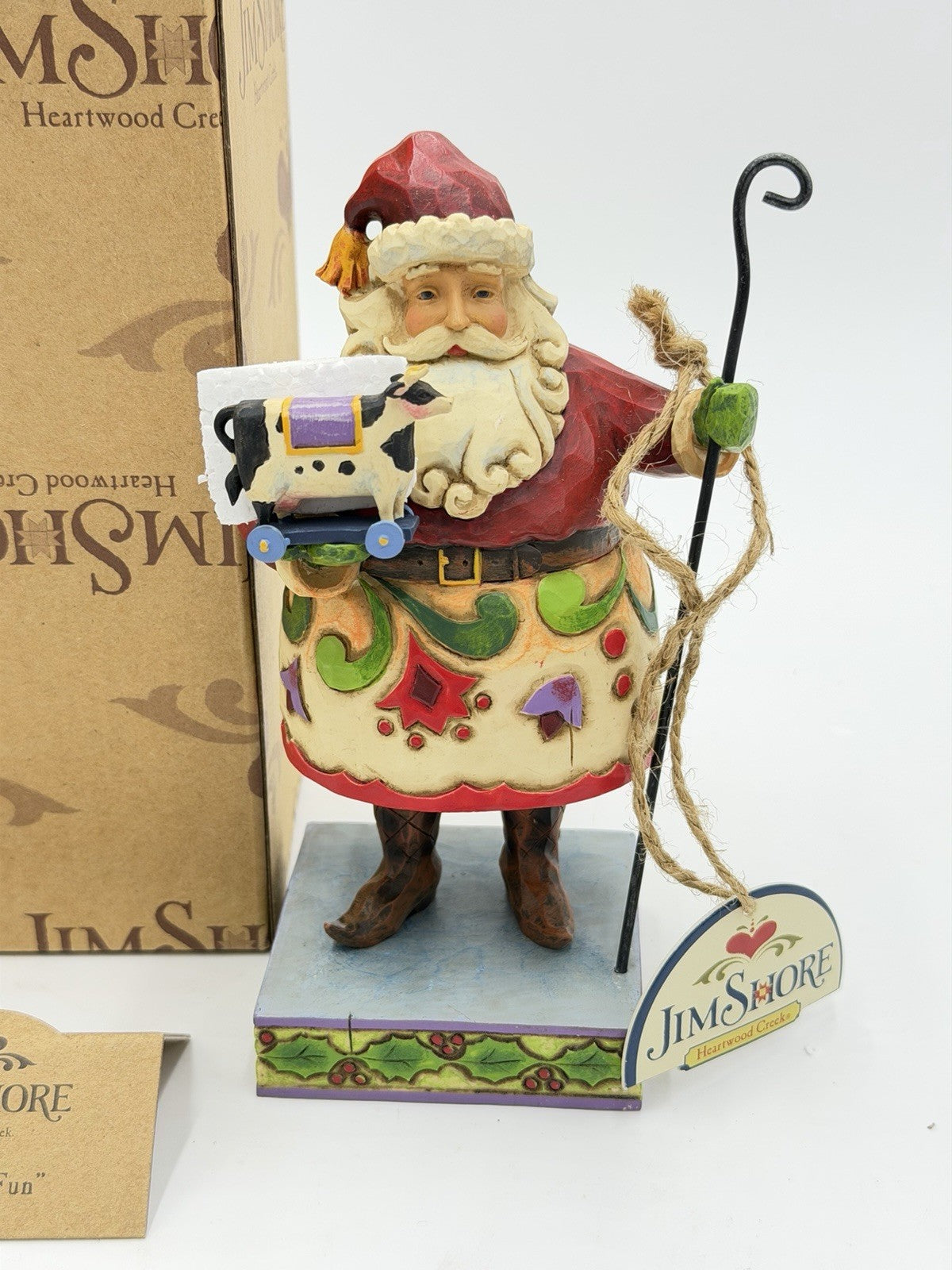 Jim Shore Heartwood Creek Holiday Fun 2008 Santa With Toy Cow Figurine