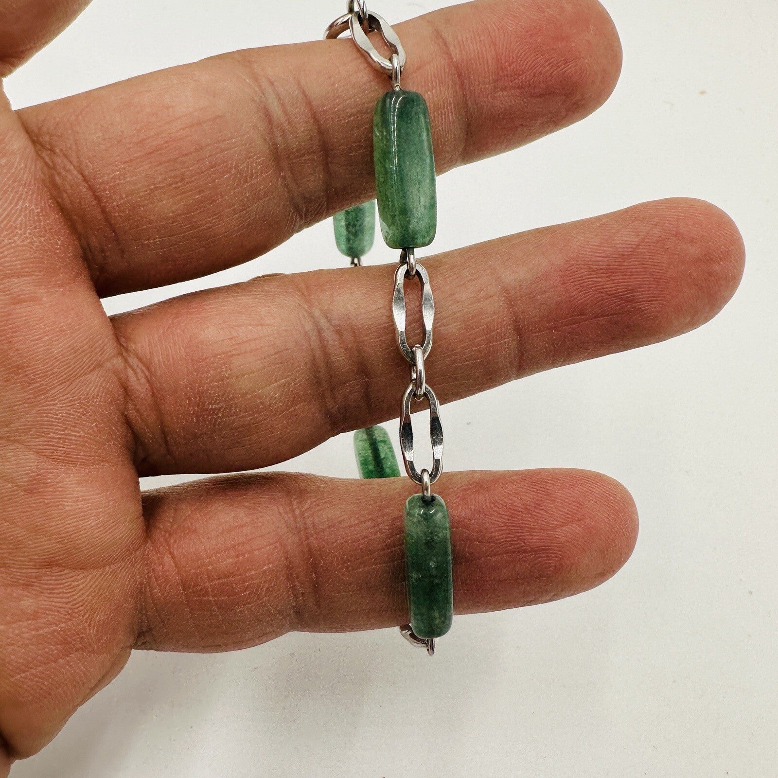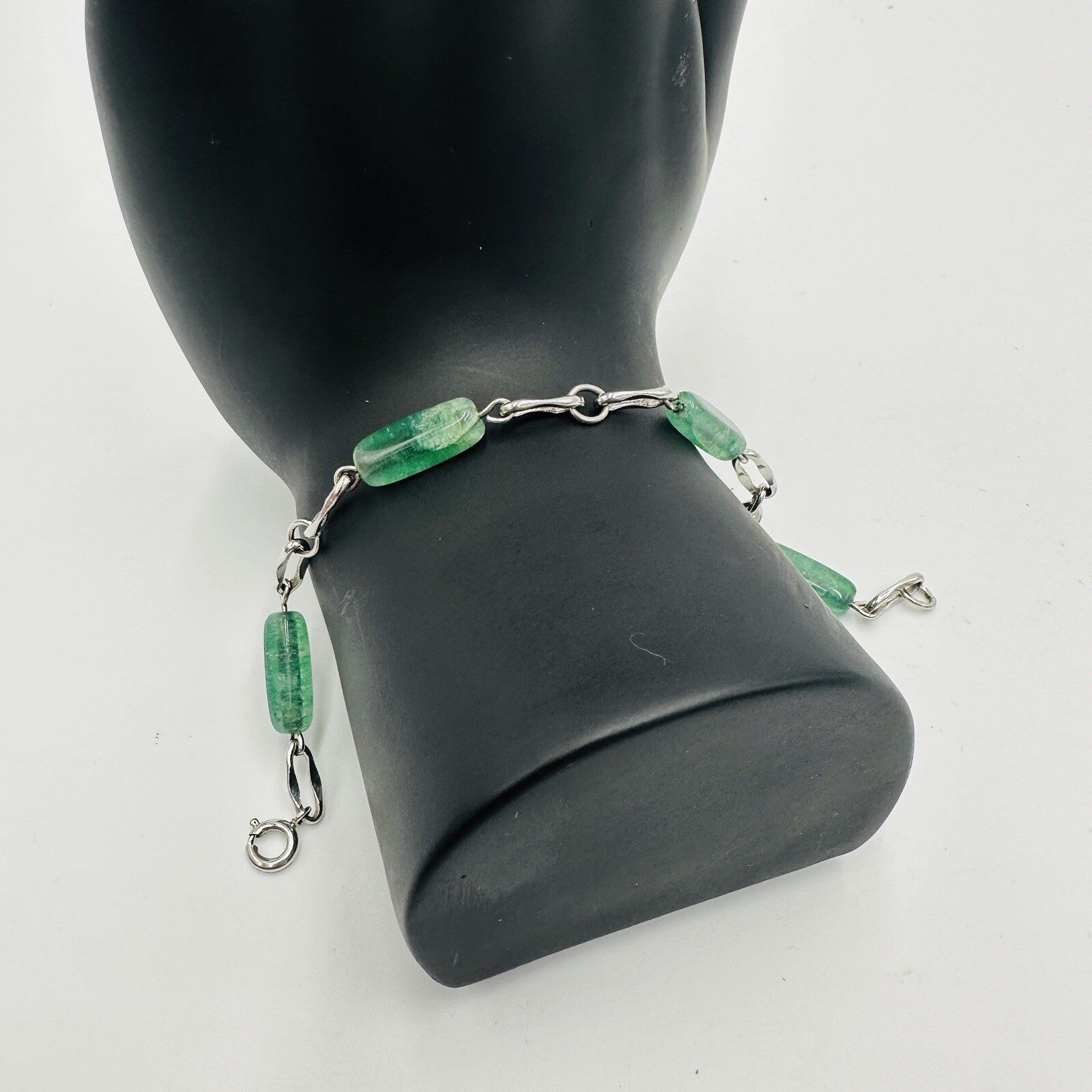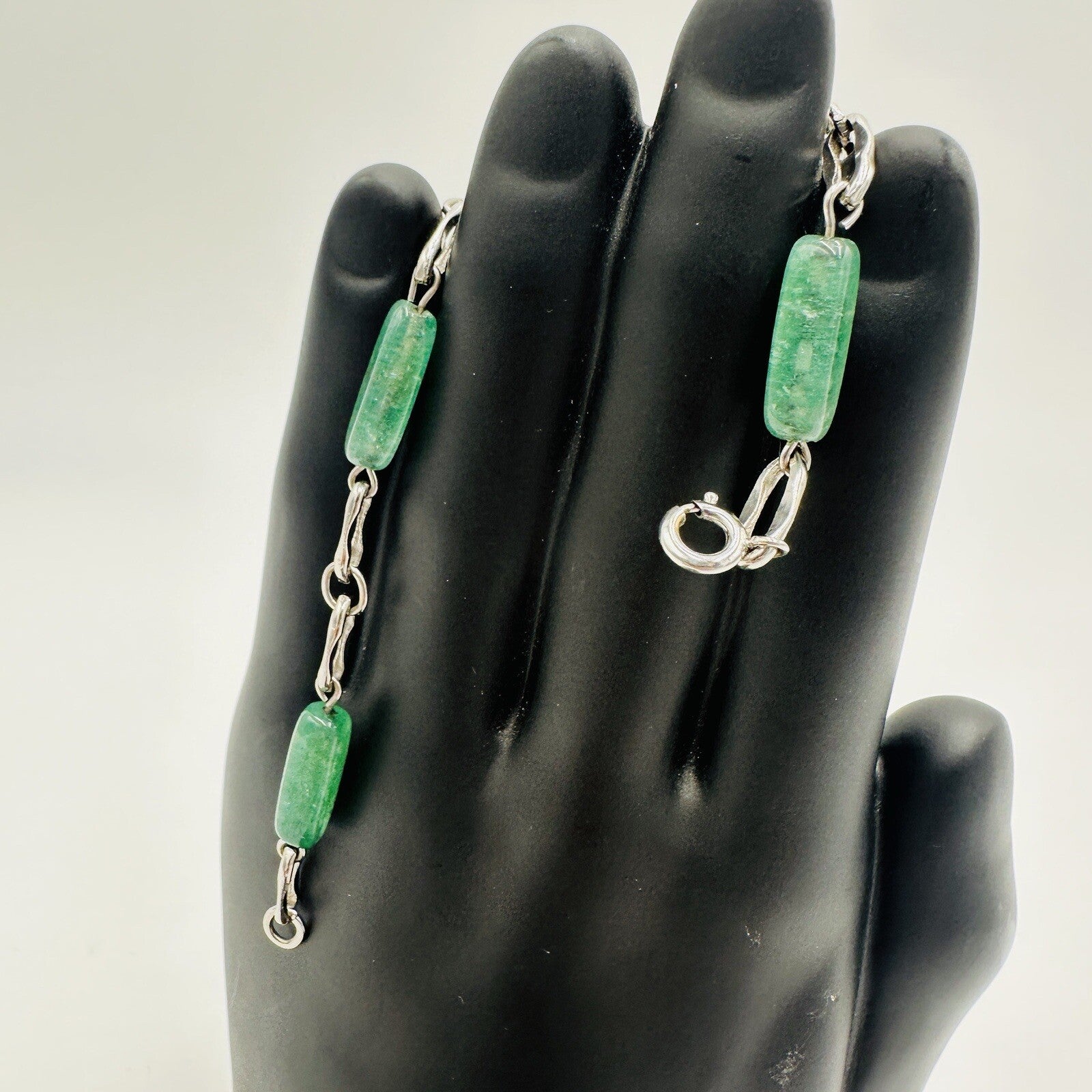 Vintage KREMENTZ Sterling Silver Green Glass Jade Bracelet.