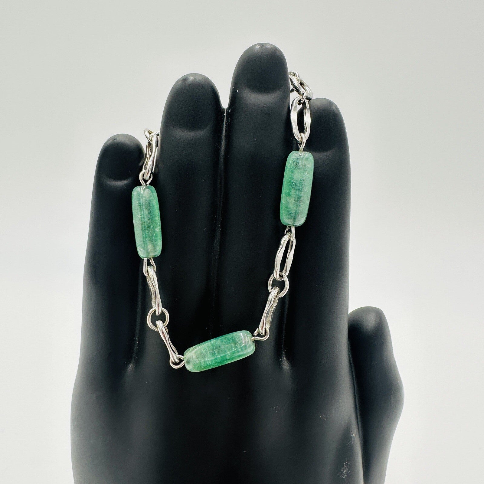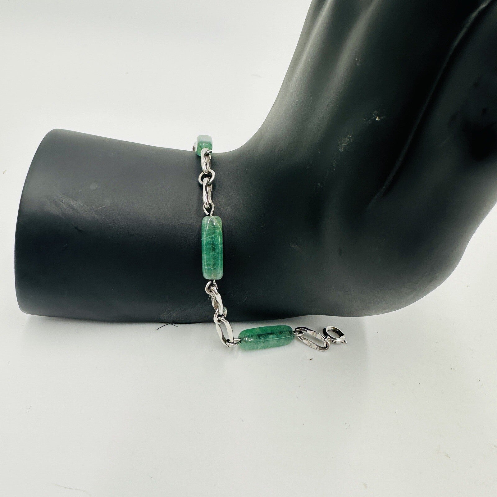 Krementz Bracelet Women's Jewelry Sterling Silver Green Glass Jade Vintage Mark