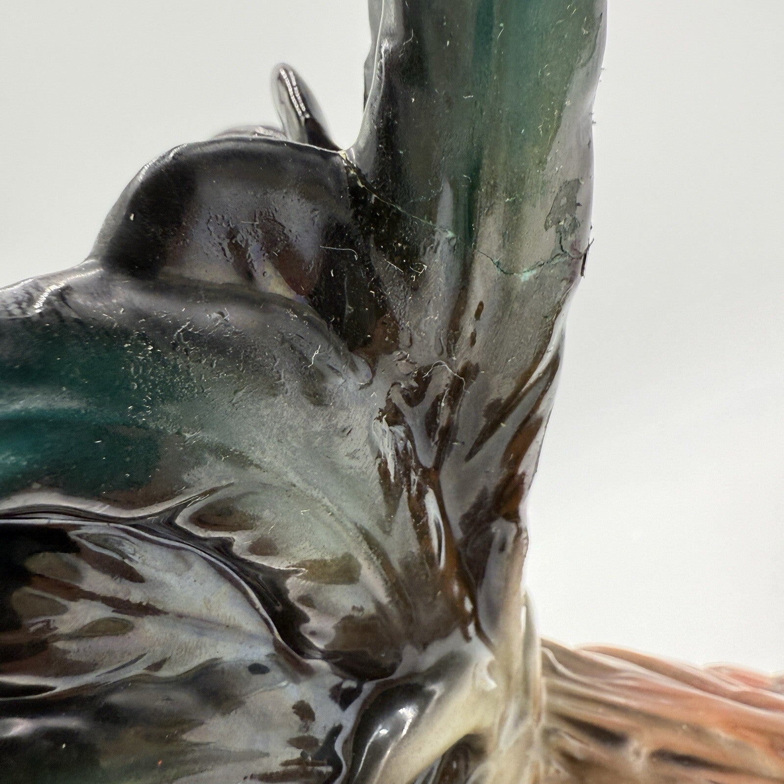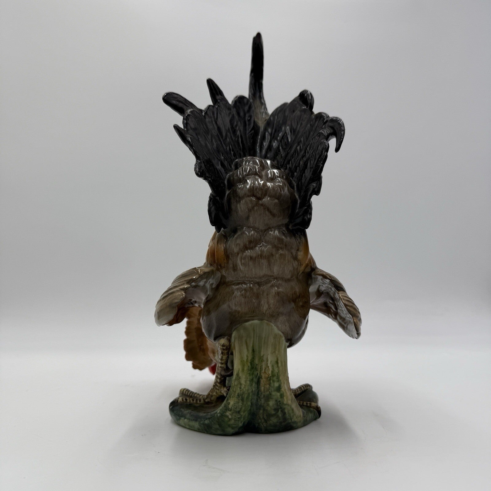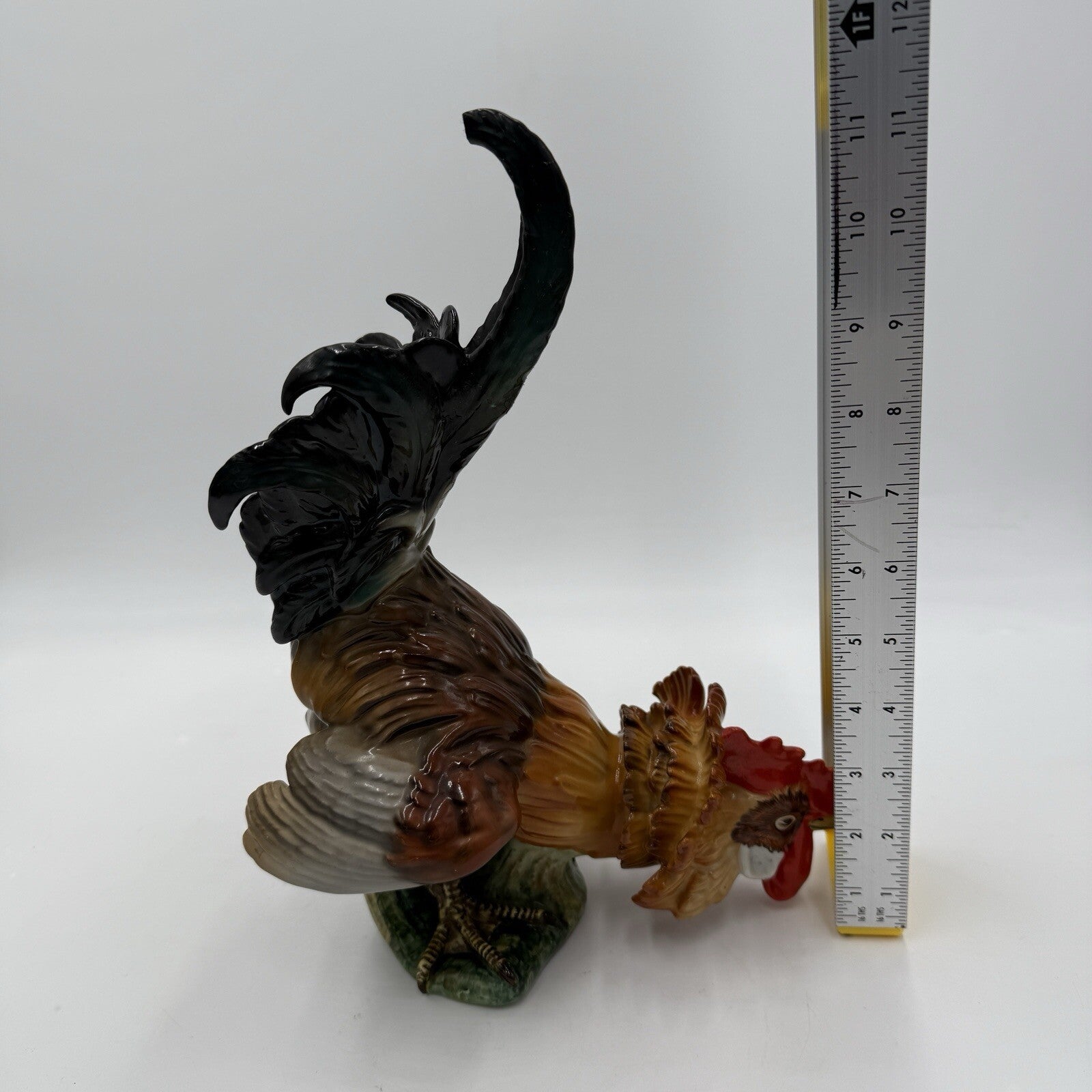 This vintage Algora C.Martinu hand-painted rooster figurine is a stunning addition to any room. The matte painted finish and multicolor design make it a unique piece that is sure to catch the eye. Measuring at 11 inches in height and width, this large figurine is perfect for all occasions and any farm animal themed collection.