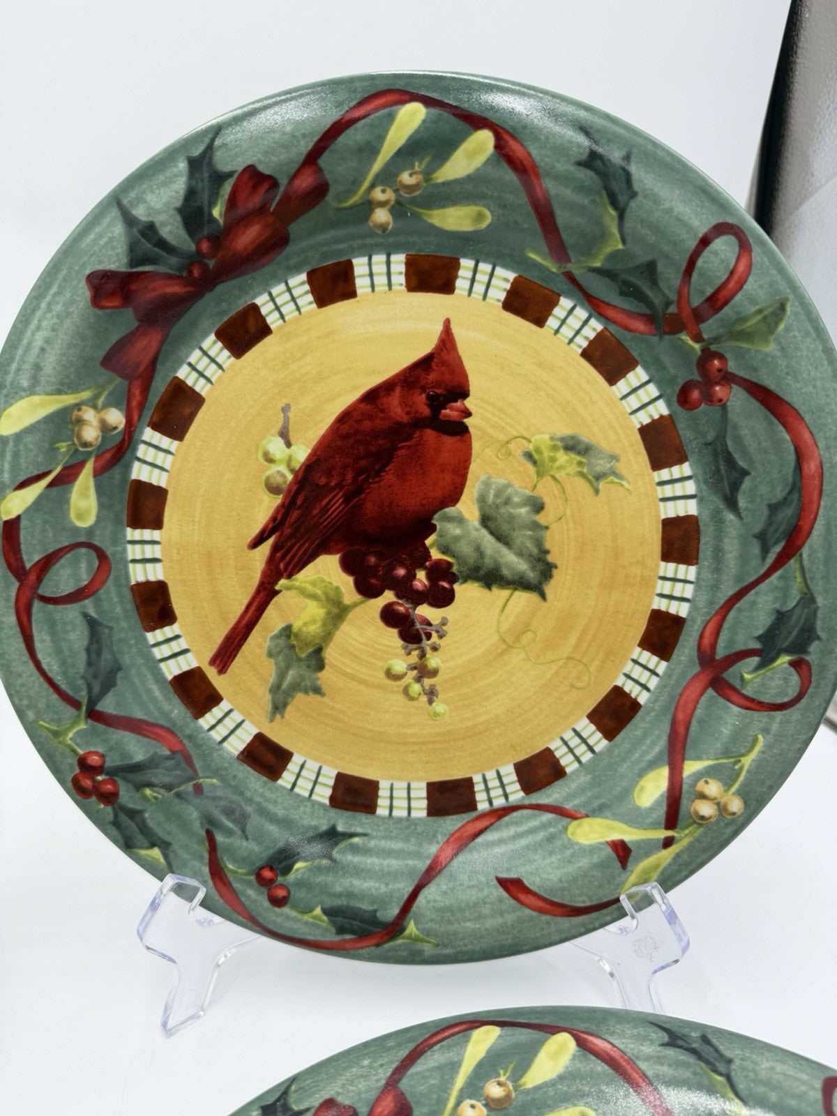 Lenox Porcelain Winter Greetings Everyday Dinner Plates Cardinal Chickadee Set 4