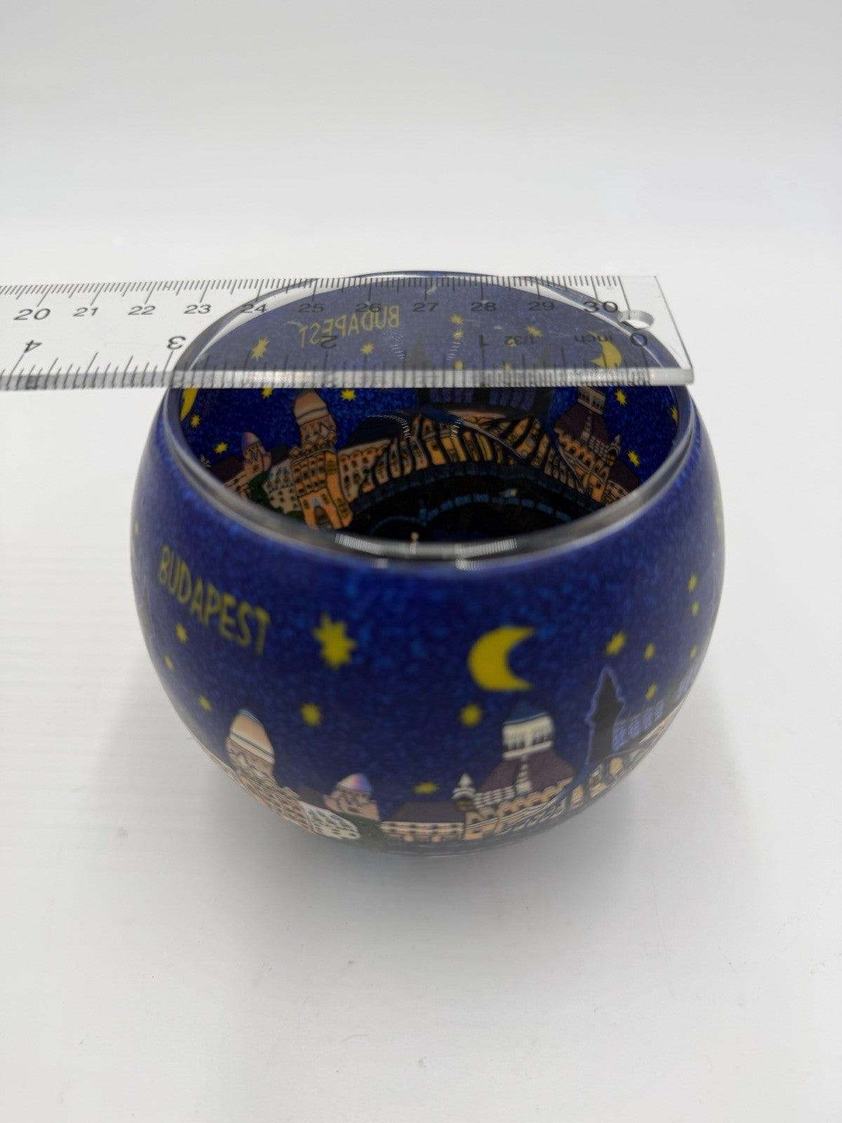 Leuchtglas germany art glass votive candle holder city Budapest Hungary 3.5”x3”