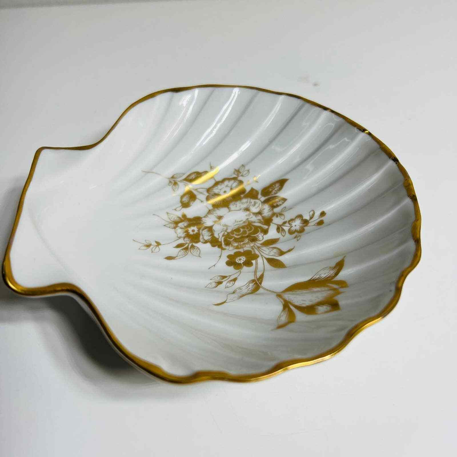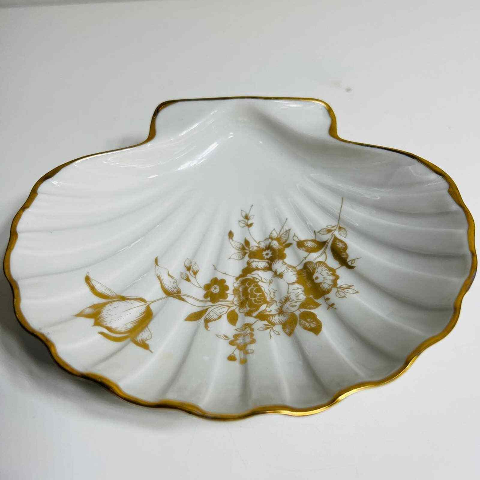 Hand Painted Shell Trinket Dish Limoge FRANCE - White and Gold - Flowers