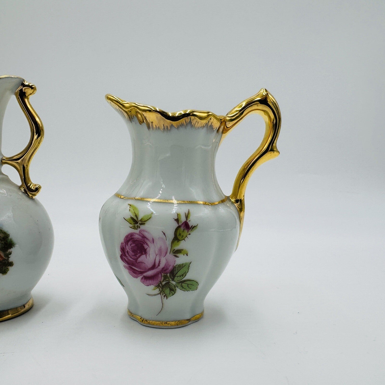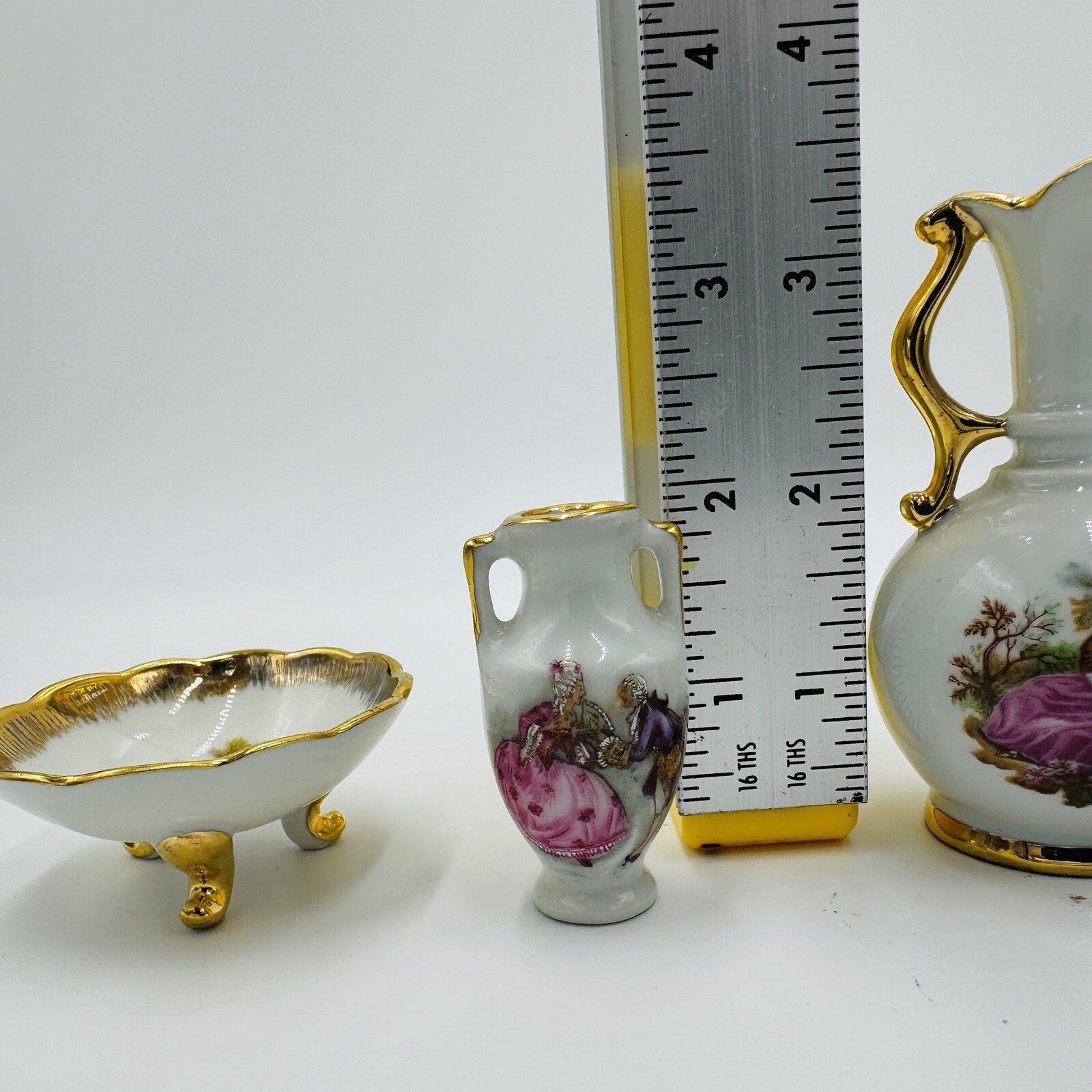 Limoges France Porcelain Miniature Painted Set Mini Vase Urn Bowl