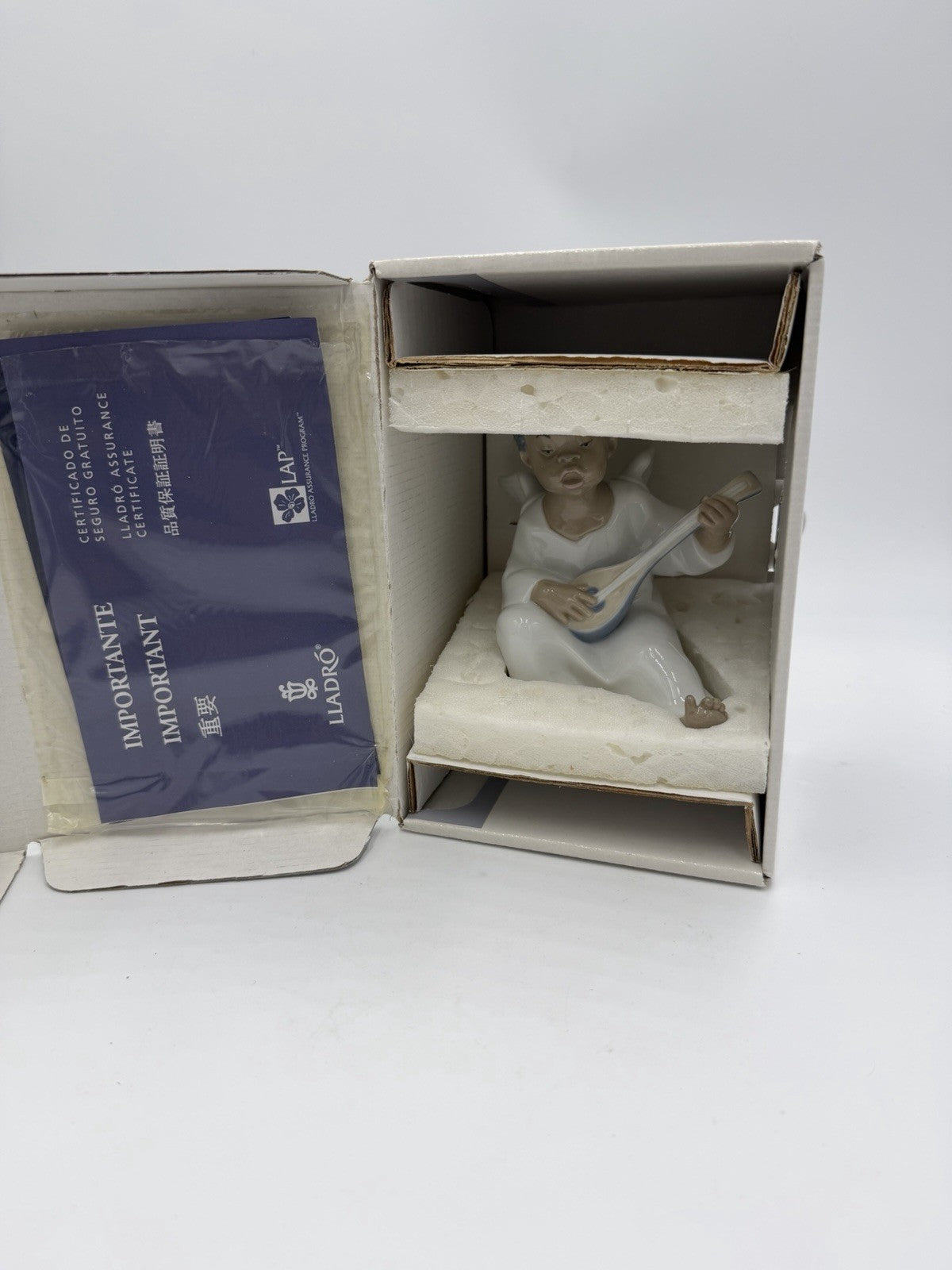 Lladro Spain Porcelain Angel Playing Mandolin Seated Boy Figurine NIB Retired Vt