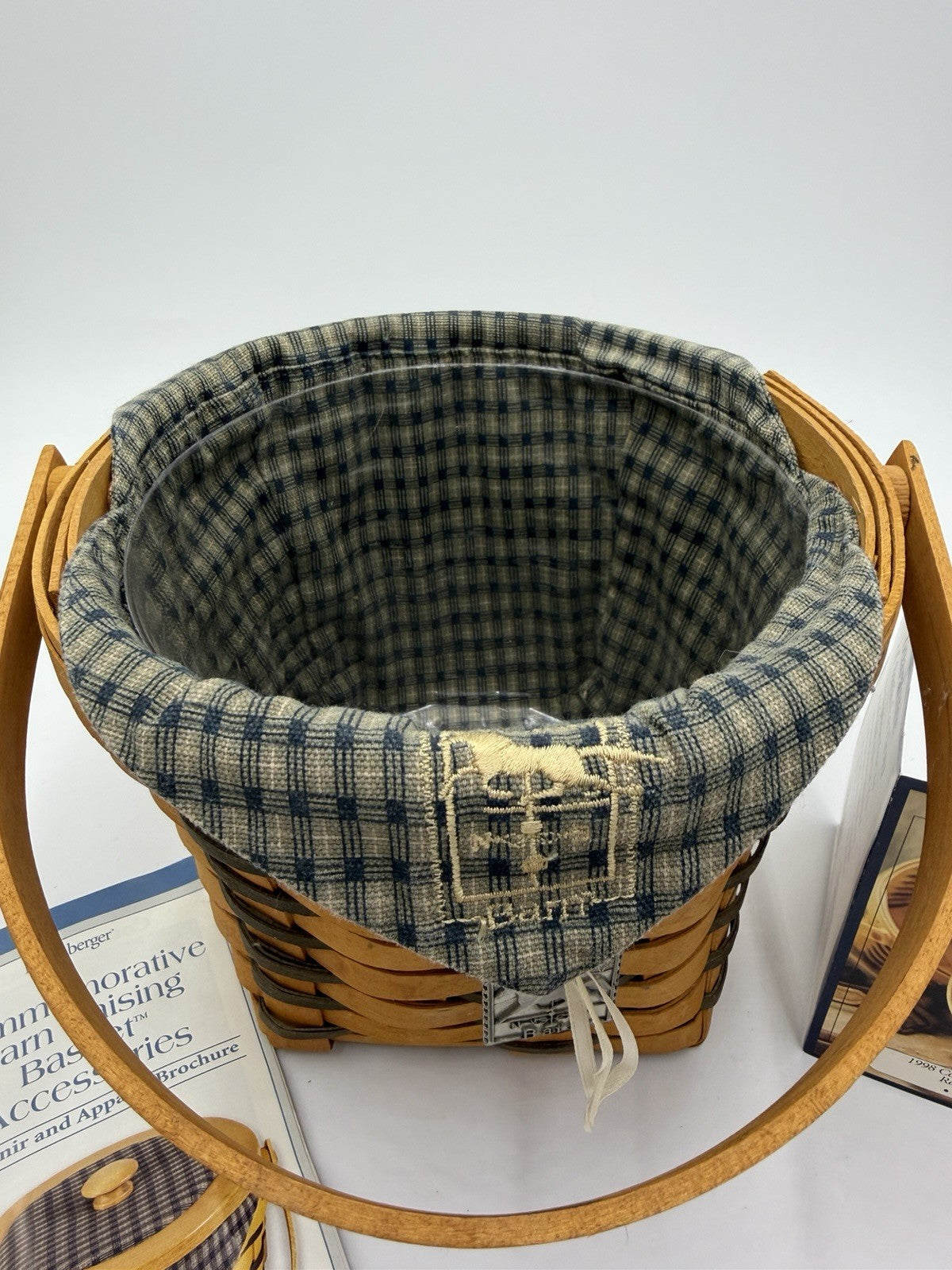 Longaberger Crawford Barn Raising Basket Tie-on Liner Protector Lid Vtg Horse