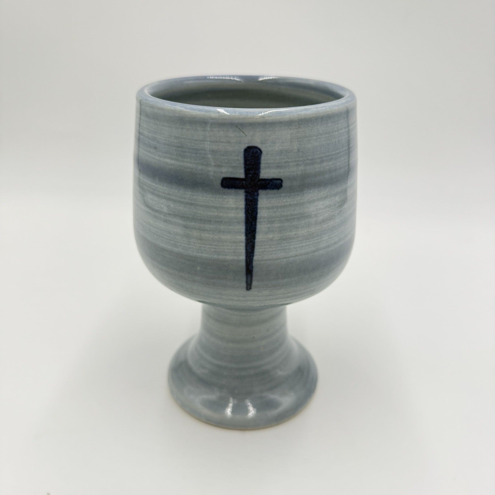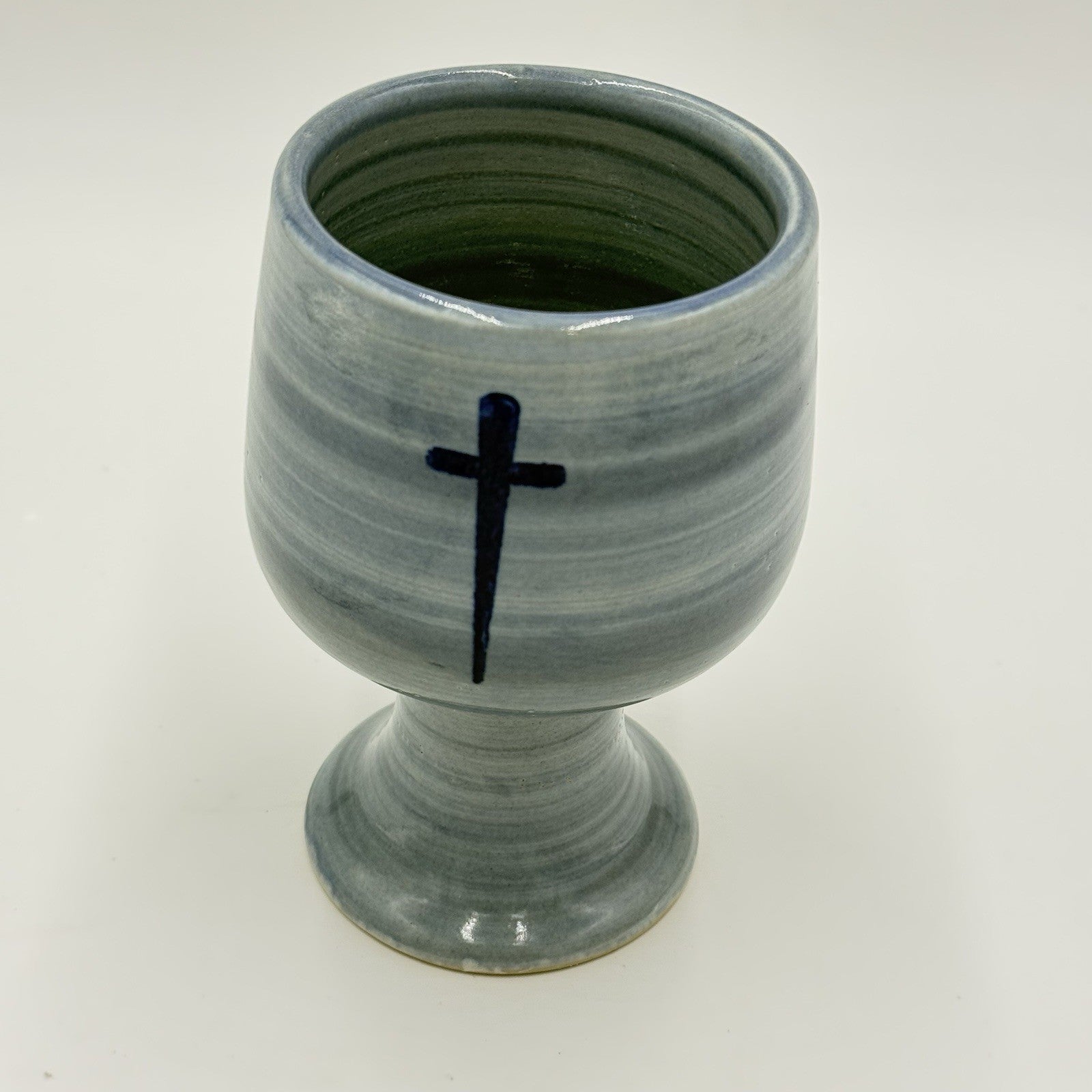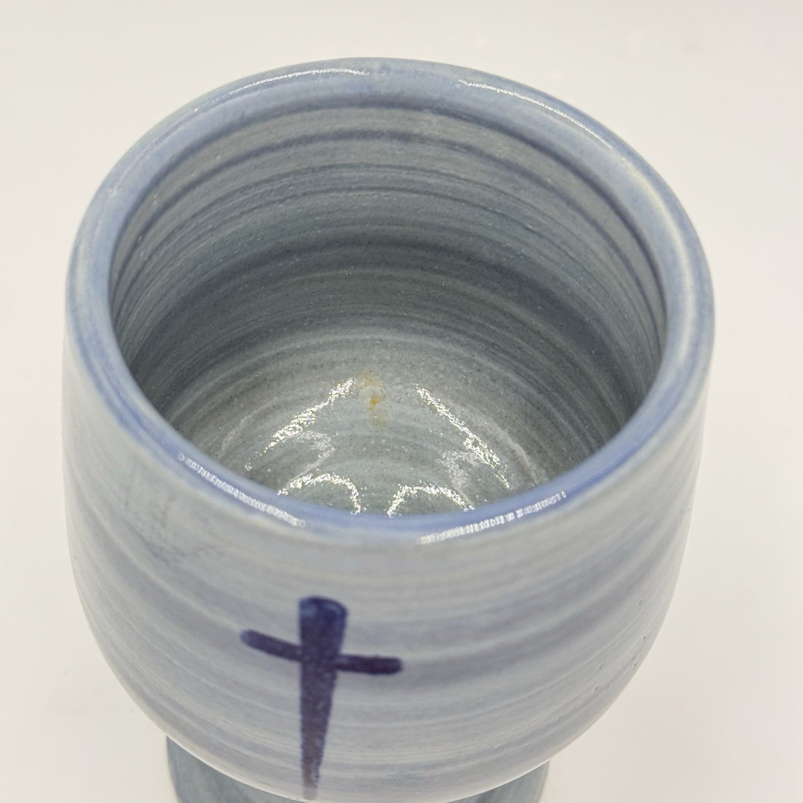 Louisville Stoneware Studio Pottery Chalice Blue Cross Blessings Cup 6” Vintage
