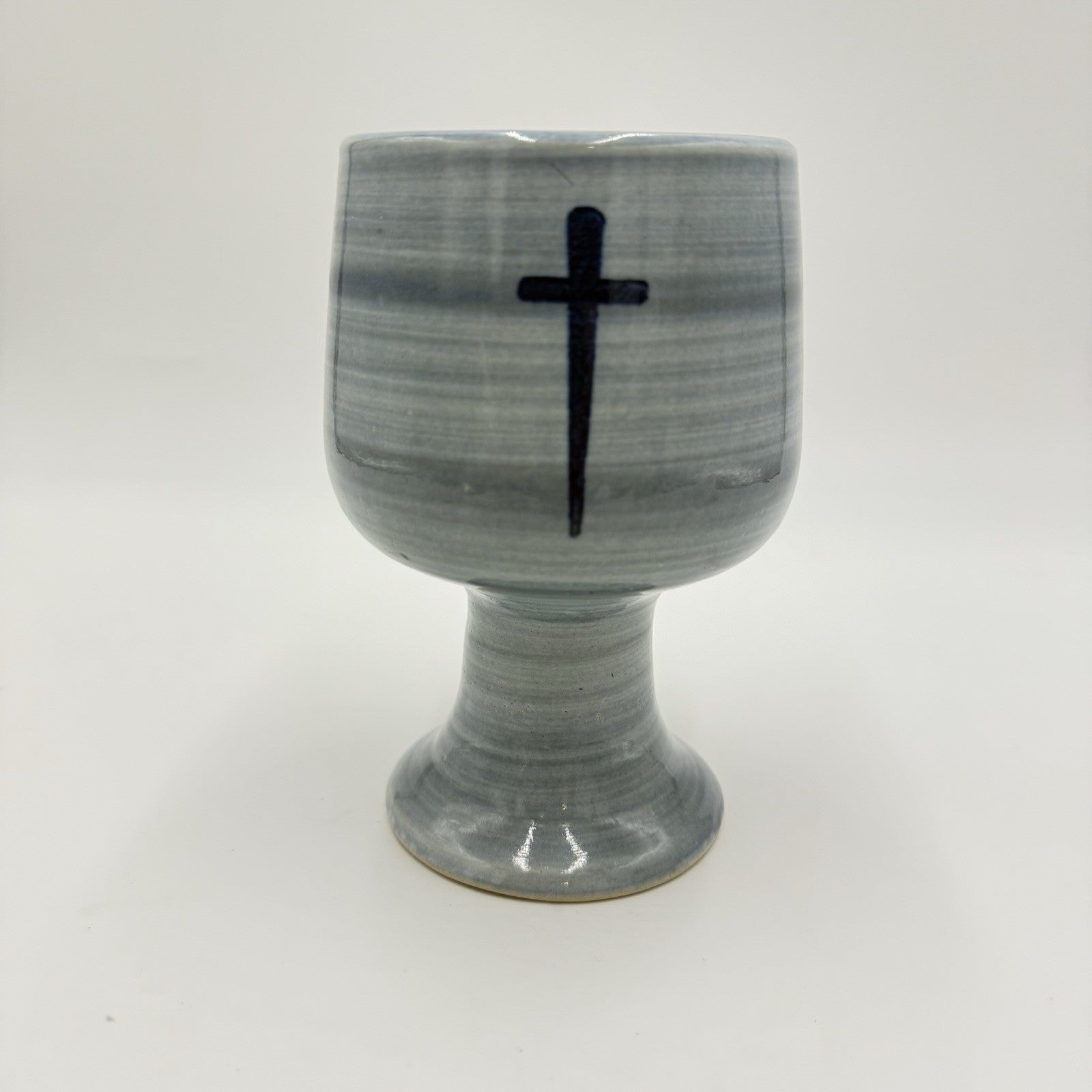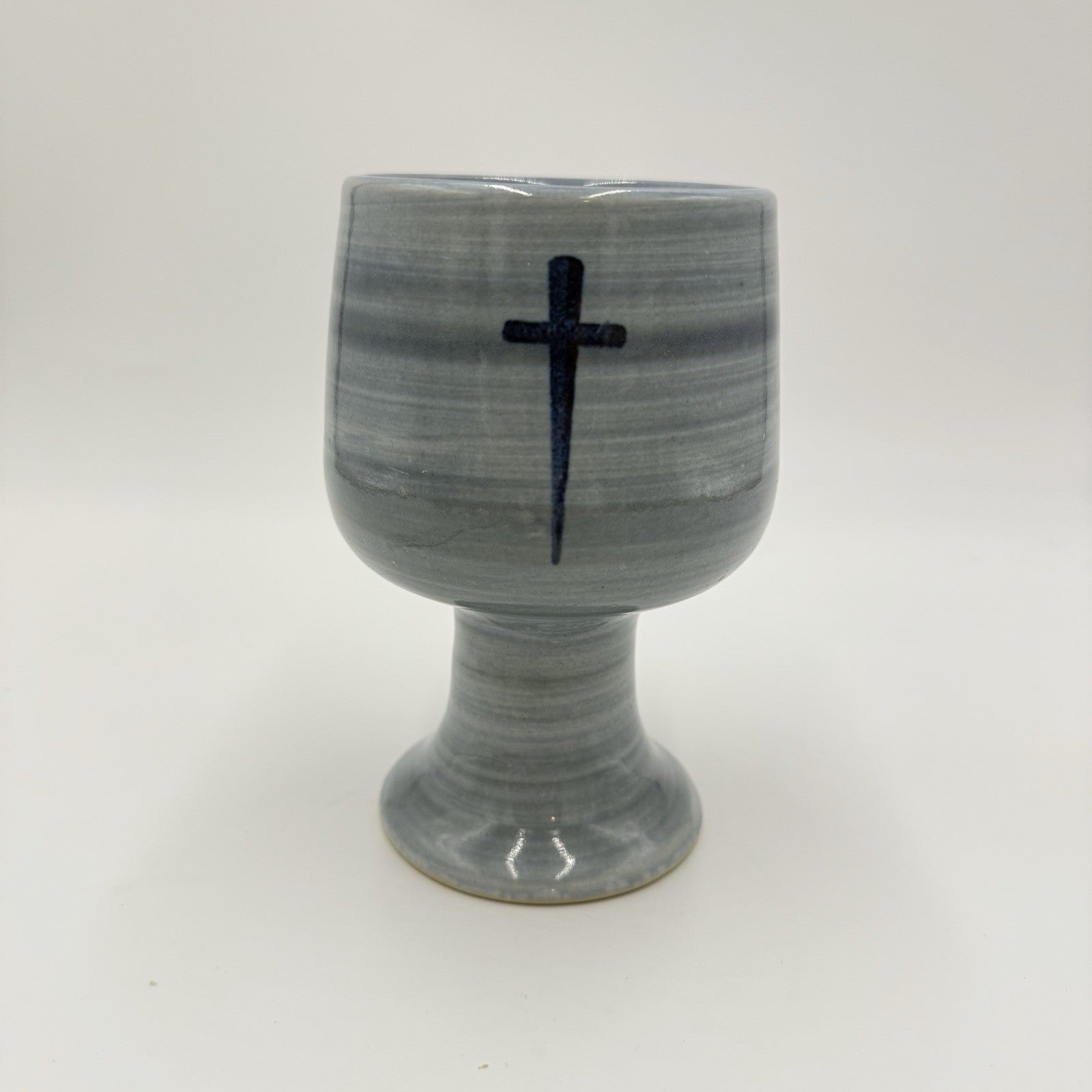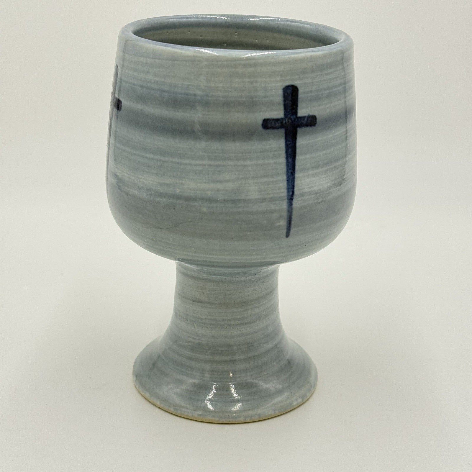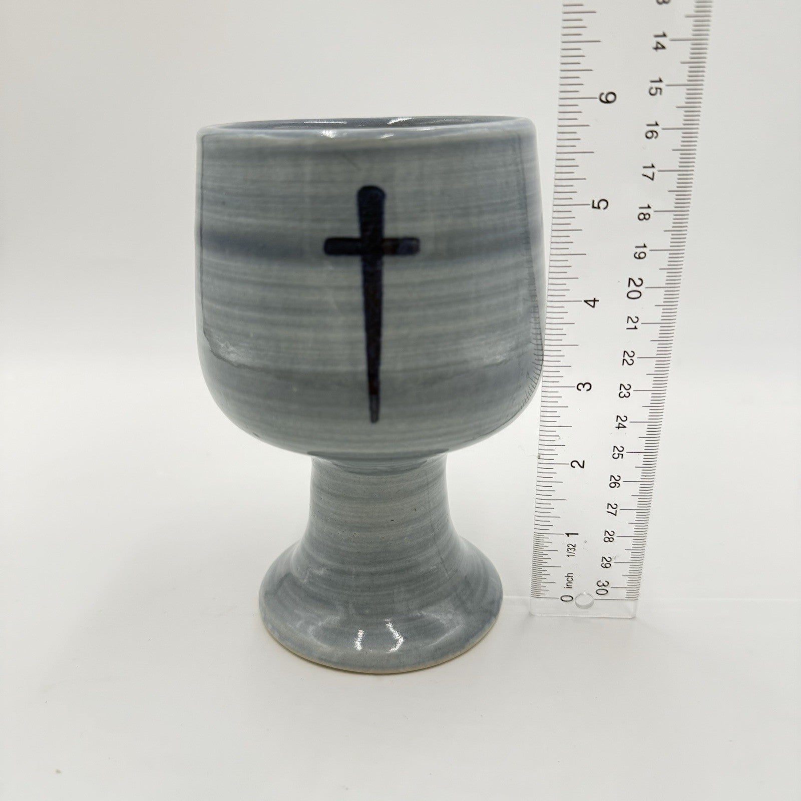 Louisville Stoneware Studio Pottery Chalice Blue Cross Blessings Cup 6” Vintage