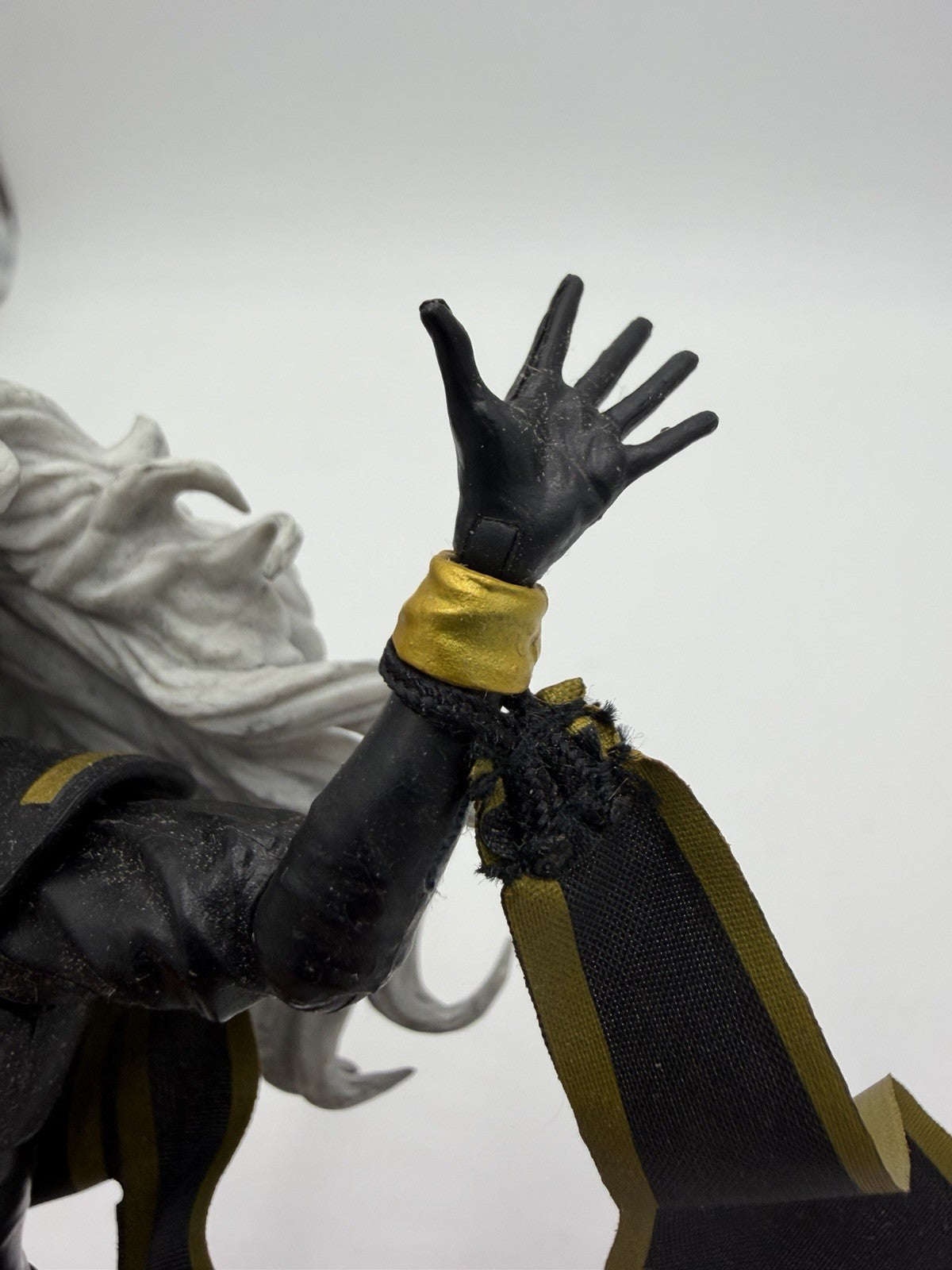 The Marvel Hasbro Storm X-Men Legends Black Costume Reticulated Action Figurine from 2014 is a collectible toy based on the character Storm from the X-Men franchise. This action figure is part of the Marvel Legends series by Hasbro, known for its detailed and accurate representations of comic book heroes. With a black color scheme and a design inspired by the character from the X-Men series, this figurine is a must-have for fans of the X-Men movies and comics.
