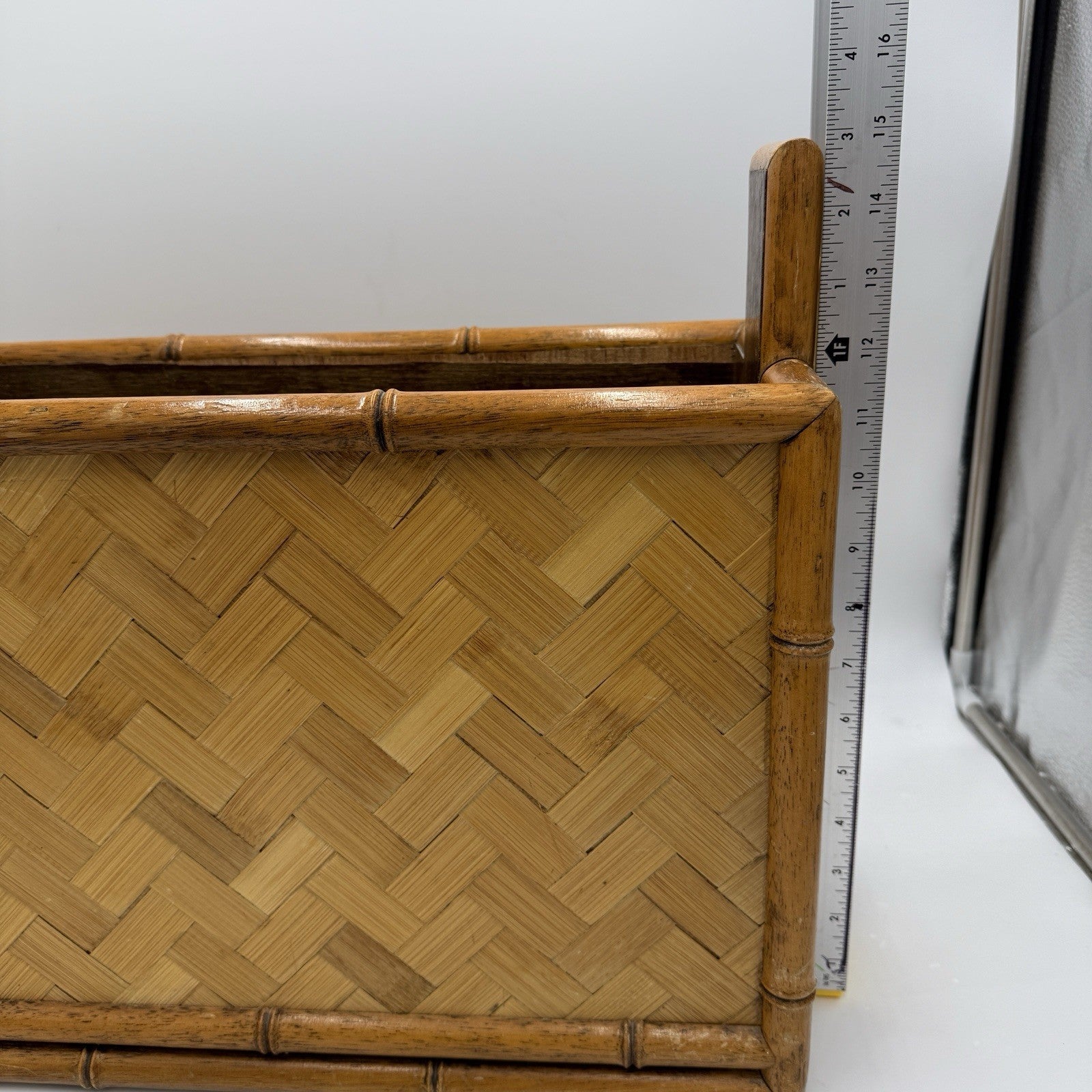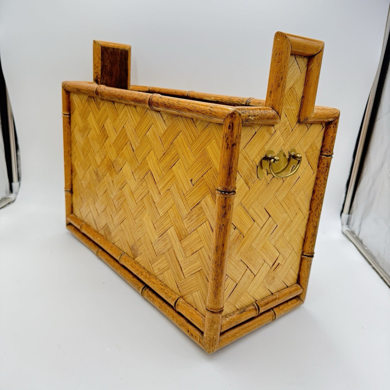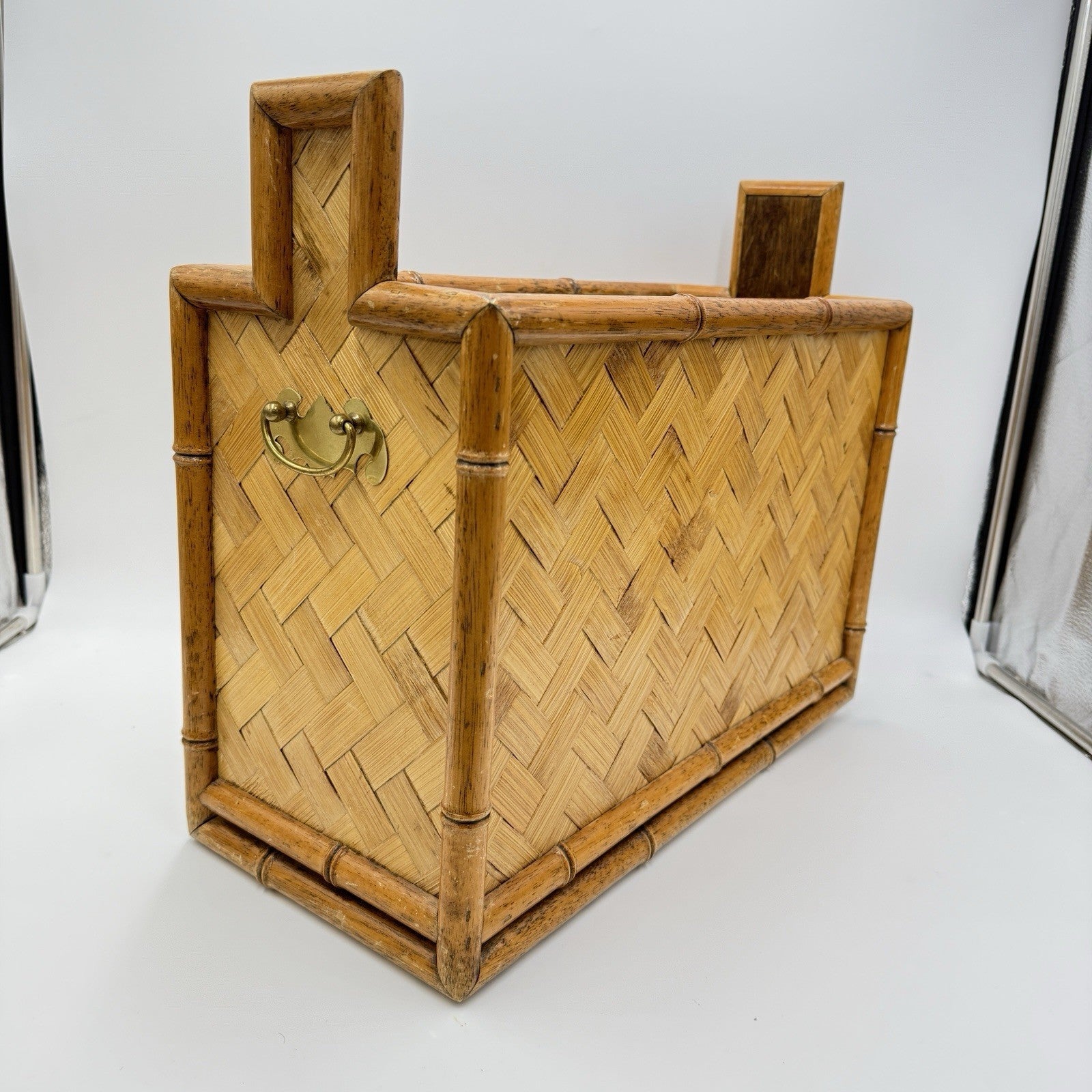 MCM Bamboo & Brass accents Wicker weave rattan magazine rack
