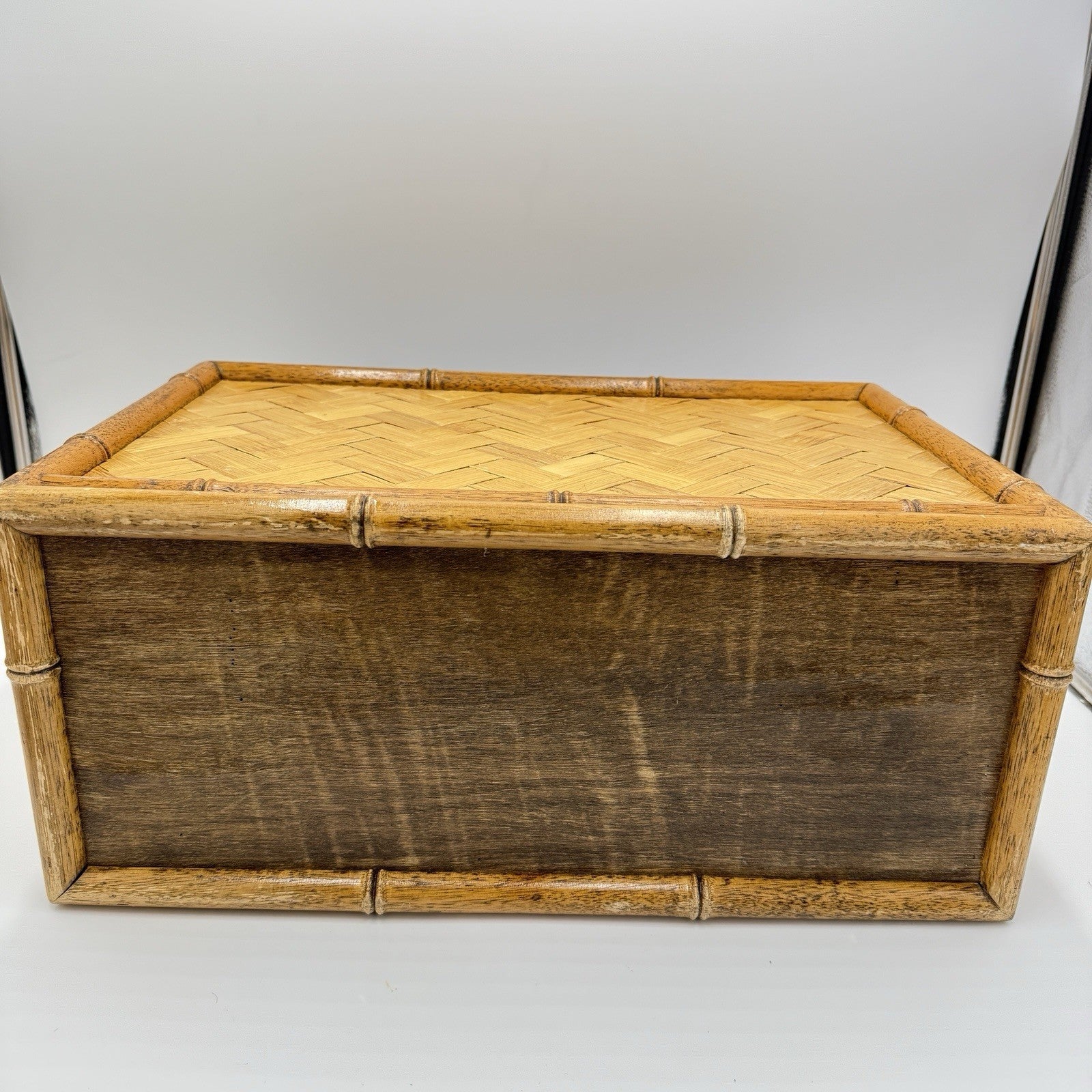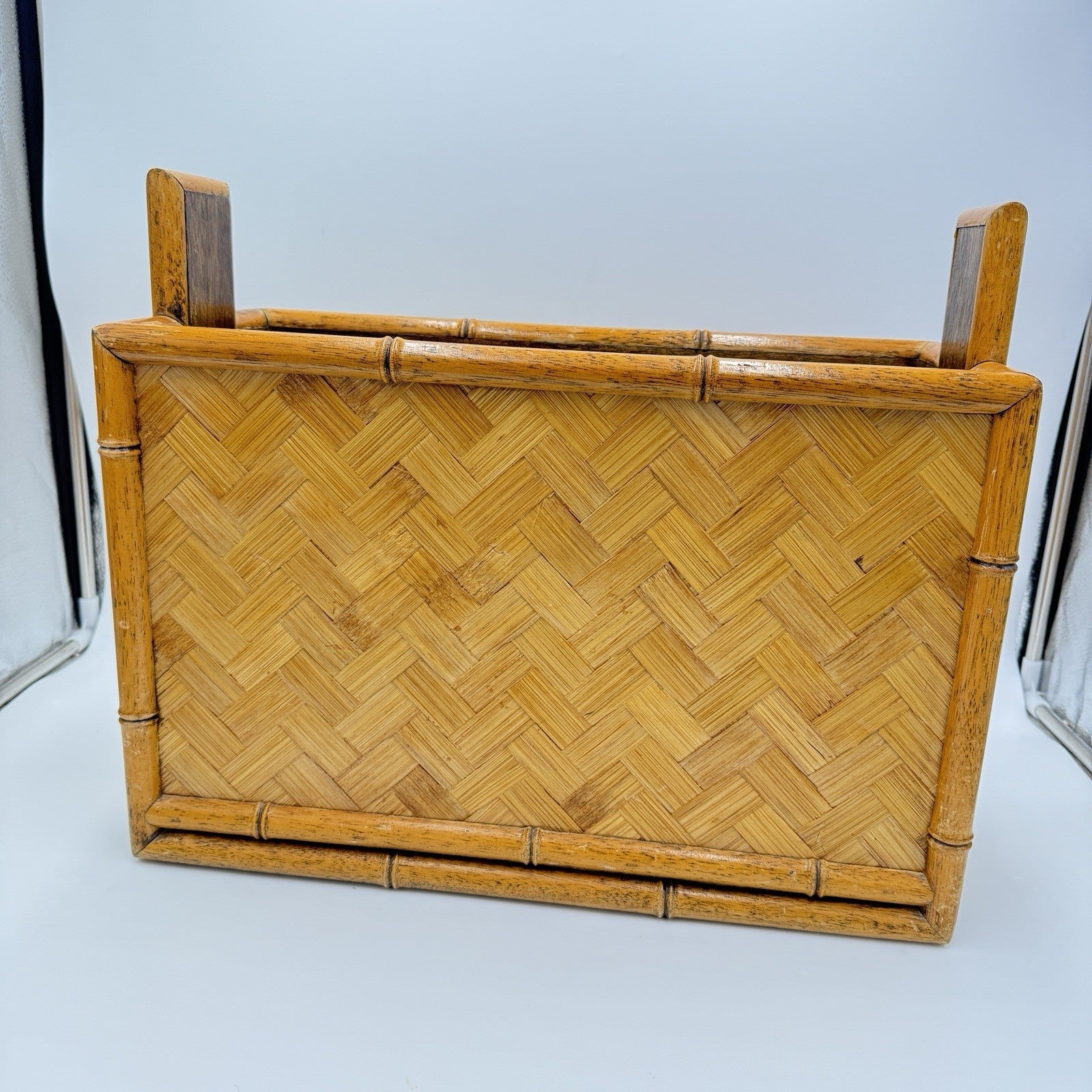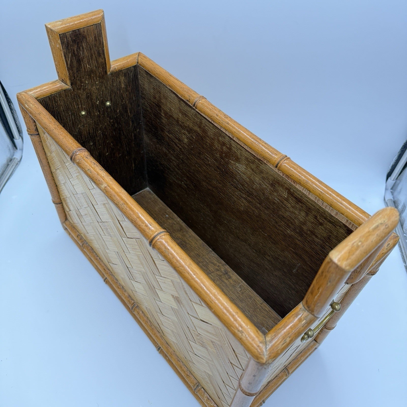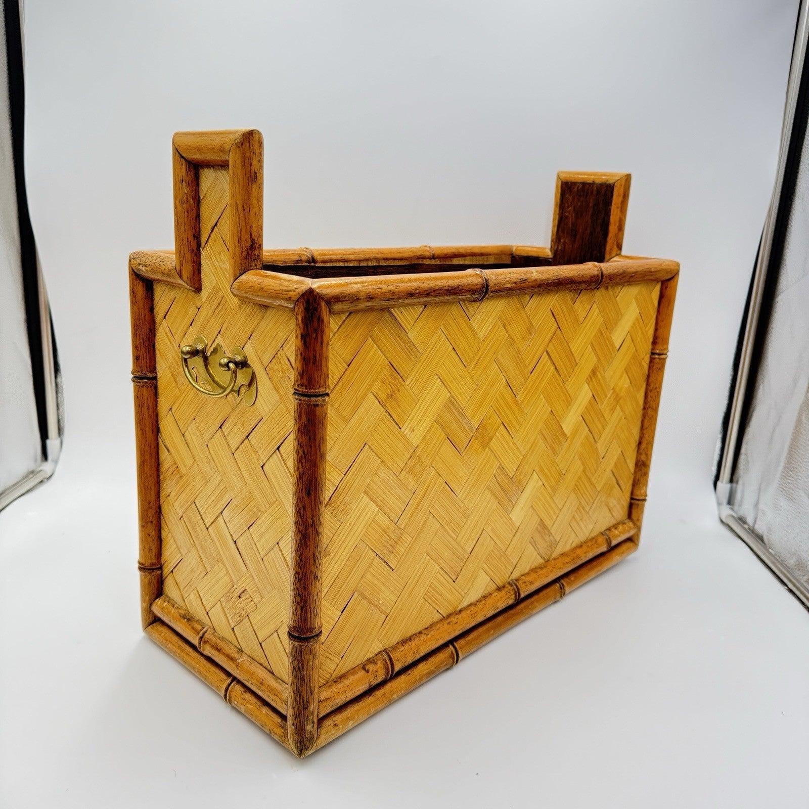 MCM Bamboo & Brass accents Wicker weave rattan magazine rack