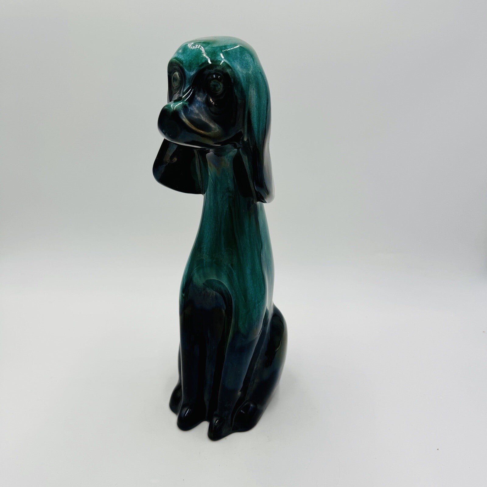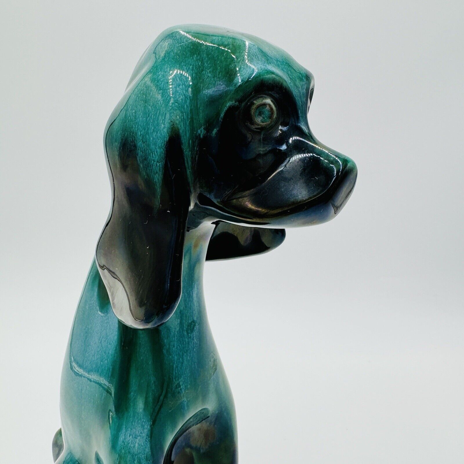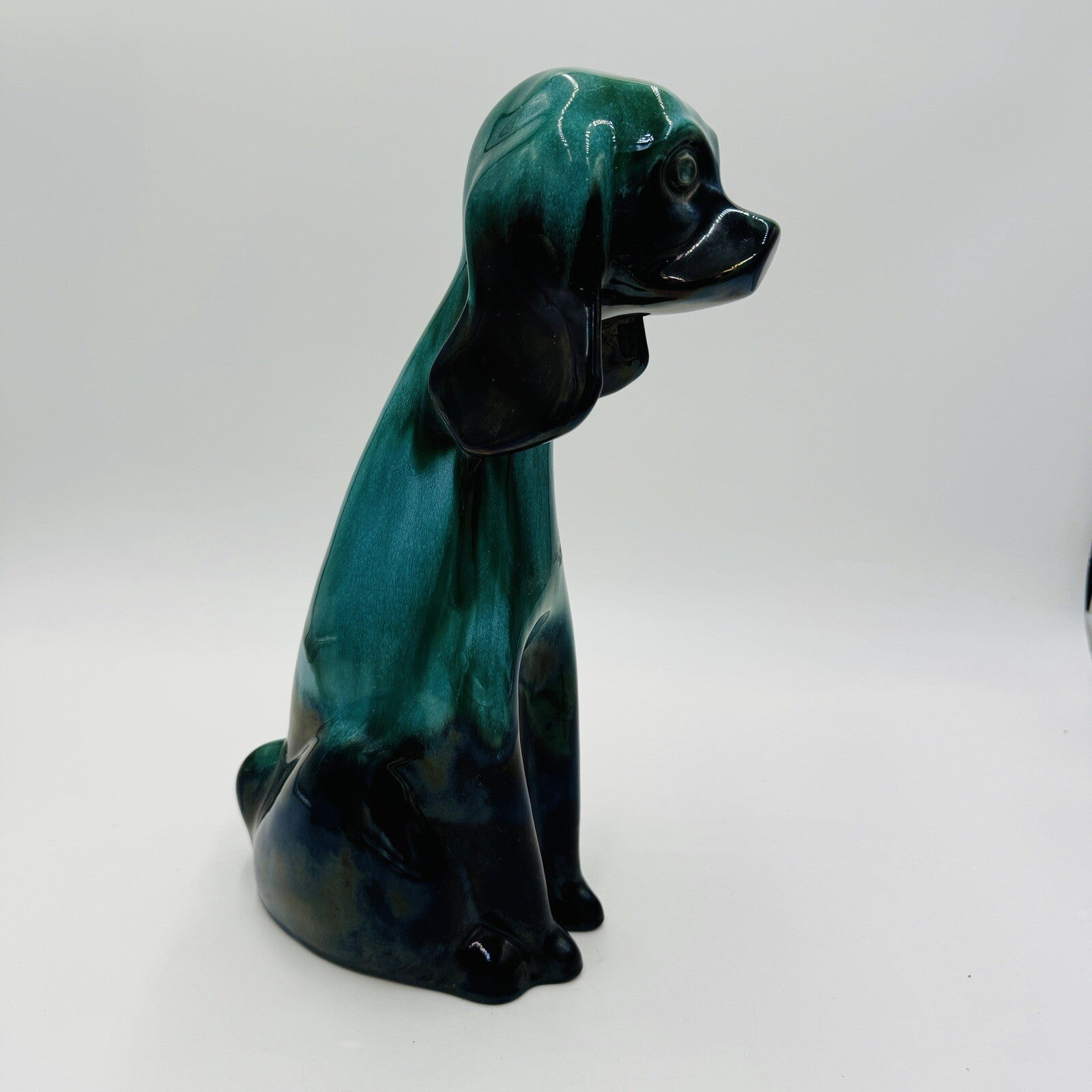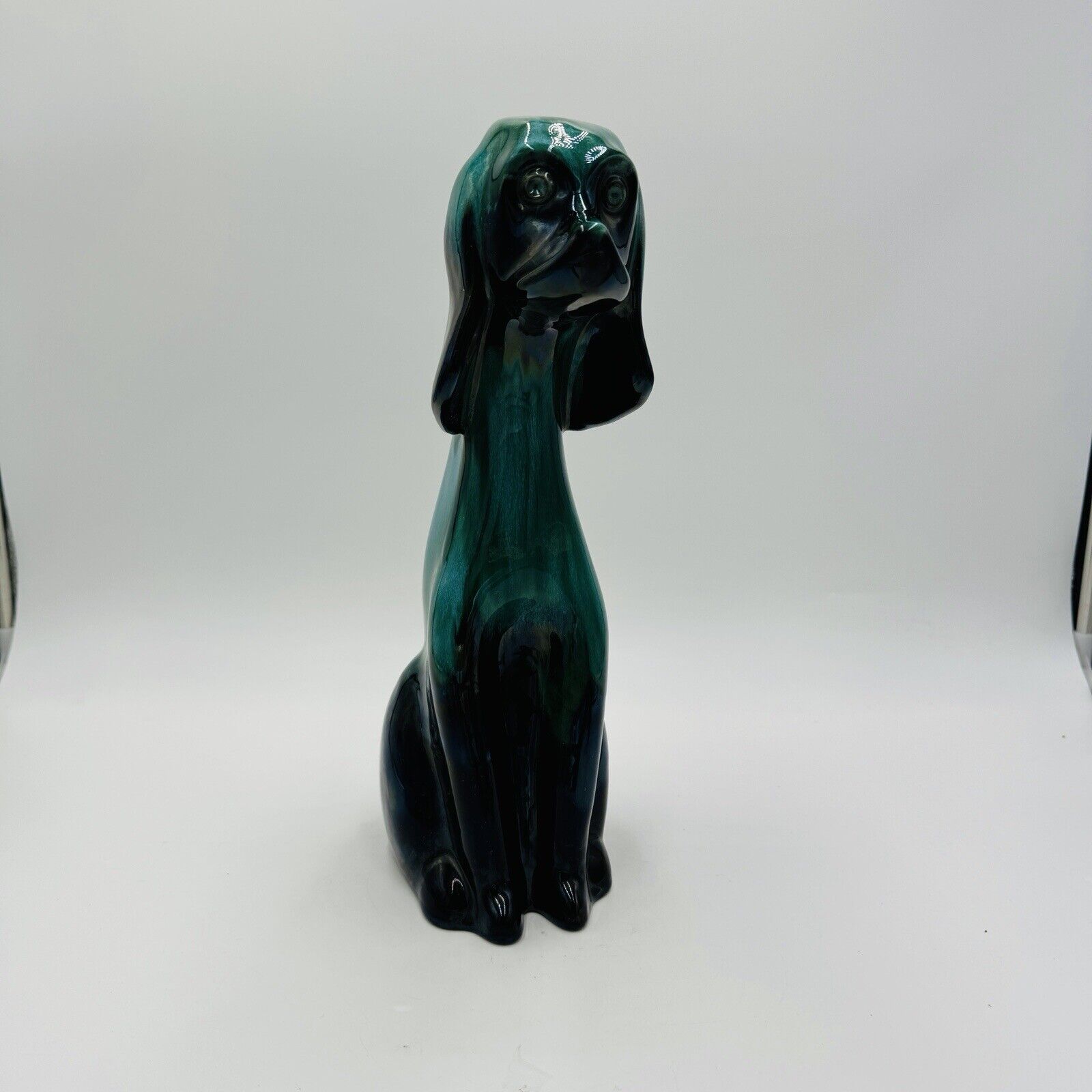 MCM Blue Mountain Canada Pottery 13 1/2in Tall Hound Dog Green Figurine
