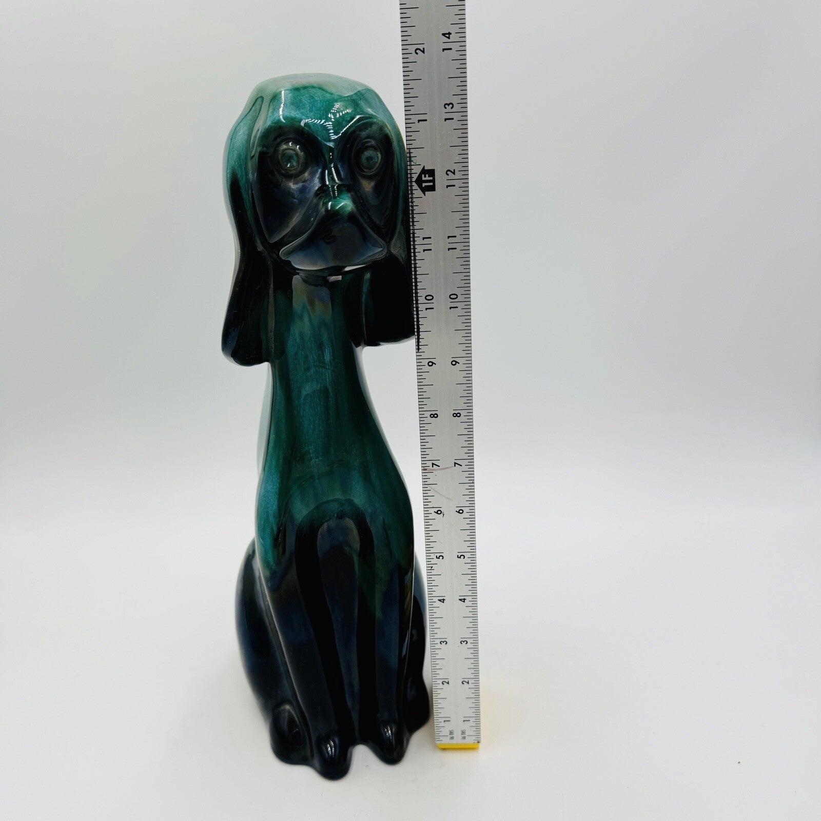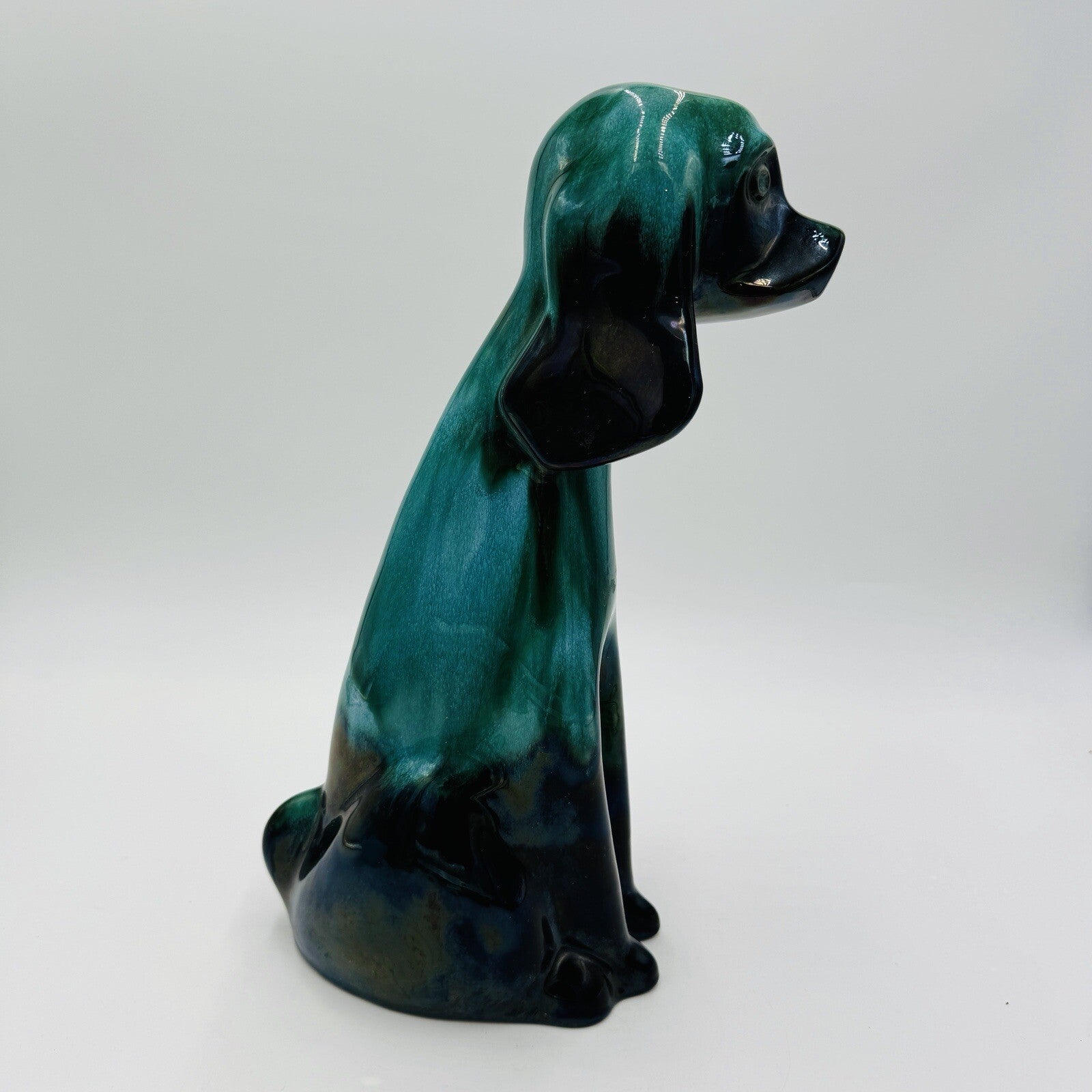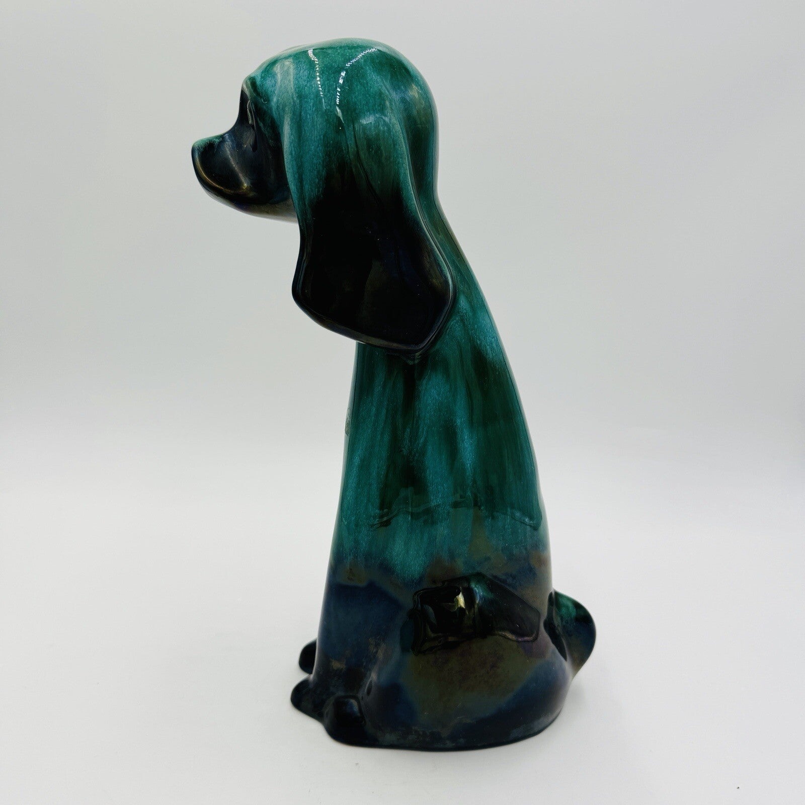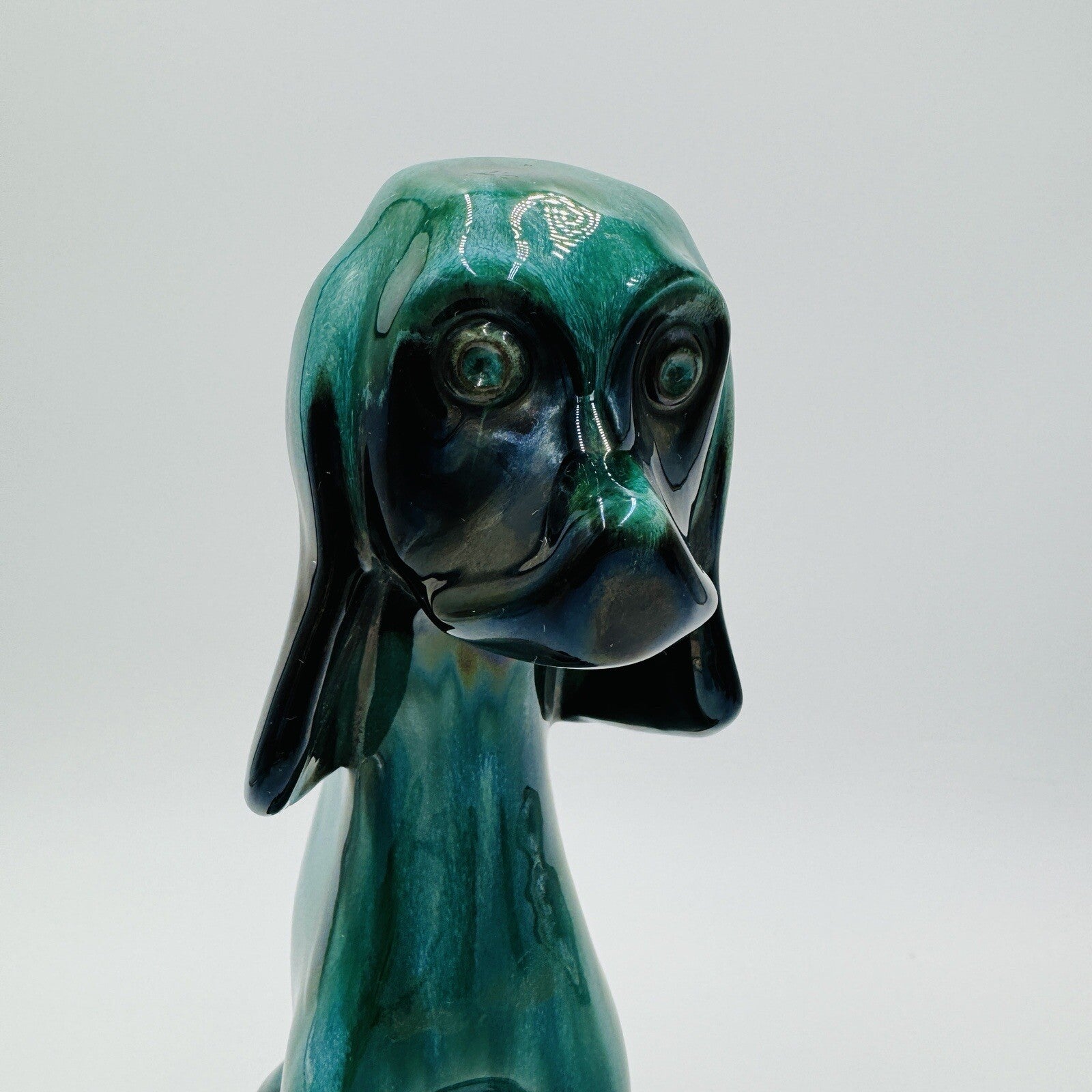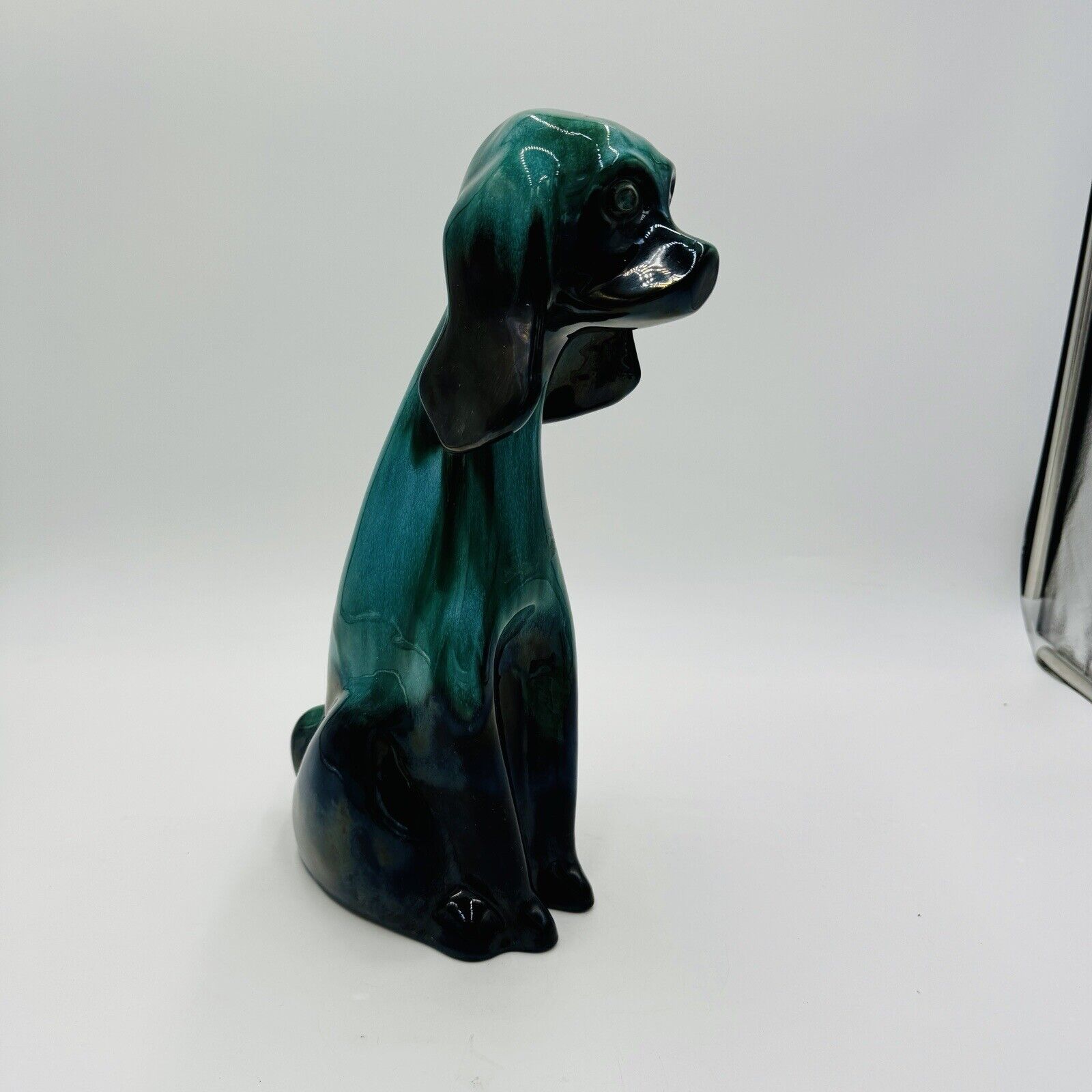 MCM Blue Mountain Canada Pottery 13 1/2in Tall Hound Dog Green Figurine