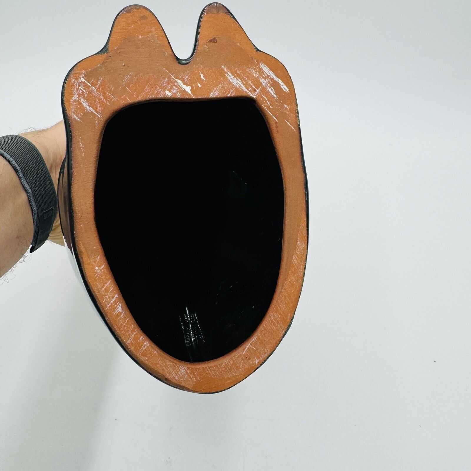 The vintage figurine is handmade and features a decorative design that is perfect for display. The product line is Blue Mountain Pottery, and the production technique is pottery. This original, licensed reproduction is a must-have for collectors of art pottery.