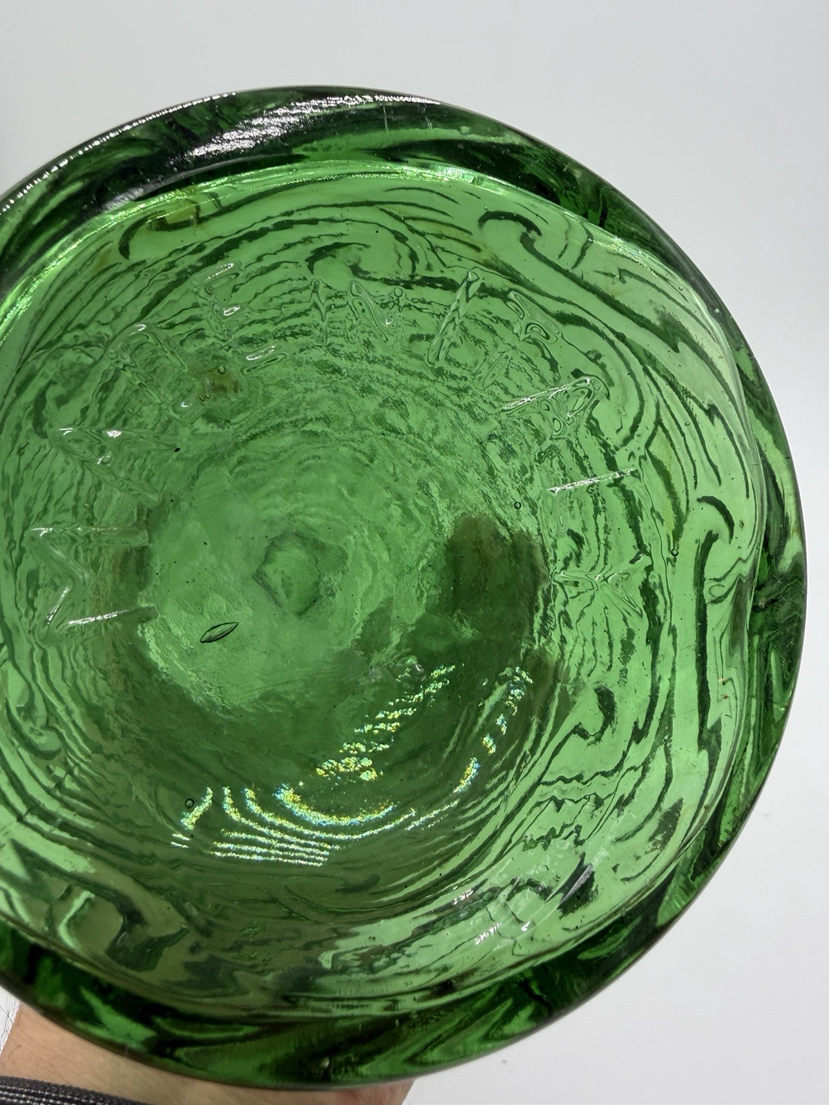 MCM Empoli Art Glass Green Wave Genie Bottle Decanter Hobnail Stopper Italy