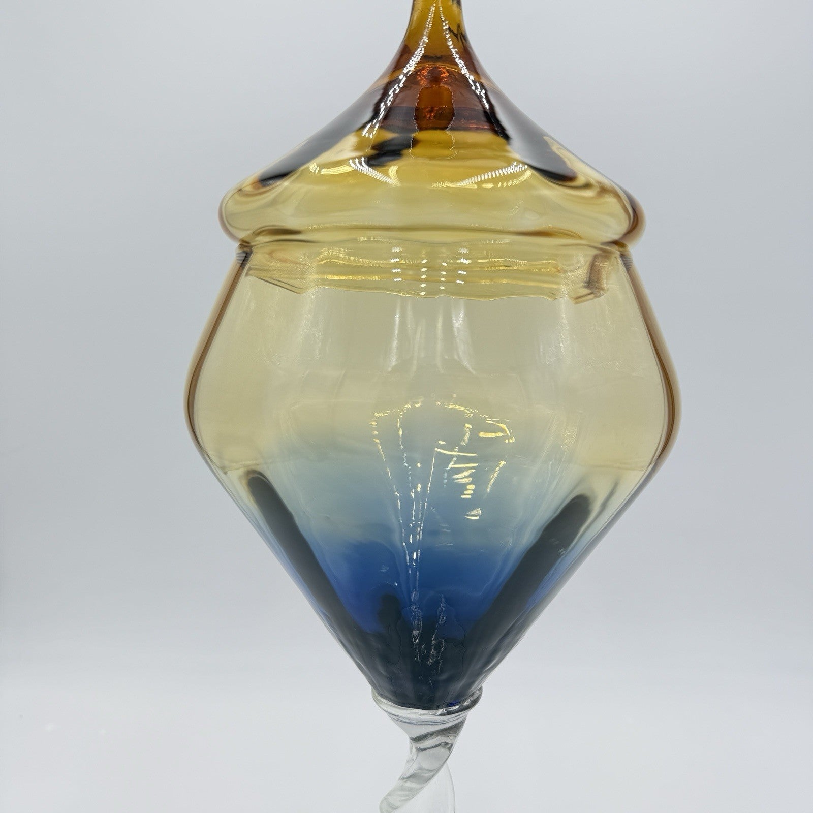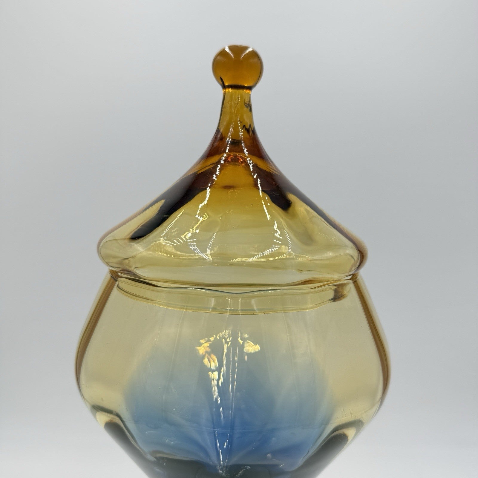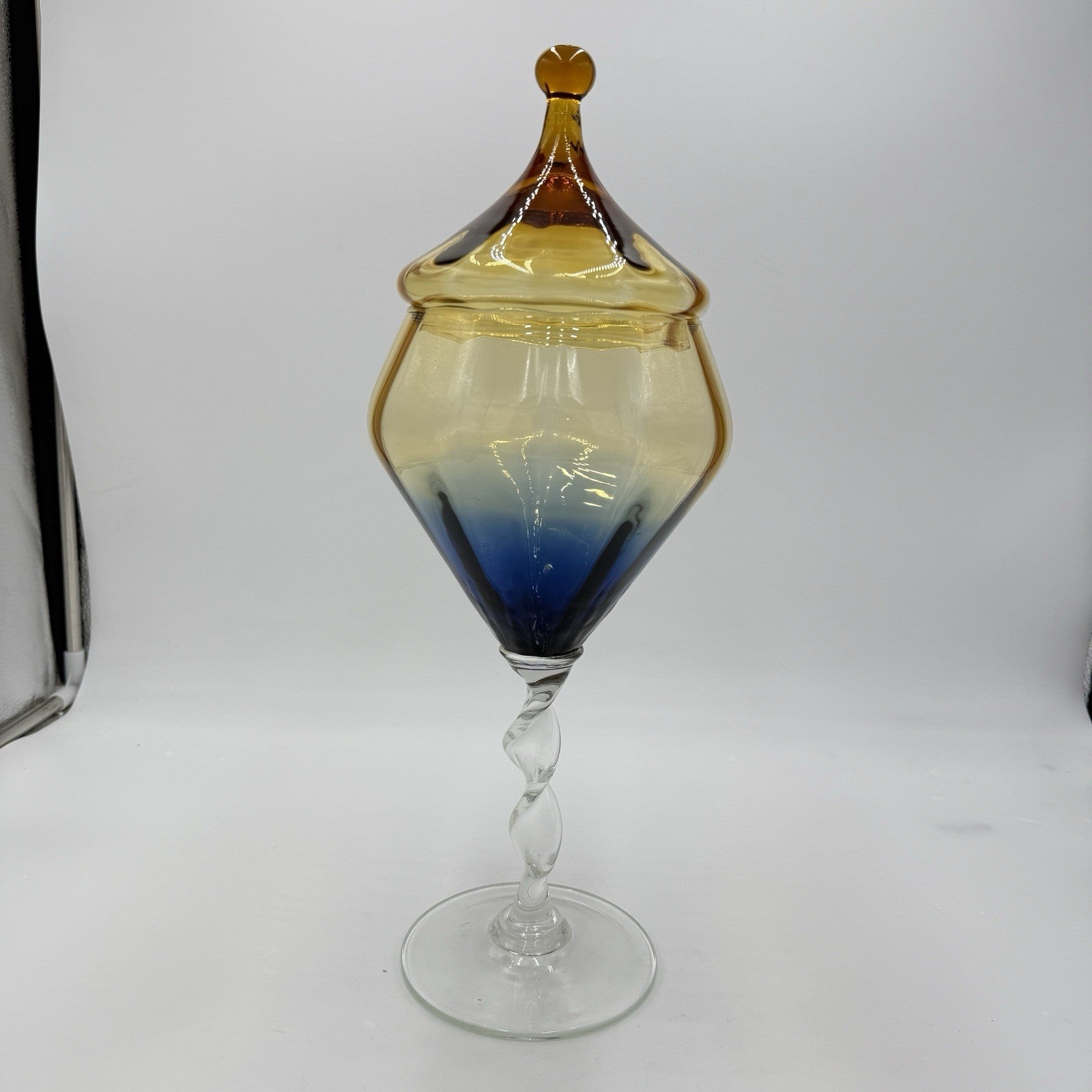 MCM Italian Empoli art Glass Apothecary Jar multicolor amber blue compote 16”