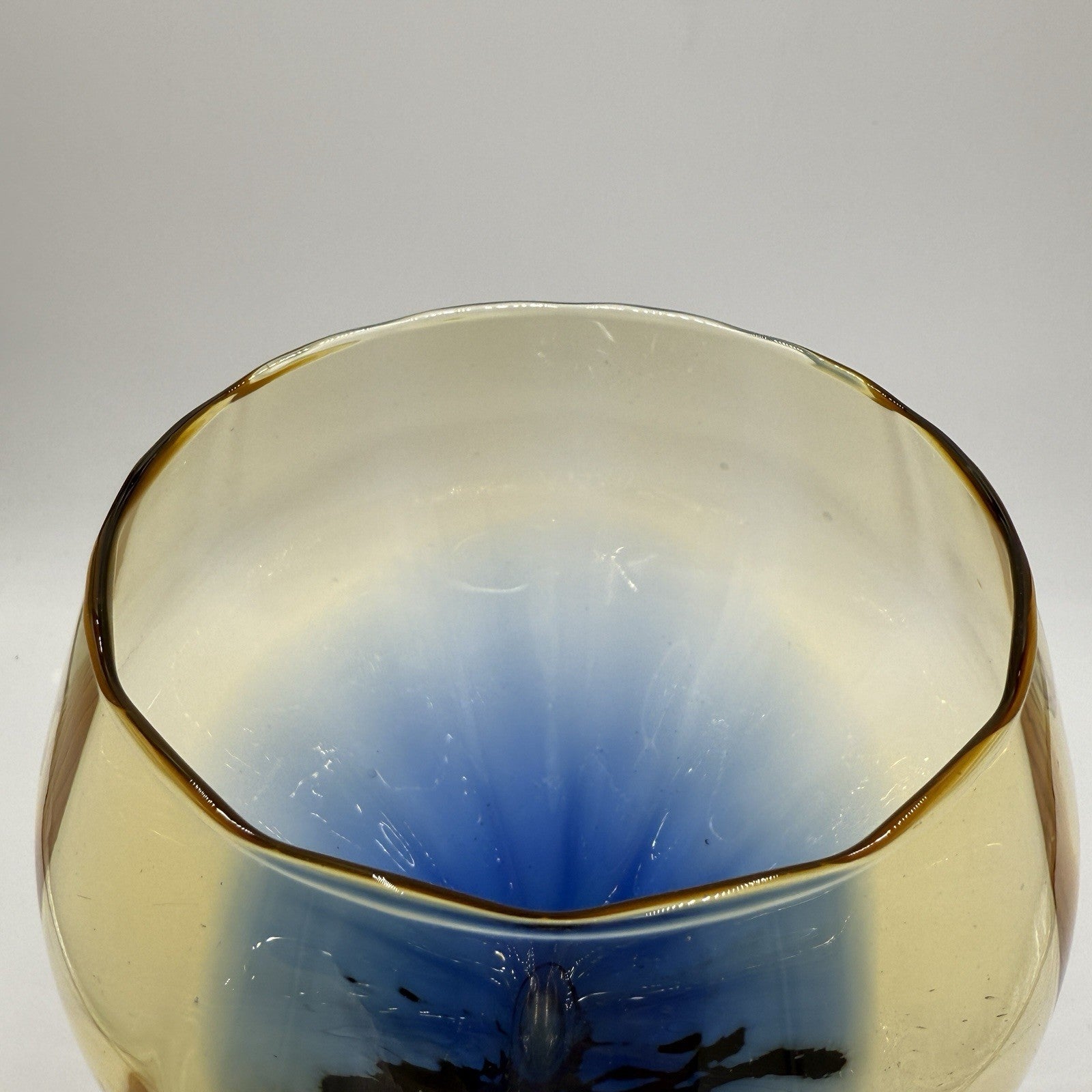 The jar is made of high-quality glass material and has a multicolor amber blue design, making it perfect for use as a decorative piece or for storing your favorite items. The Empoli brand is well-known for producing exquisite art glass items, and this jar is no exception. It is an original piece from Empoli, Italy and was manufactured in the year 1960. This vintage jar is sure to add elegance and sophistication to any room in your home.