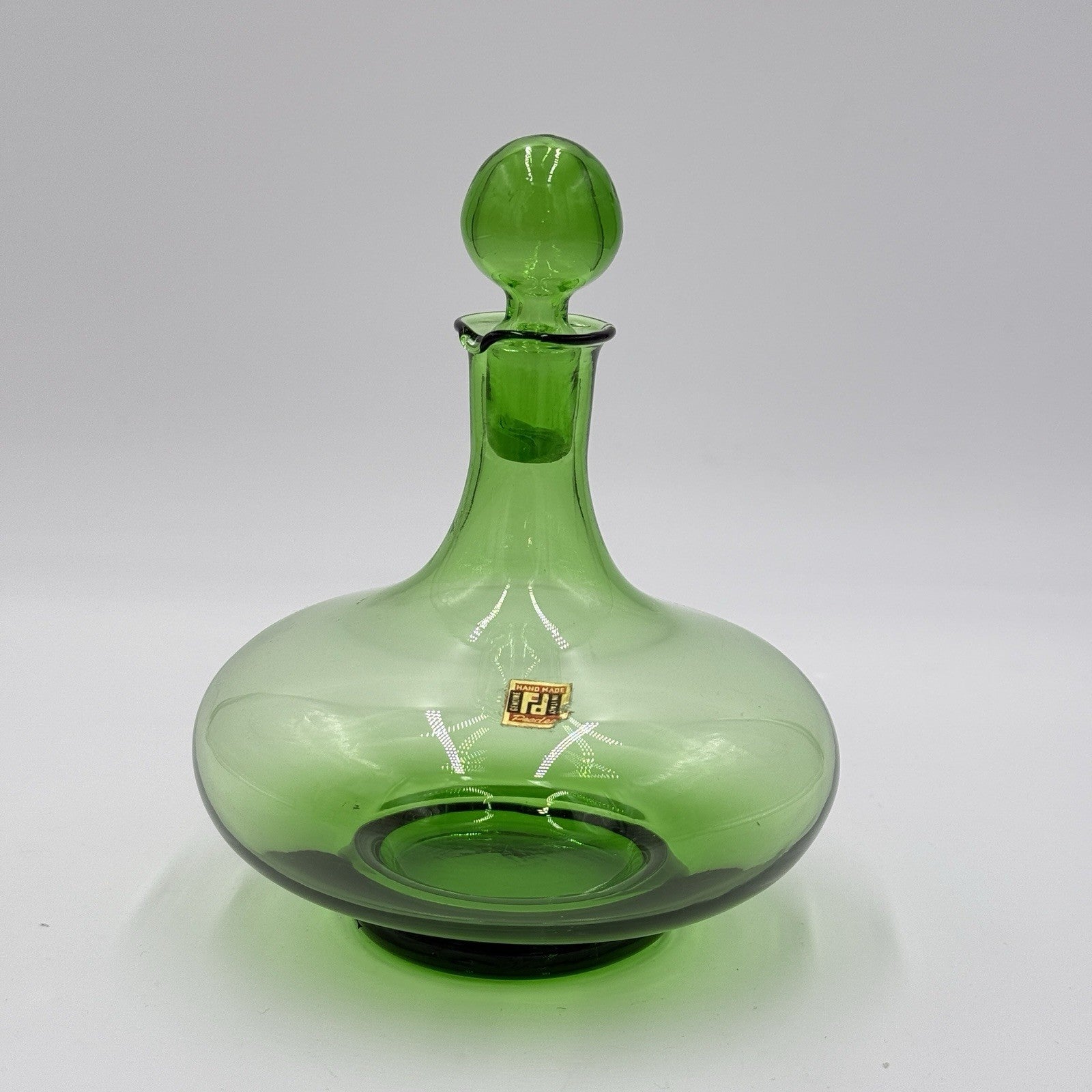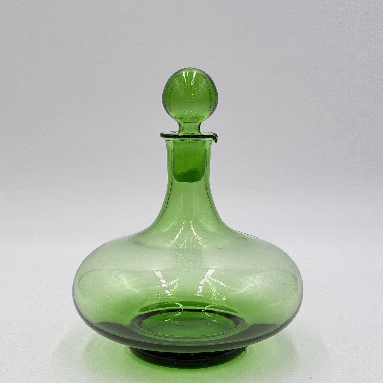 MCM Peedee Art Glass Green Decanter Italy 7” W/stopper Wayne Husted of Blenko