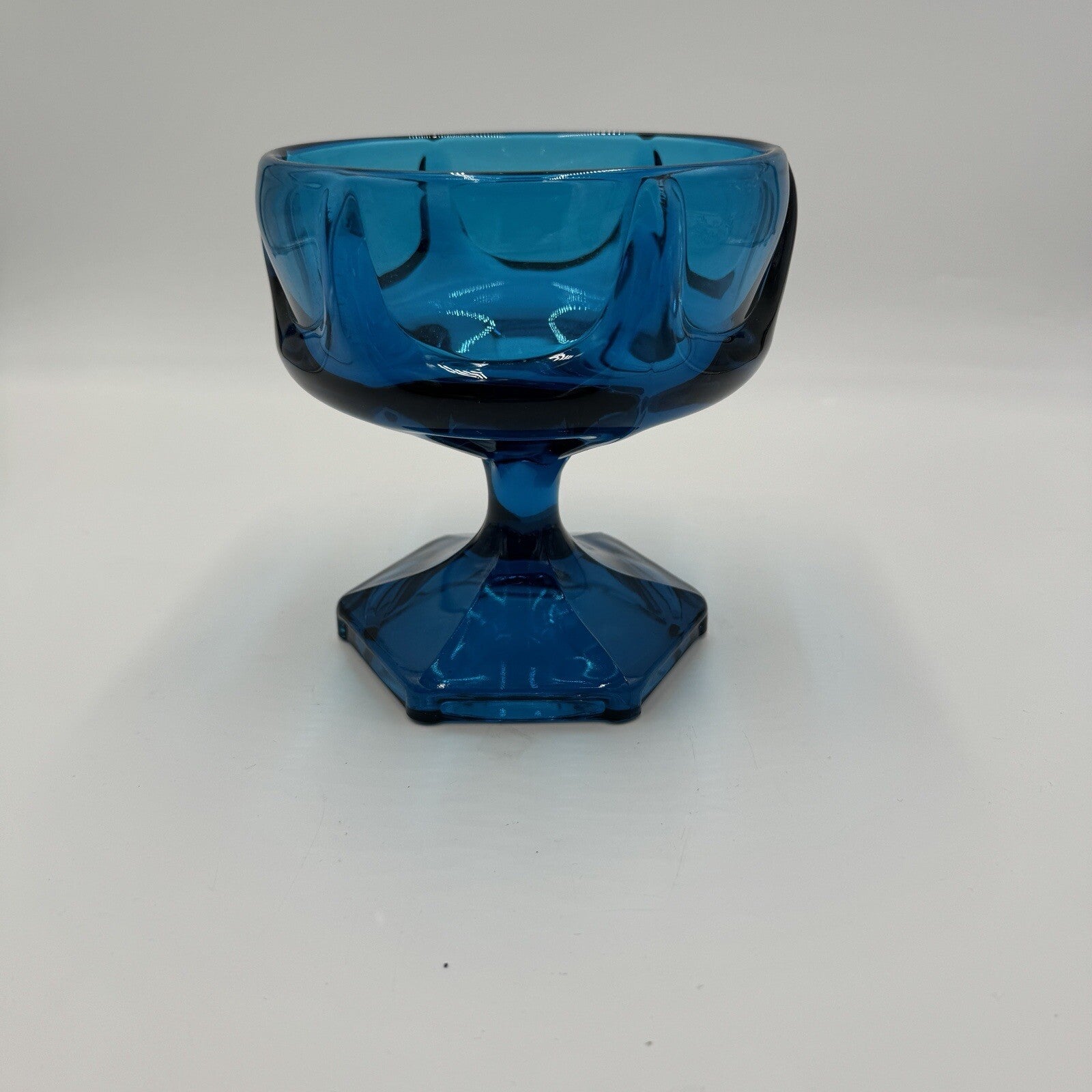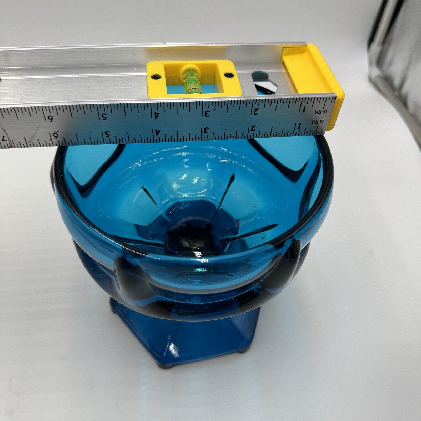 MCM Viking Candy Dish Blue Art Glass 1960s Bluenique Pedestal 6in Beautiful