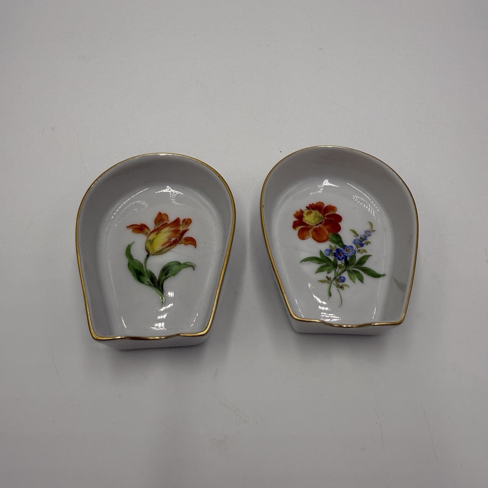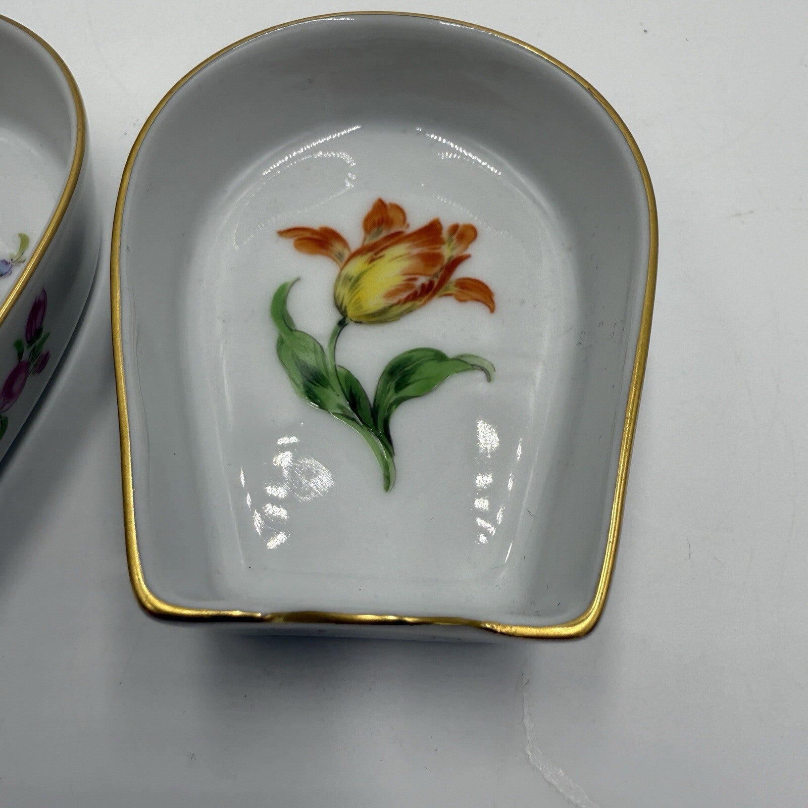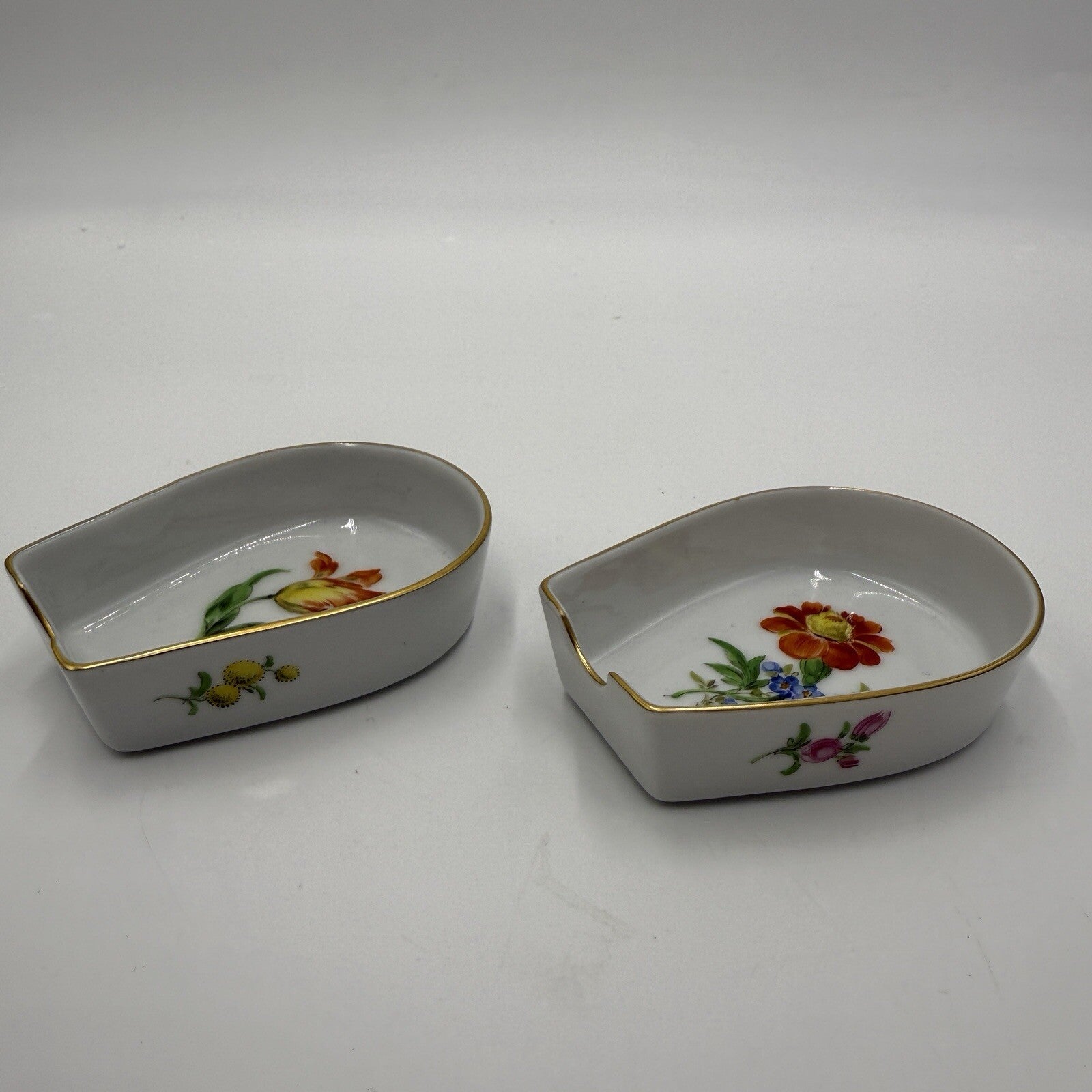 Meissen Ashtrays Pair Of Porcelain Floral Painted Germany Antique 19th Century