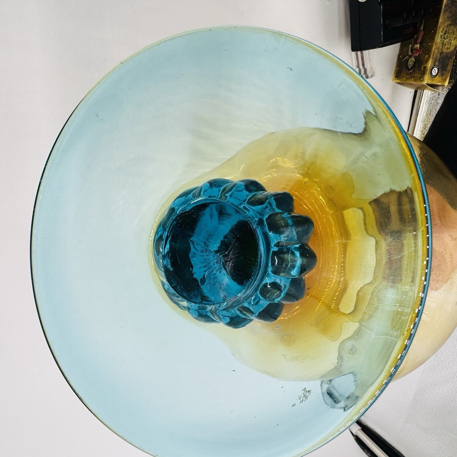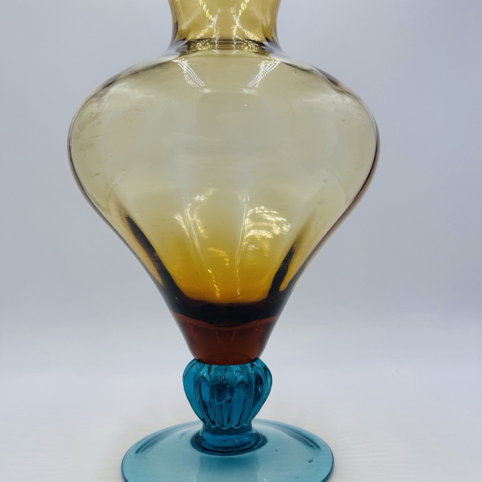 This vintage original vase is perfect for any Mid-Century Modern style décor and is sure to be a conversation starter. The vase was produced in Italy and has a production style of art glass. It is a great addition to any collection and is perfect for display in any space.
