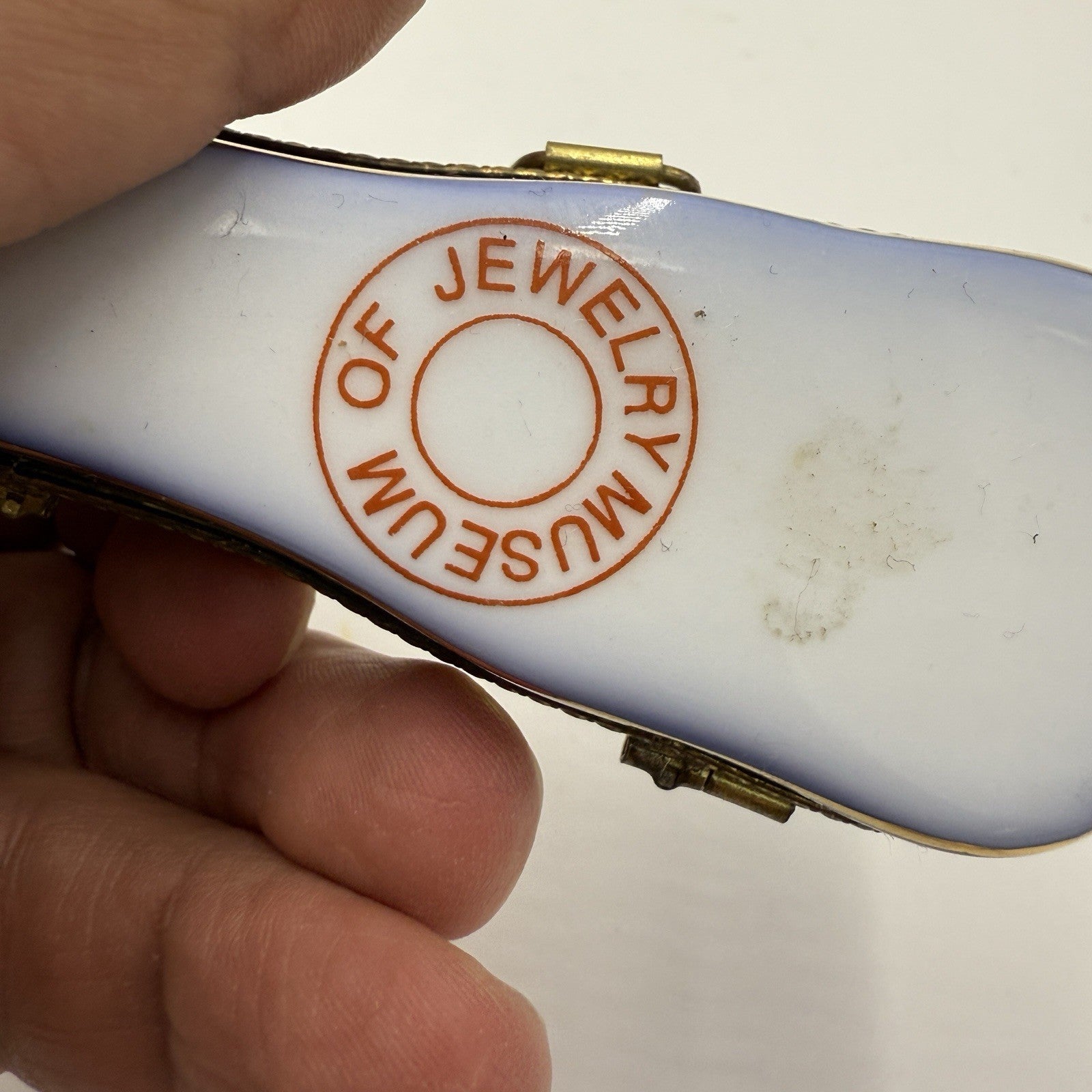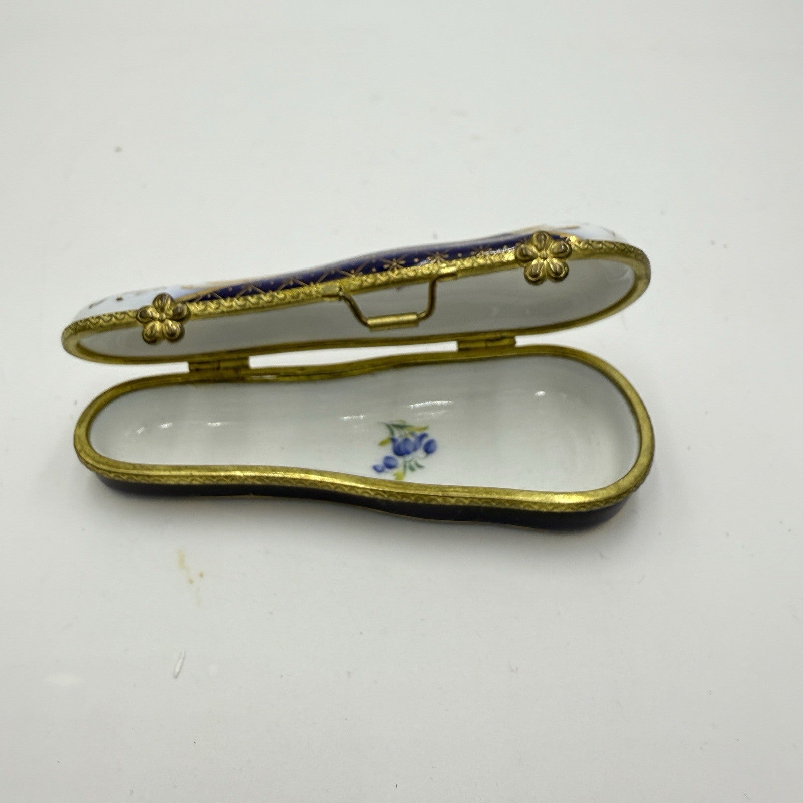 Museum Of Jewelry Porcelain Cobalt Floral Miniature Violin Case Trinket Box