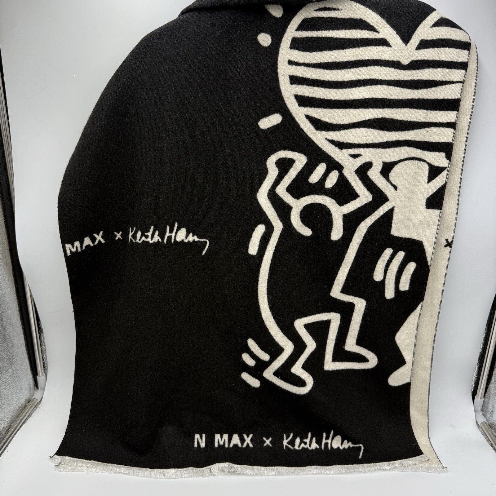 N Max x Keith Haring scarf Black Beige Cashmere Wrap Unisex Iconic
