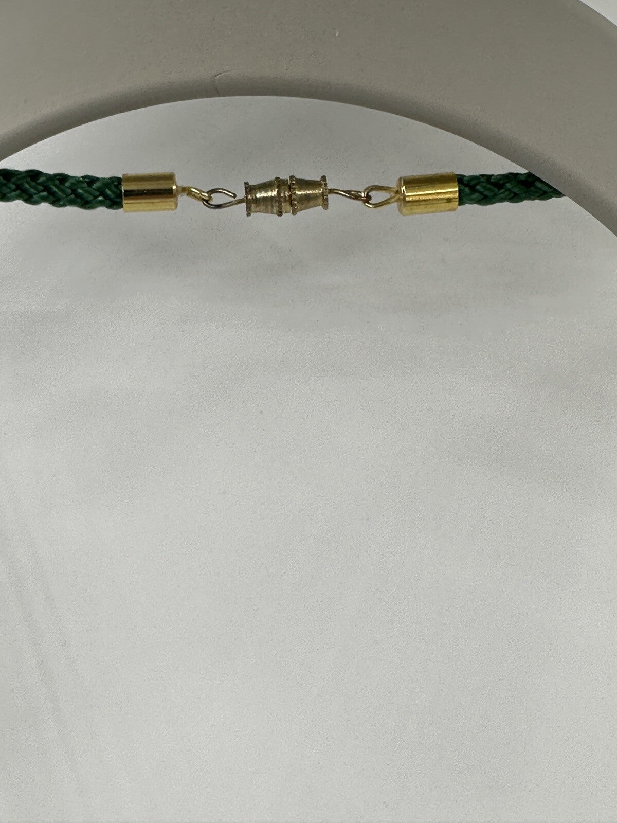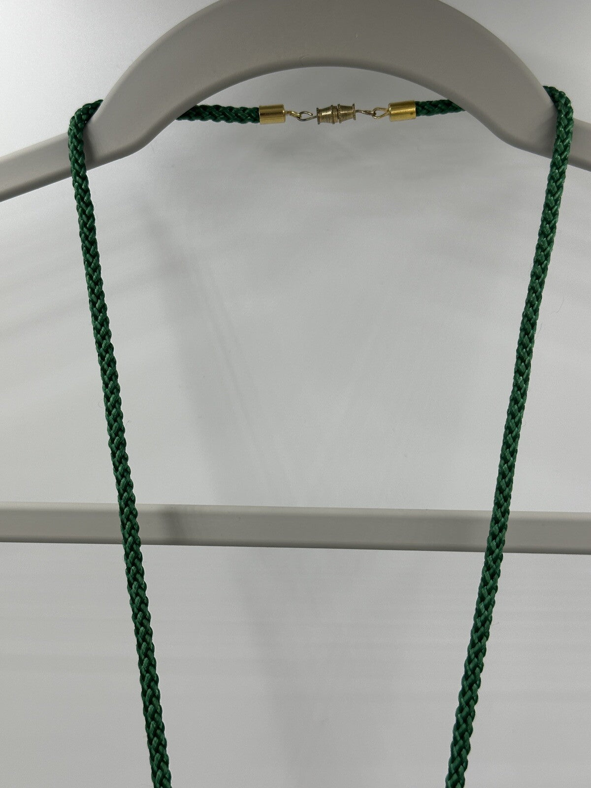 Vintage Green Tasseled Enamel Pendant Asian Dragon Design Necklace Gold Tone.