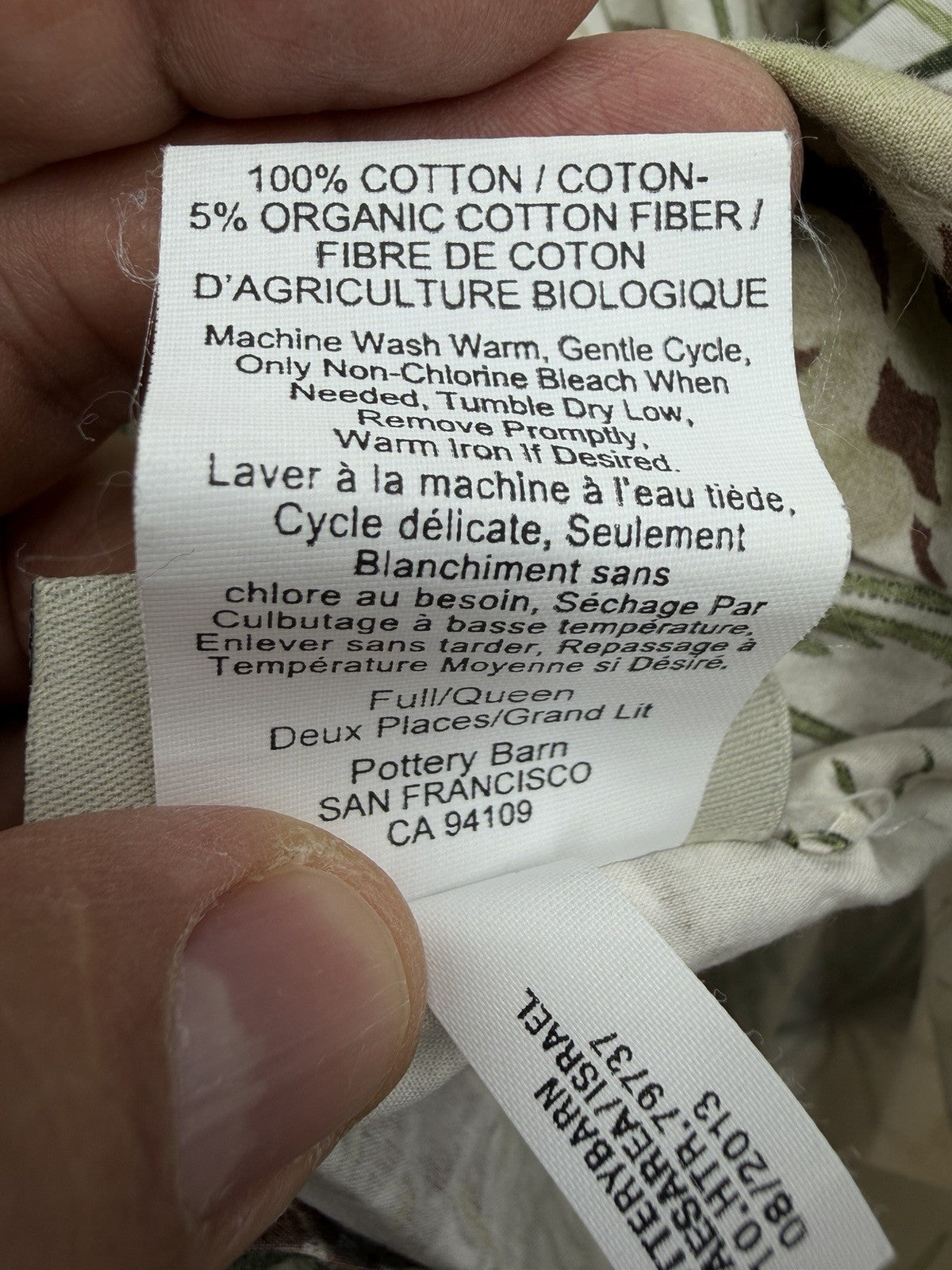 Pottery Barn Winter Pinecone Bird Pattern 100% Cotton Full / Queen Duvet Cover