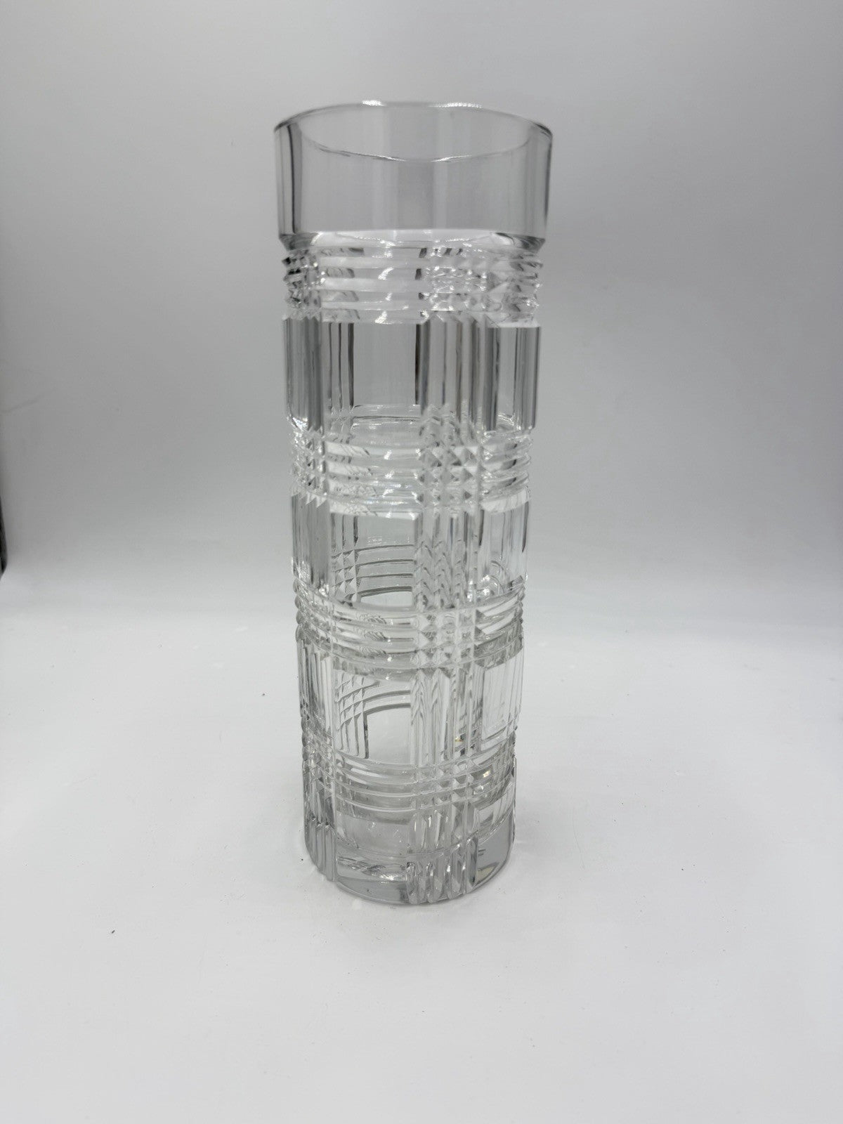 Ralph Lauren Crystal Flower Vase Large Straight Vase Glen Plaid Vintage 12 Inch