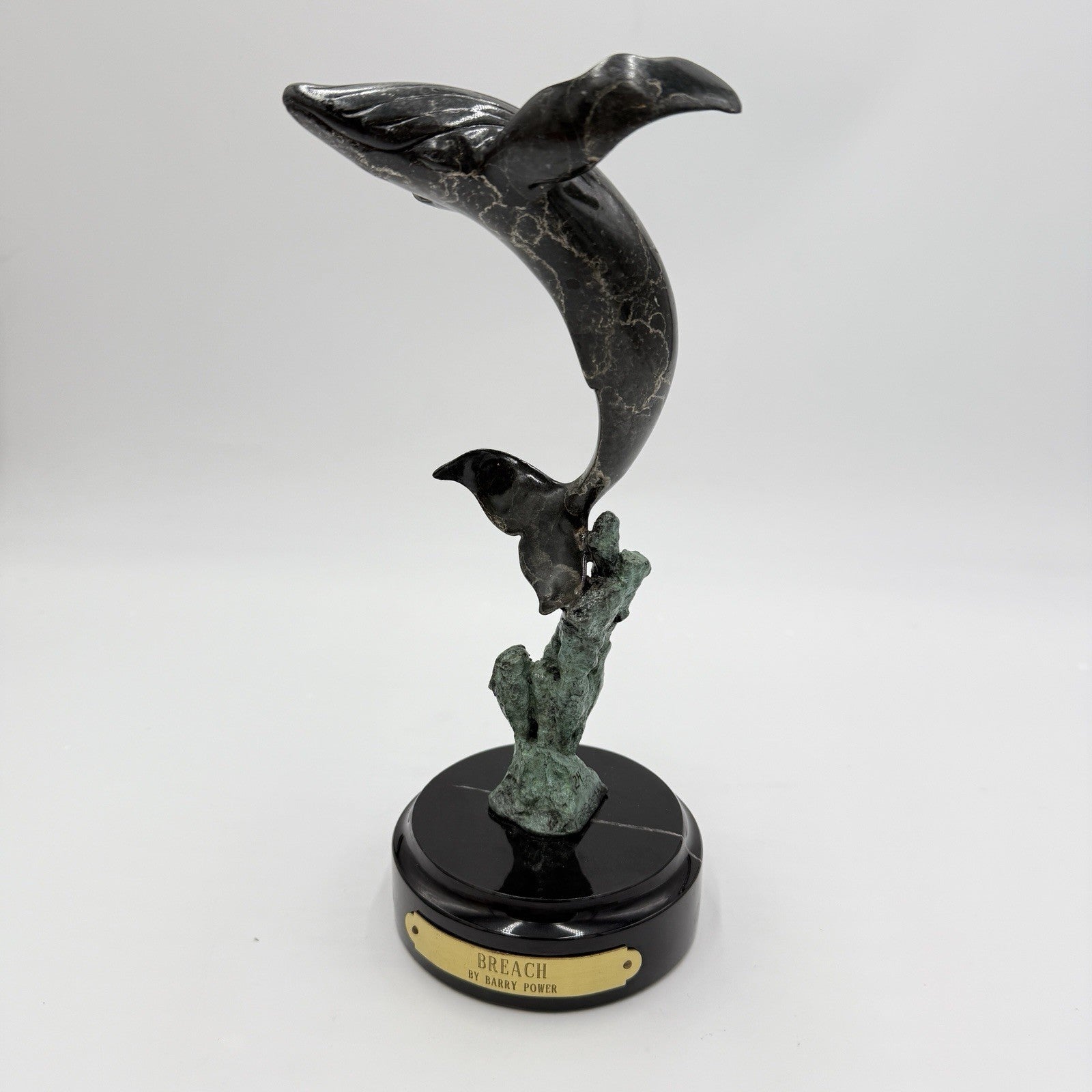 Rare Barry Power Bronze Marble Base Art Sculpture Hunchback Whale Breach” 24/400