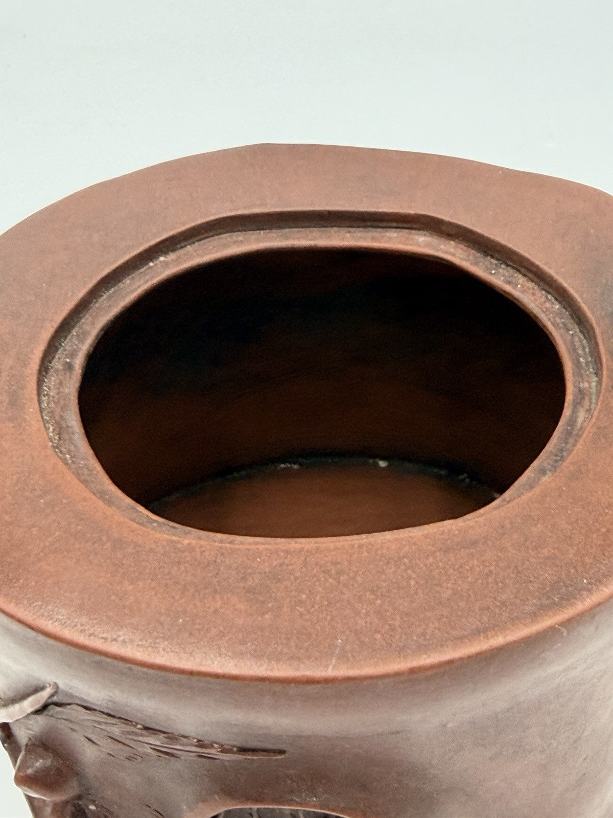 This vintage Chinese Yixing Zisha art pottery teapot with a branch handle is a rare find for collectors of Asian antiques. Made of porcelain and pottery with a brown color, this antique original piece hails from China, making it a unique addition to any teapot collection. Its distinctive design and craftsmanship showcase the traditional artistry of Chinese tea culture.
