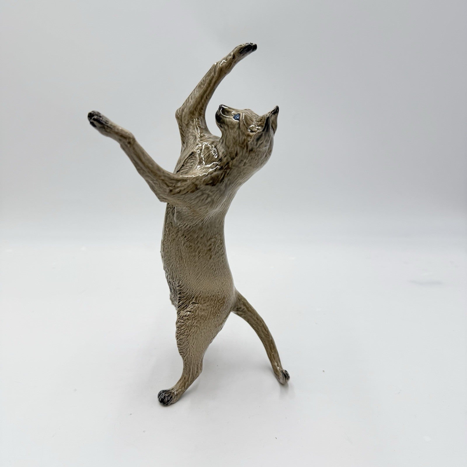 Rare HEREDITIES England Porcelain CHARM OF Creamware Stretching Cat Figurine 9”