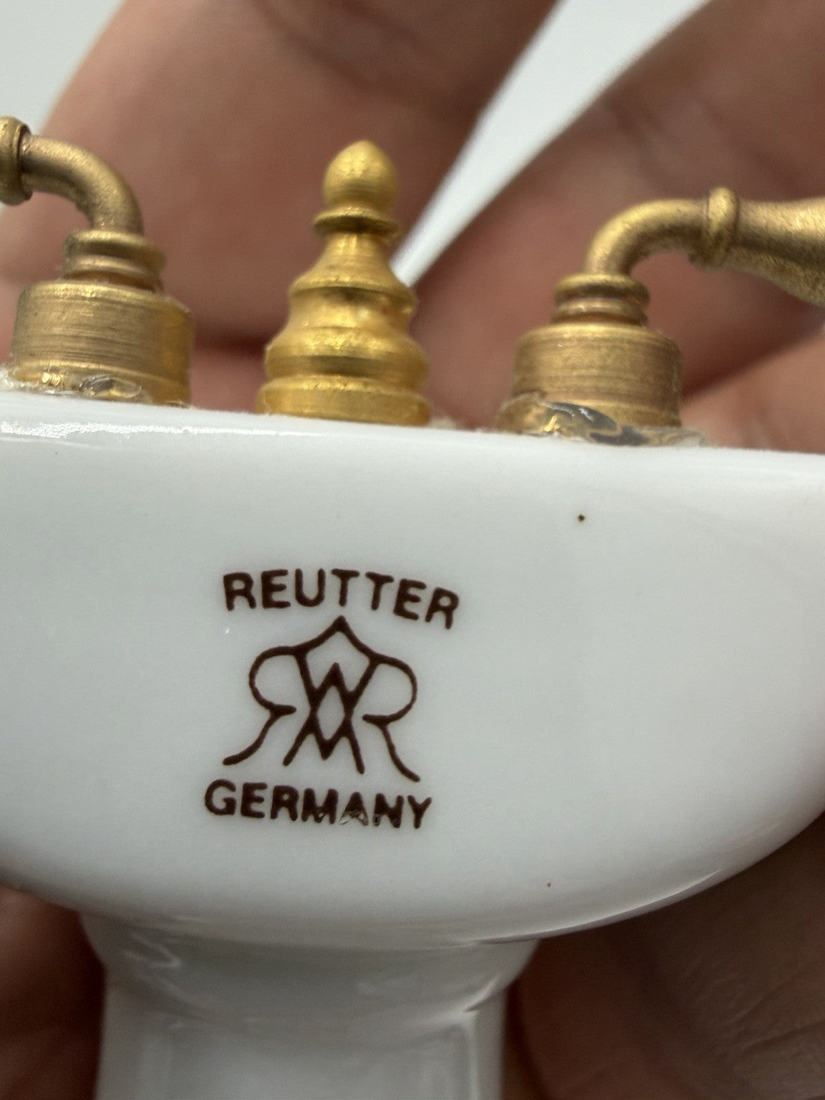 Reutter Germany Porcelain Floral Victorian Bathroom Set Dollhouse Miniature 1:12