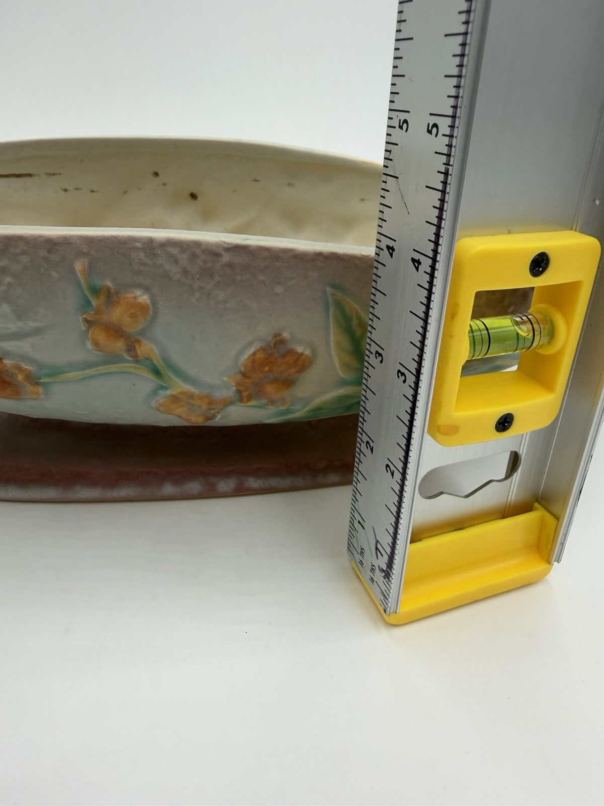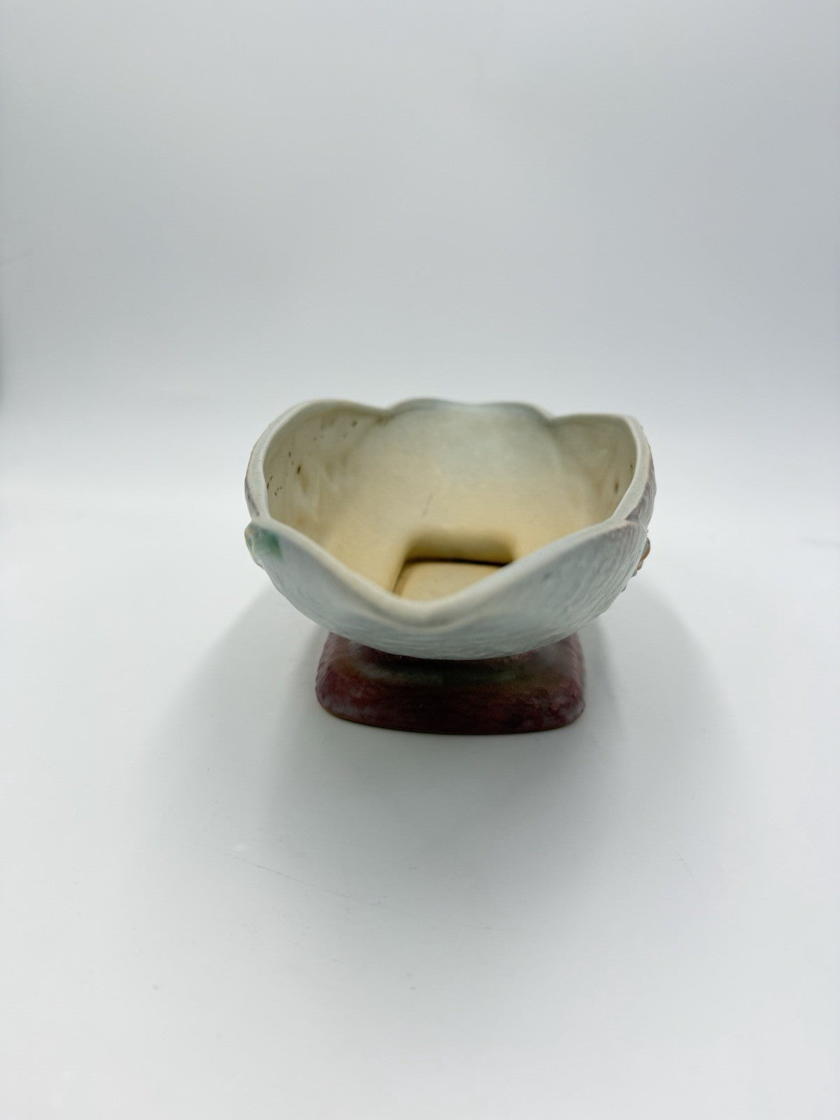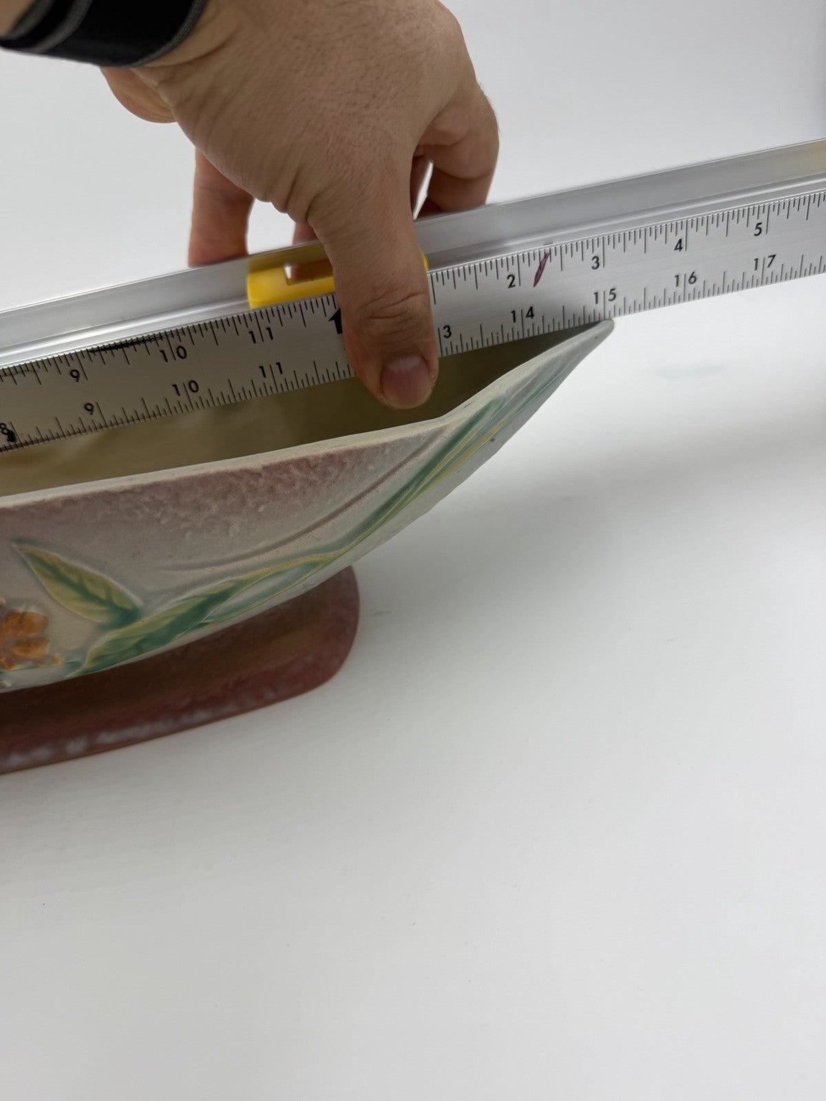 The Roseville Art Pottery Gray Bittersweet Console Bowl Dish 830-14 is a large oval decorative bowl made of clay and ceramic, with a beautiful bittersweet pattern in a multicolor design. Handmade in America in 1951, this vintage piece exudes American Empire style and is marked with an incised backstamp. As a one-piece set, this unique bowl is perfect for all occasions and is sure to add a touch of artistry to any space with its art pottery production technique.