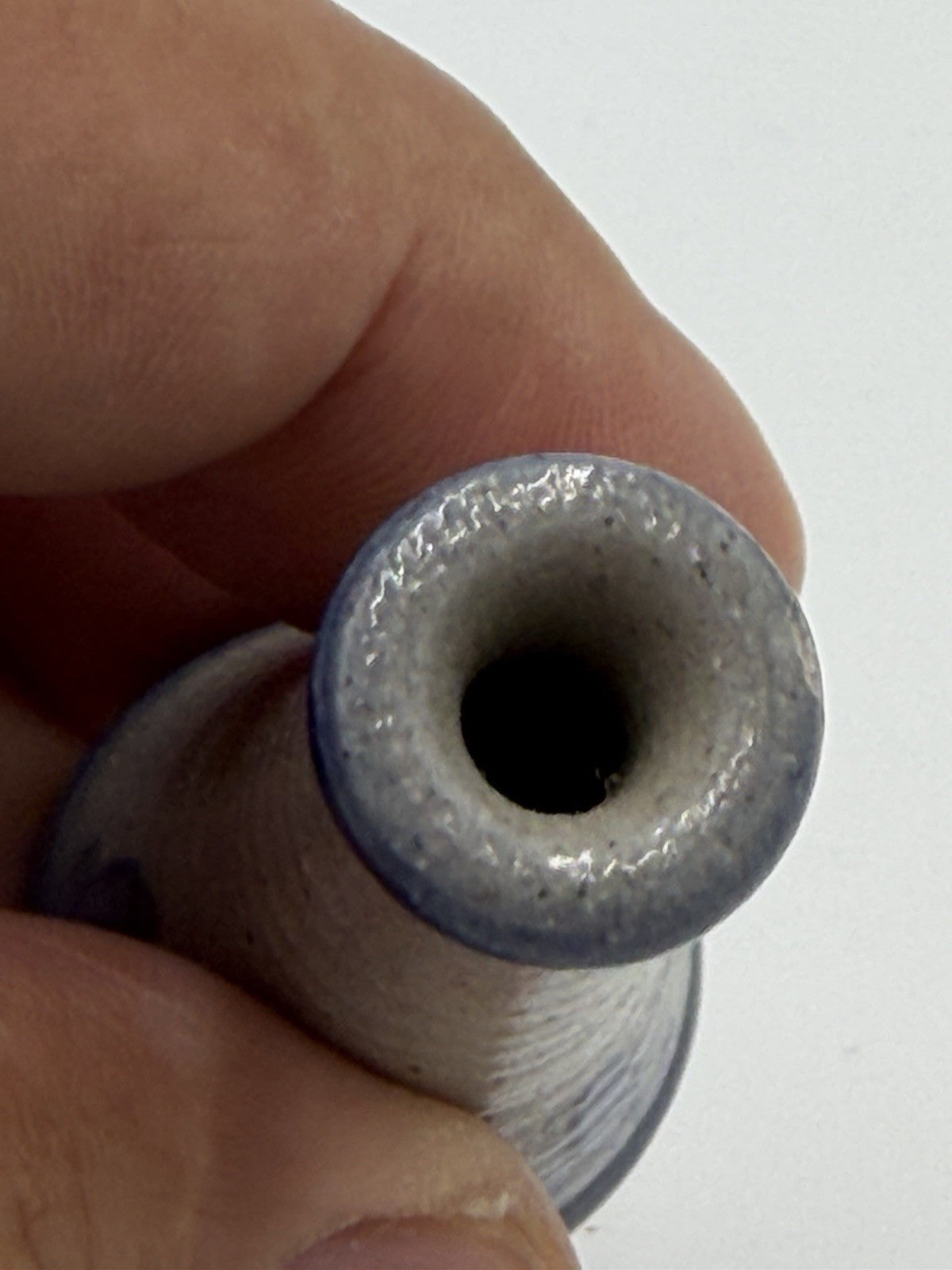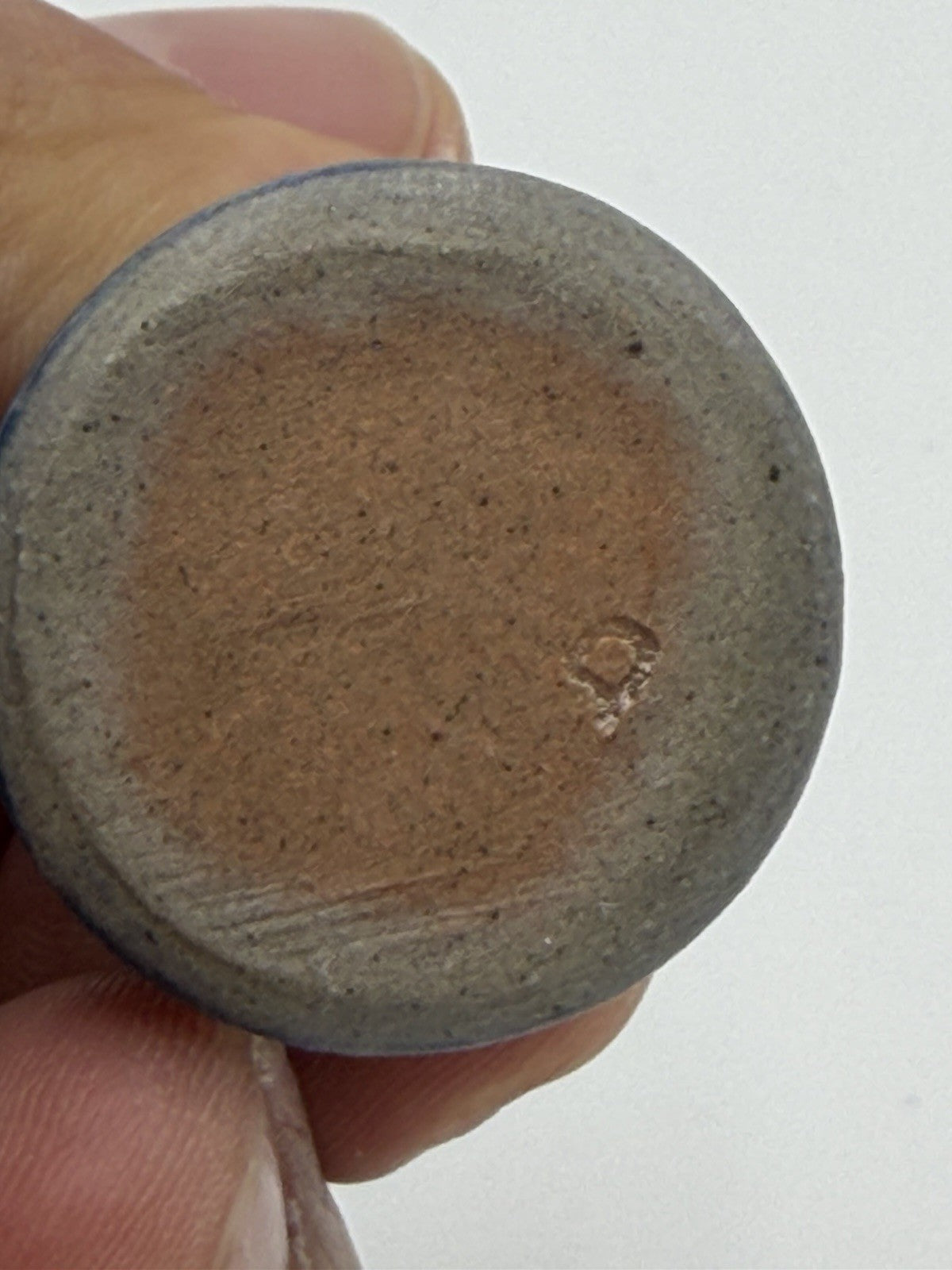 Rowe Pottery Works Miniature Salt Glaze Blue Candle Stick Dollhouse Figurine 2”