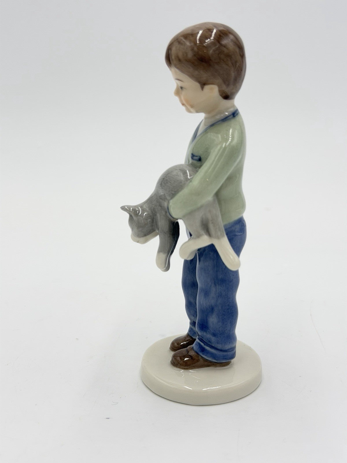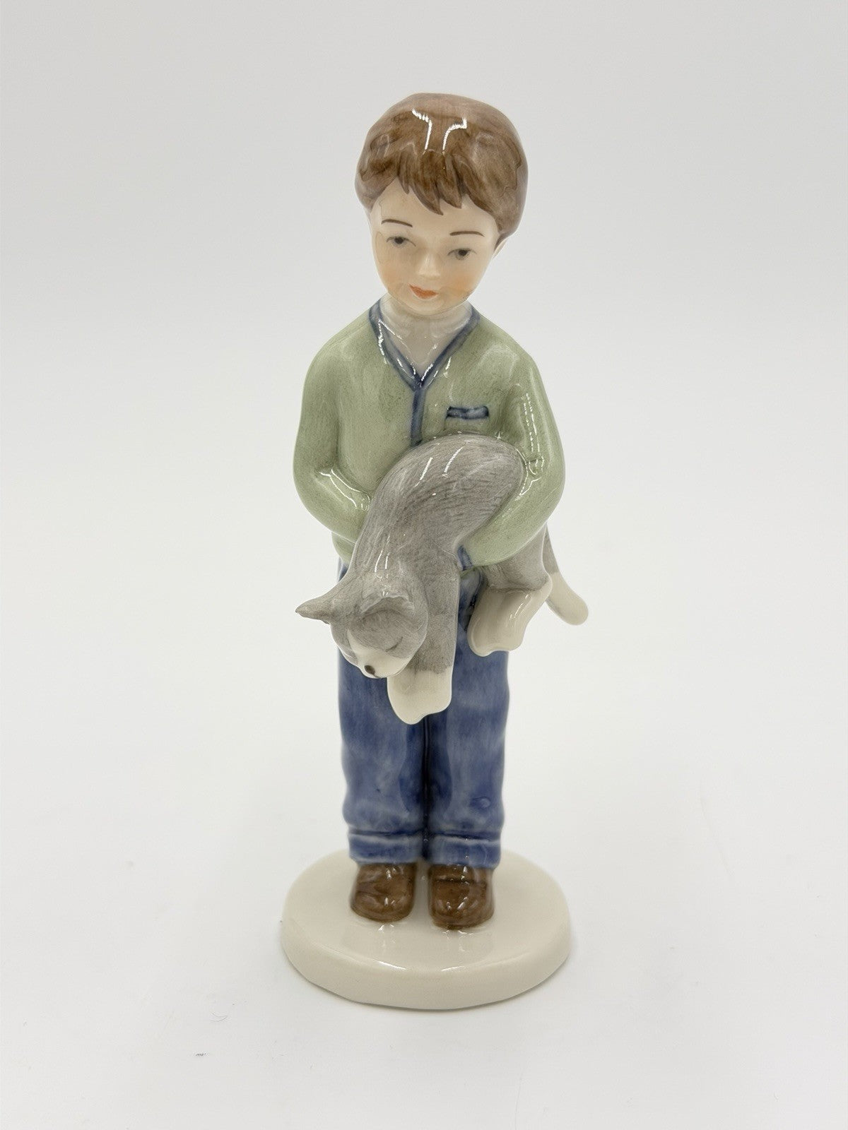 Royal Copenhagen Denmark Porcelain Boy with Cat 5" #758 Yearly Figurine 2001