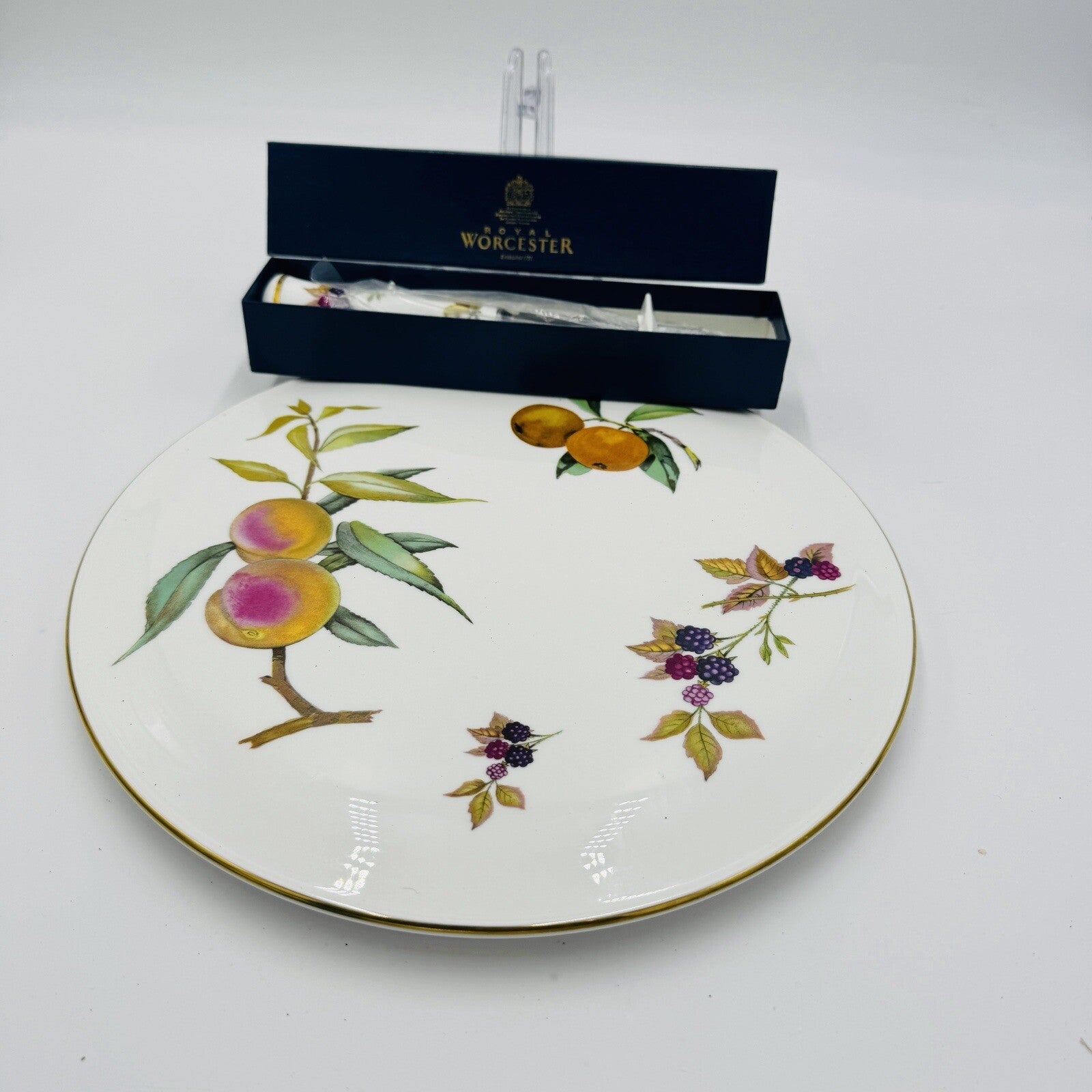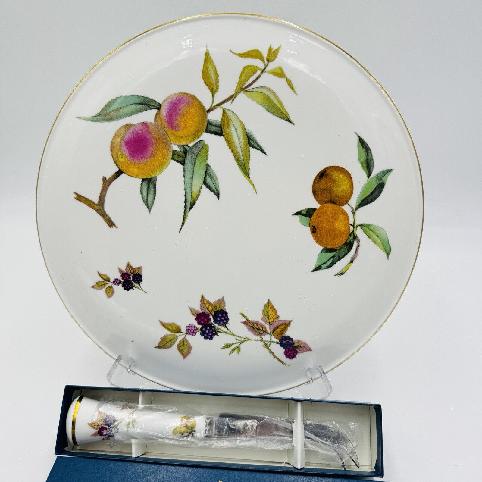 Royal Worcester Arden Fruit Porcelain cake plate & matching Cheese knife 1974
