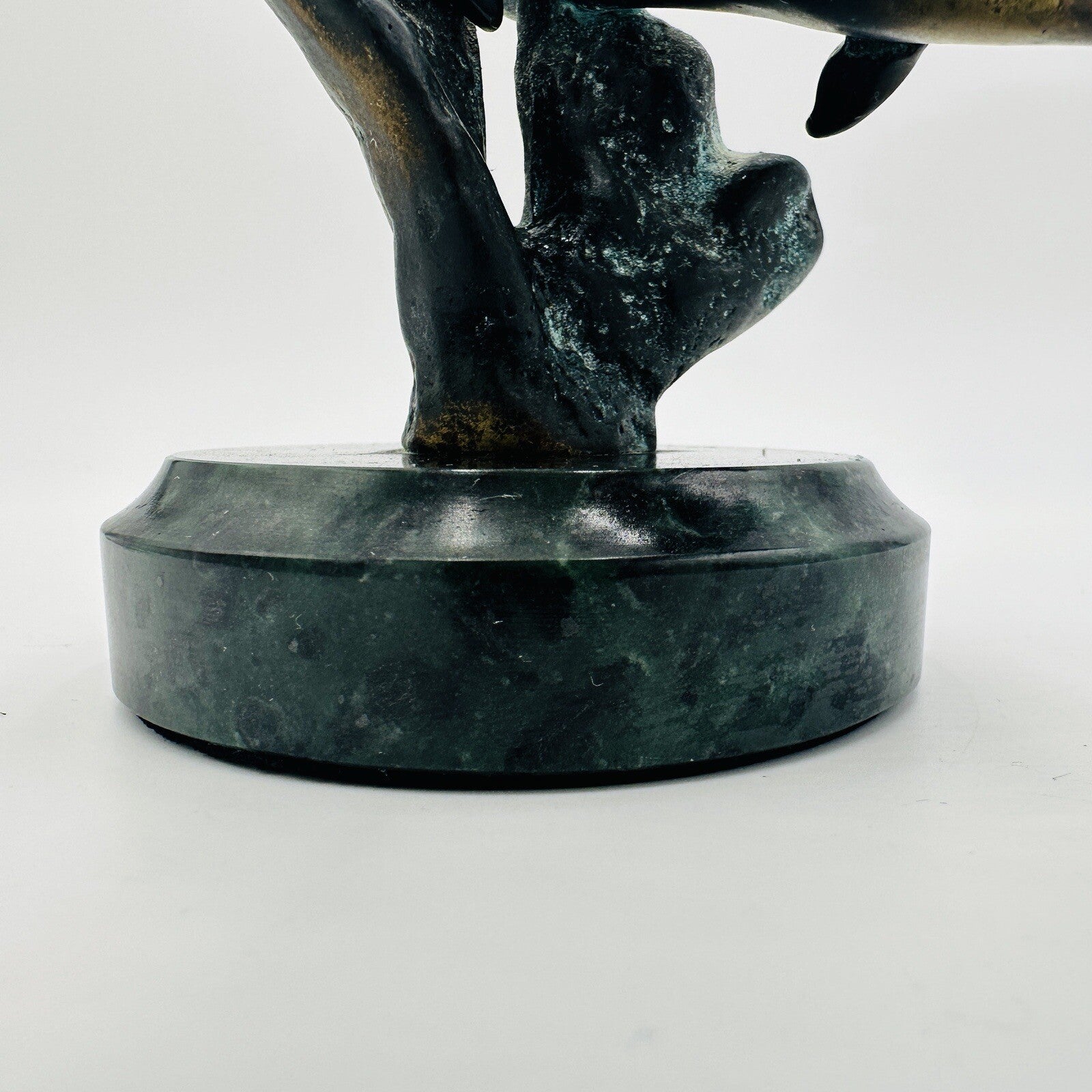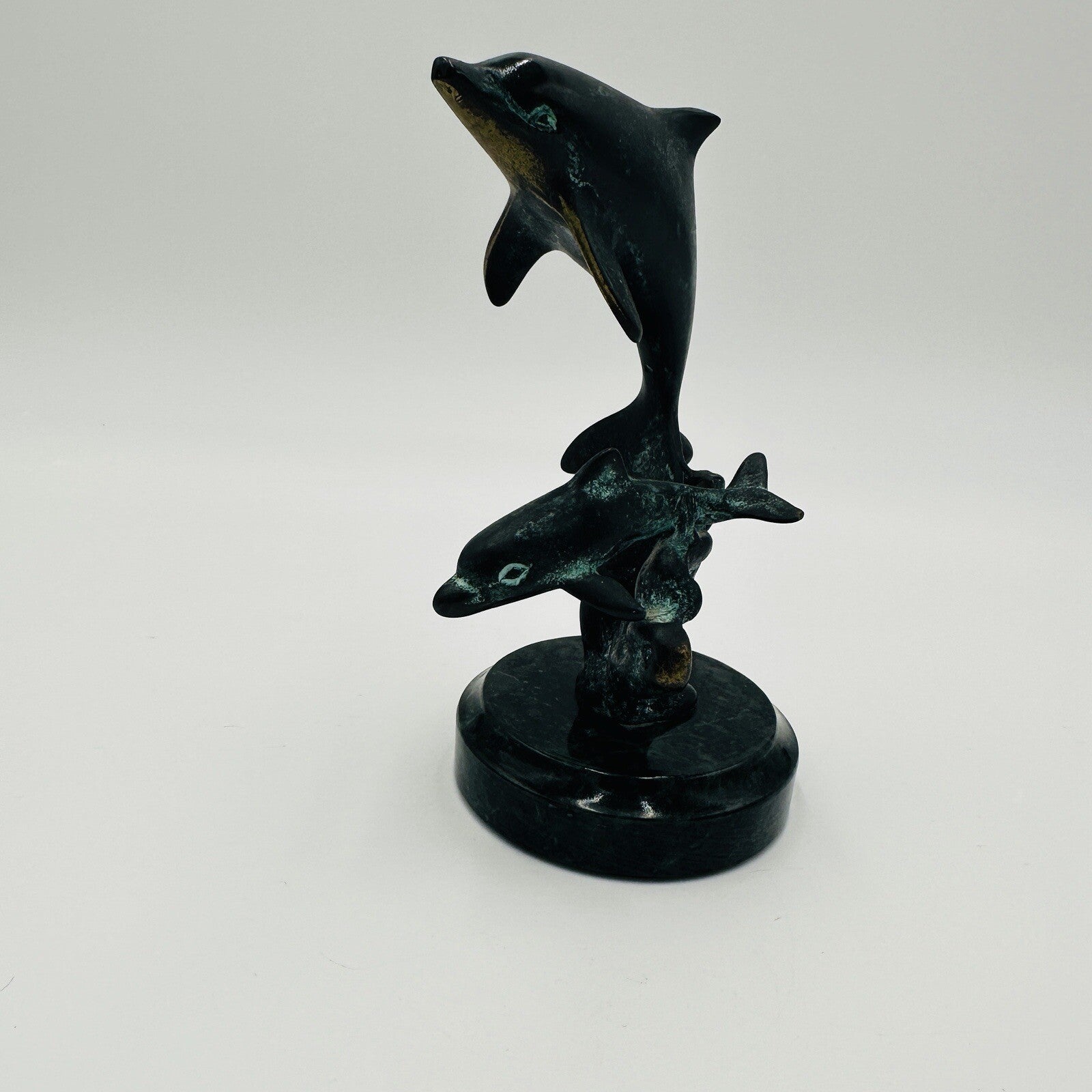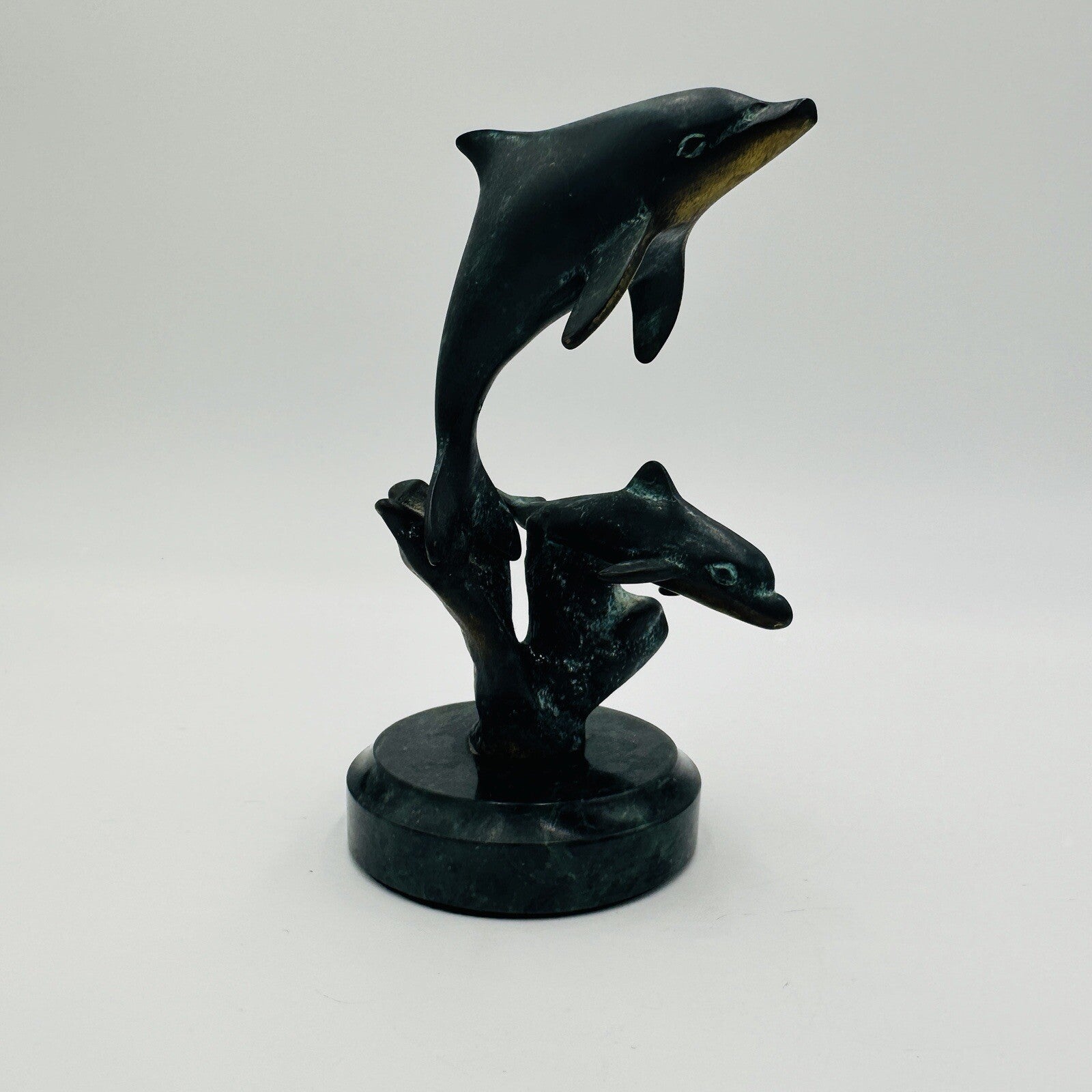 SPI Gallery Handmade Brass And Marble Double Dolphin Art Sculpture Ocean