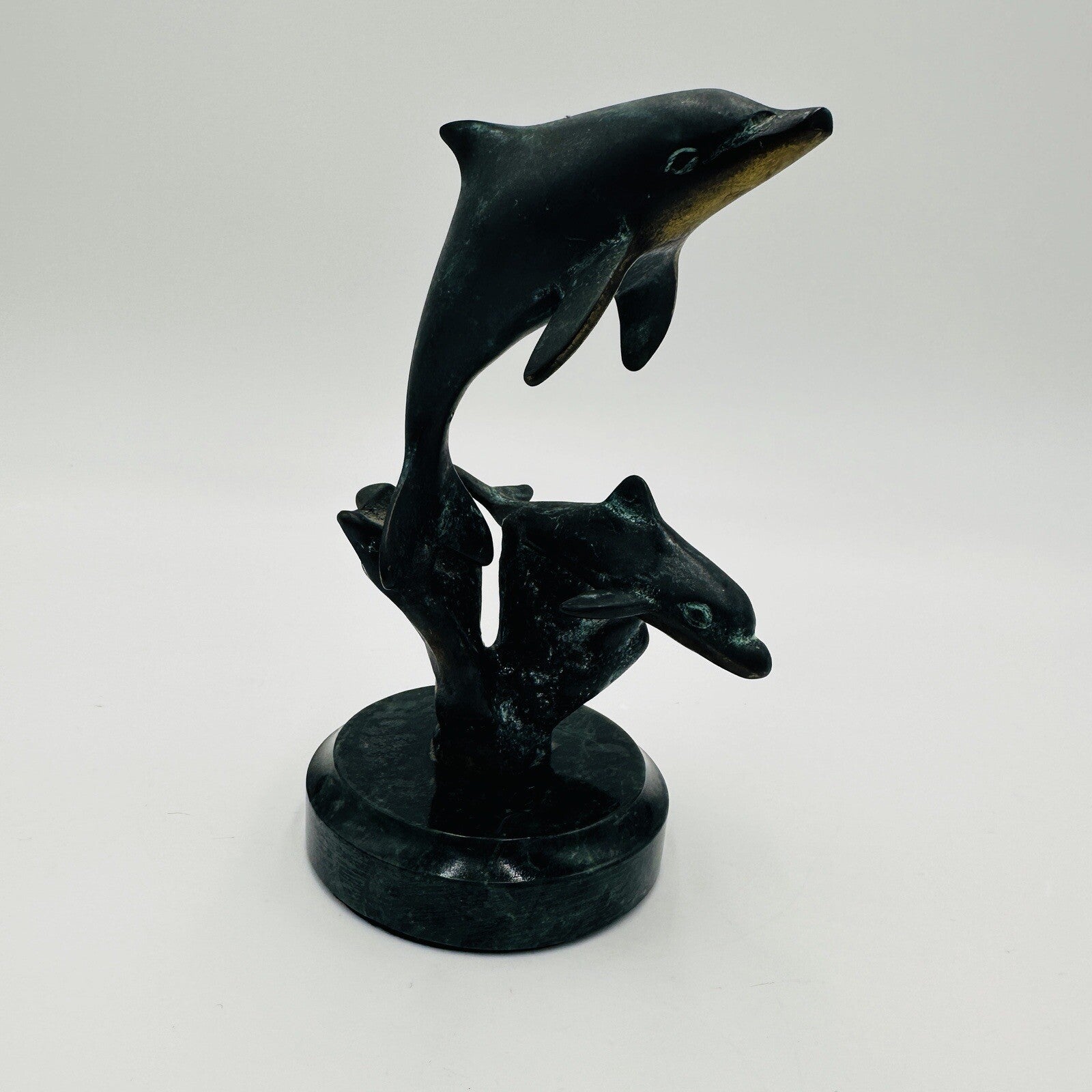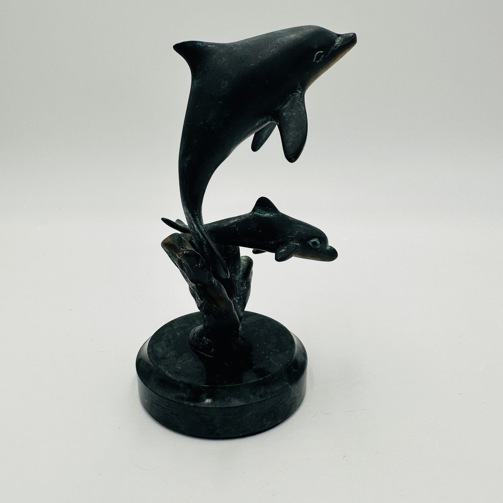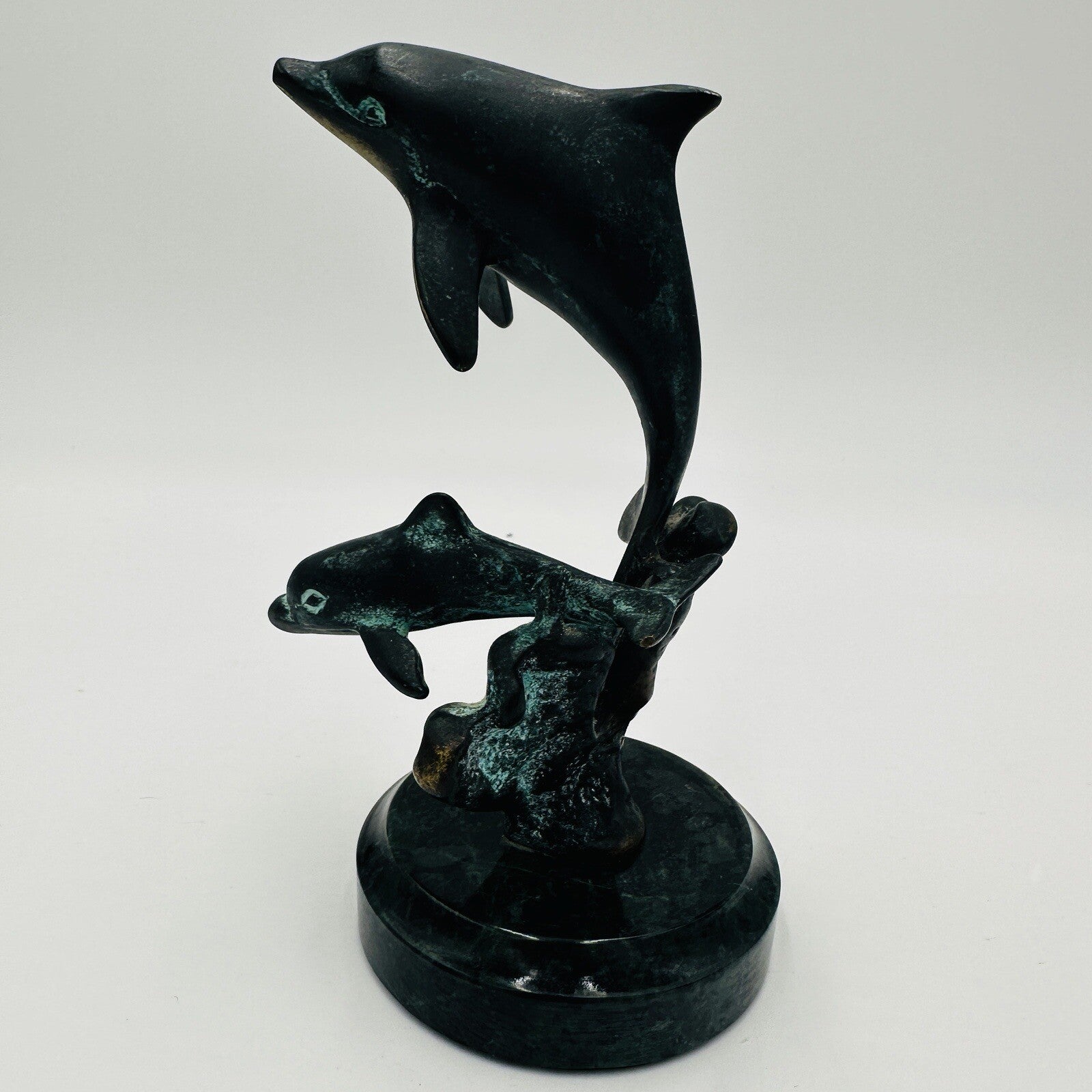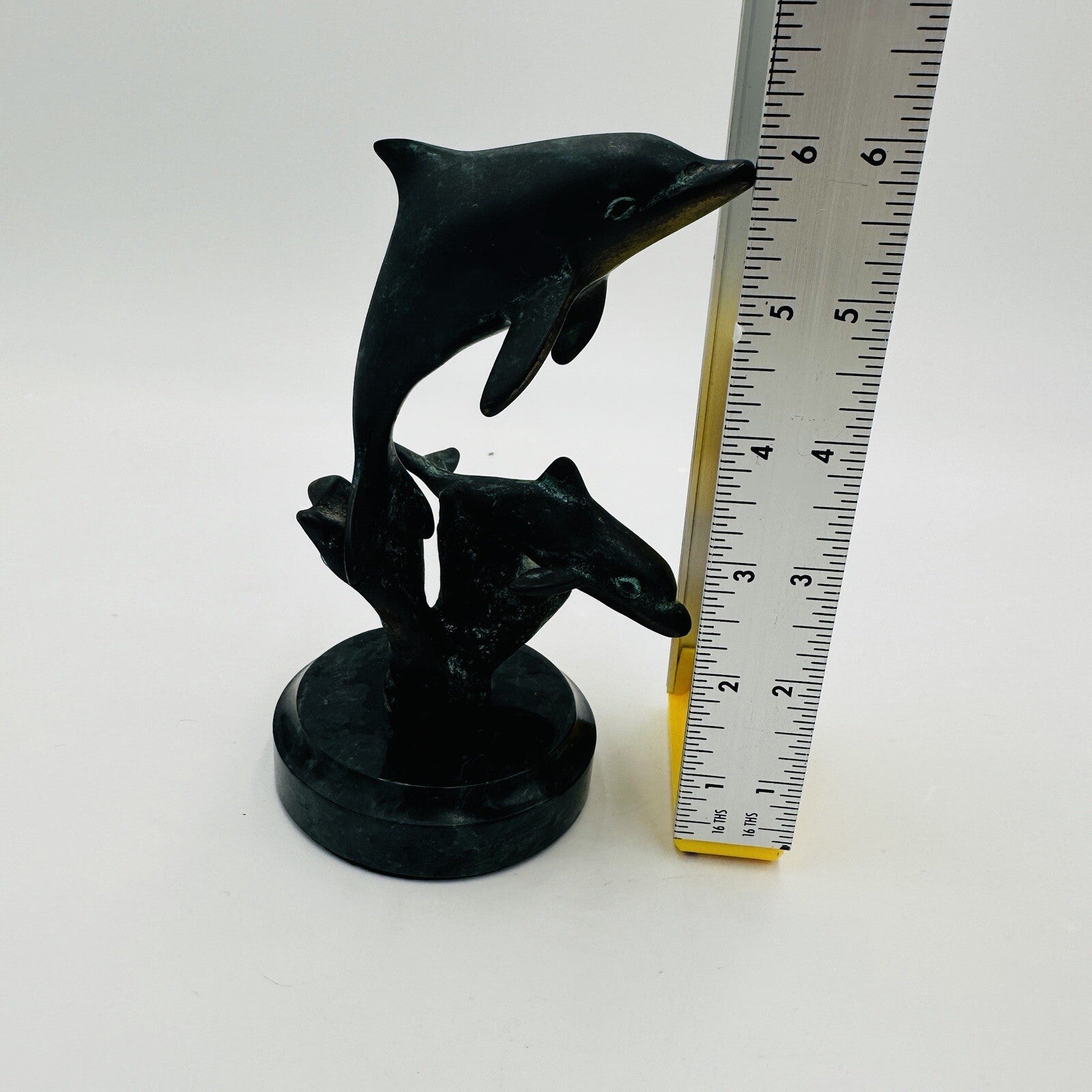SPI Gallery Handmade Brass And Marble Double Dolphin Art Sculpture Ocean