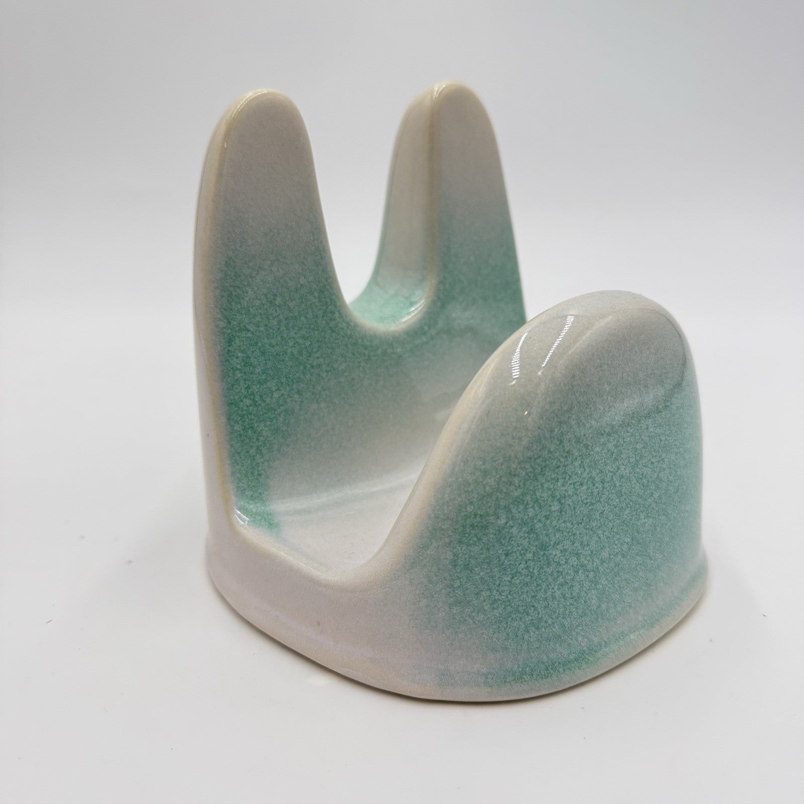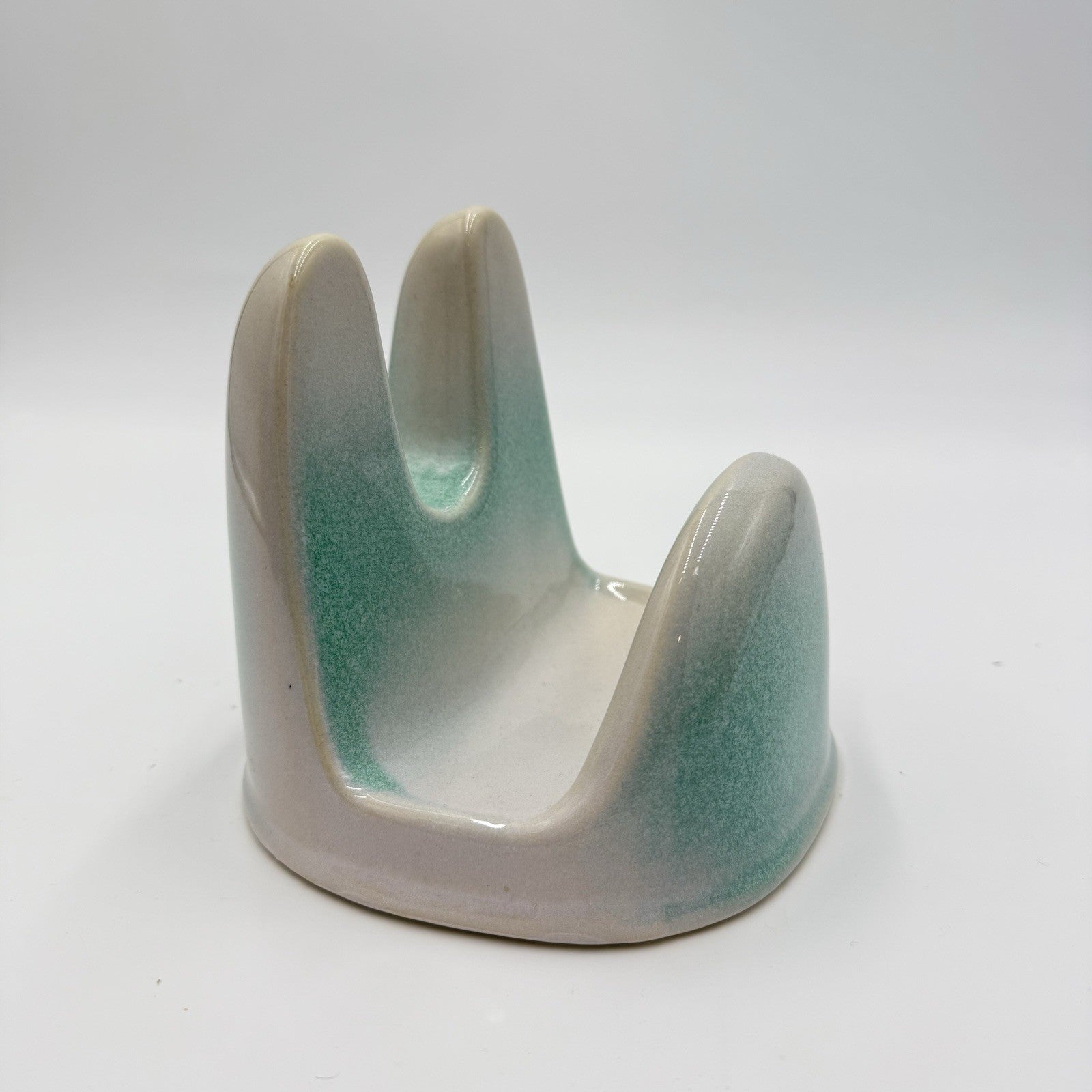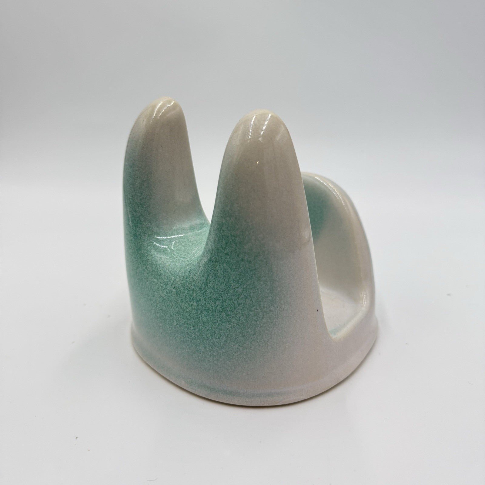 Studio Art Pottery Green & White Lid Stand Stoneware 5”x5.5”x5”