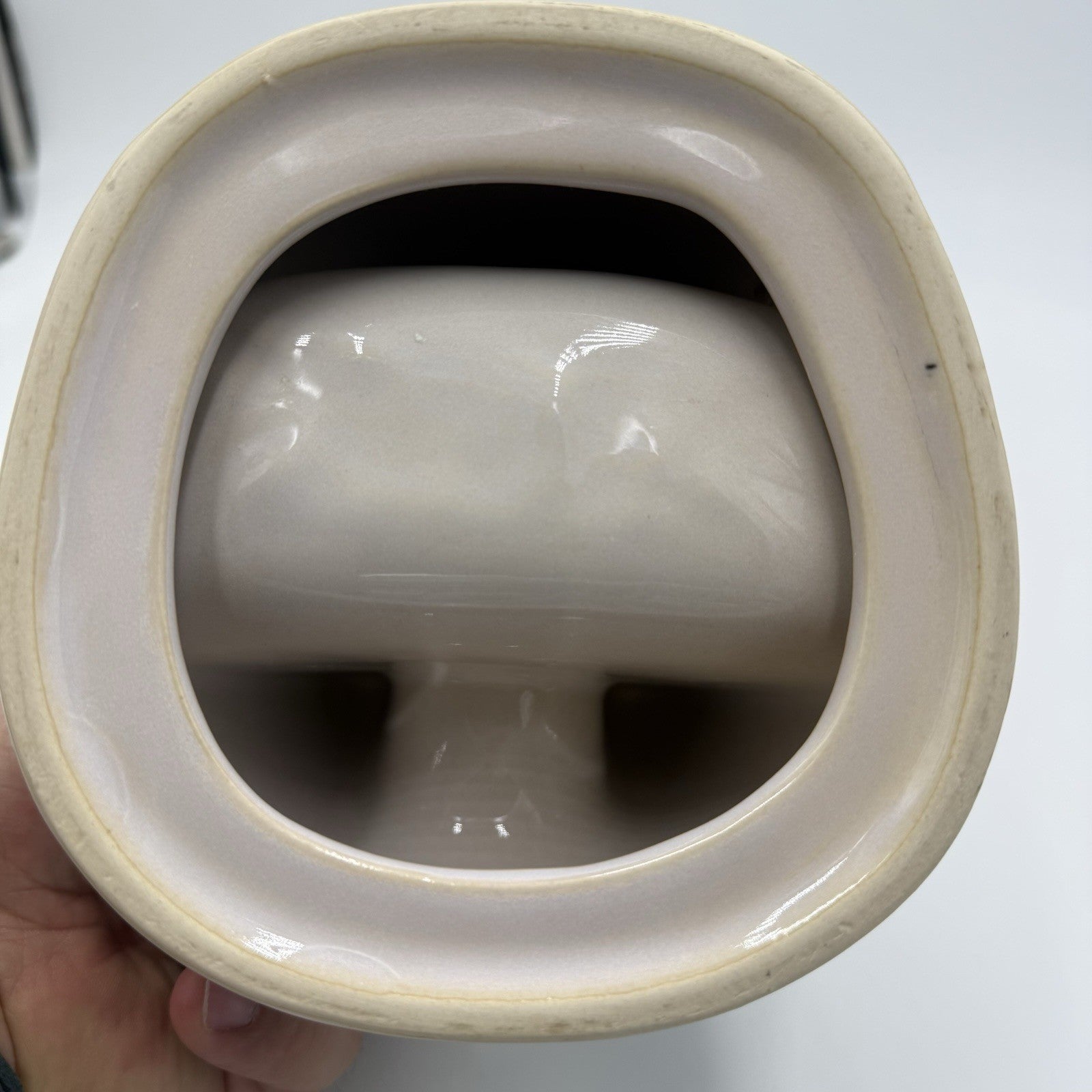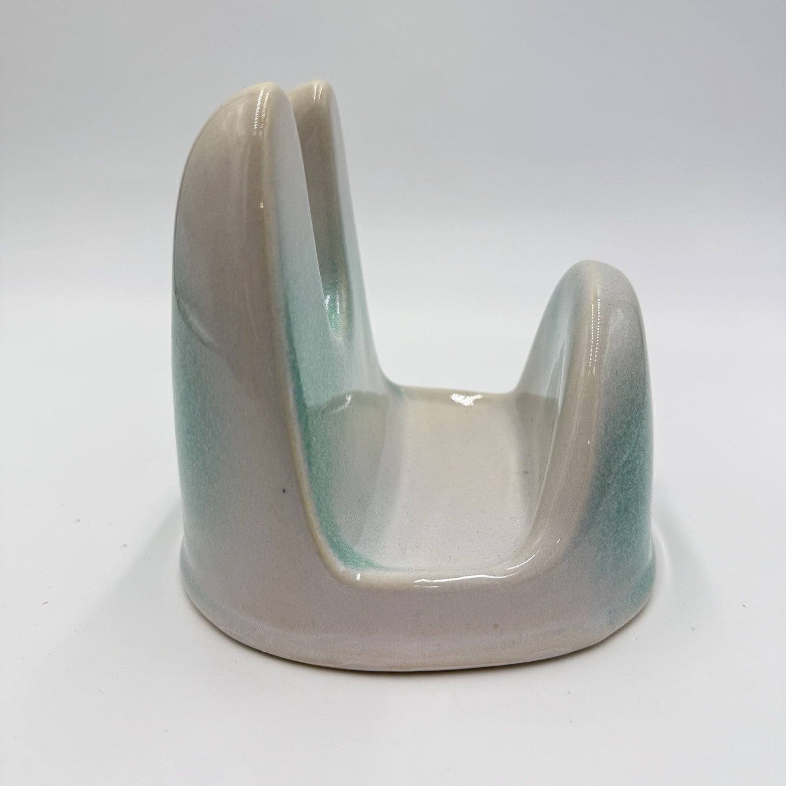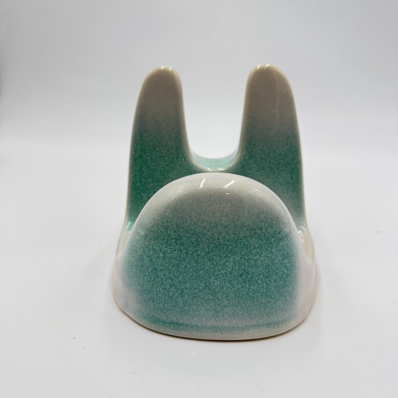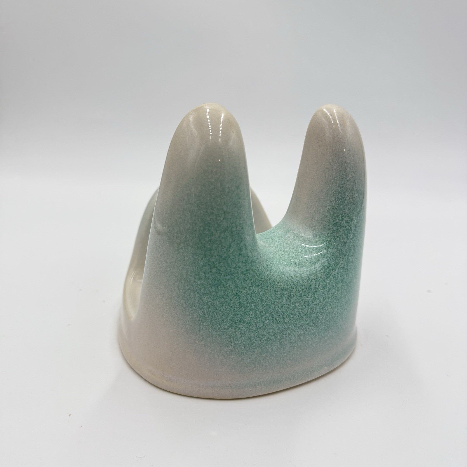 Studio Art Pottery Green & White Lid Stand Stoneware 5”x5.5”x5”