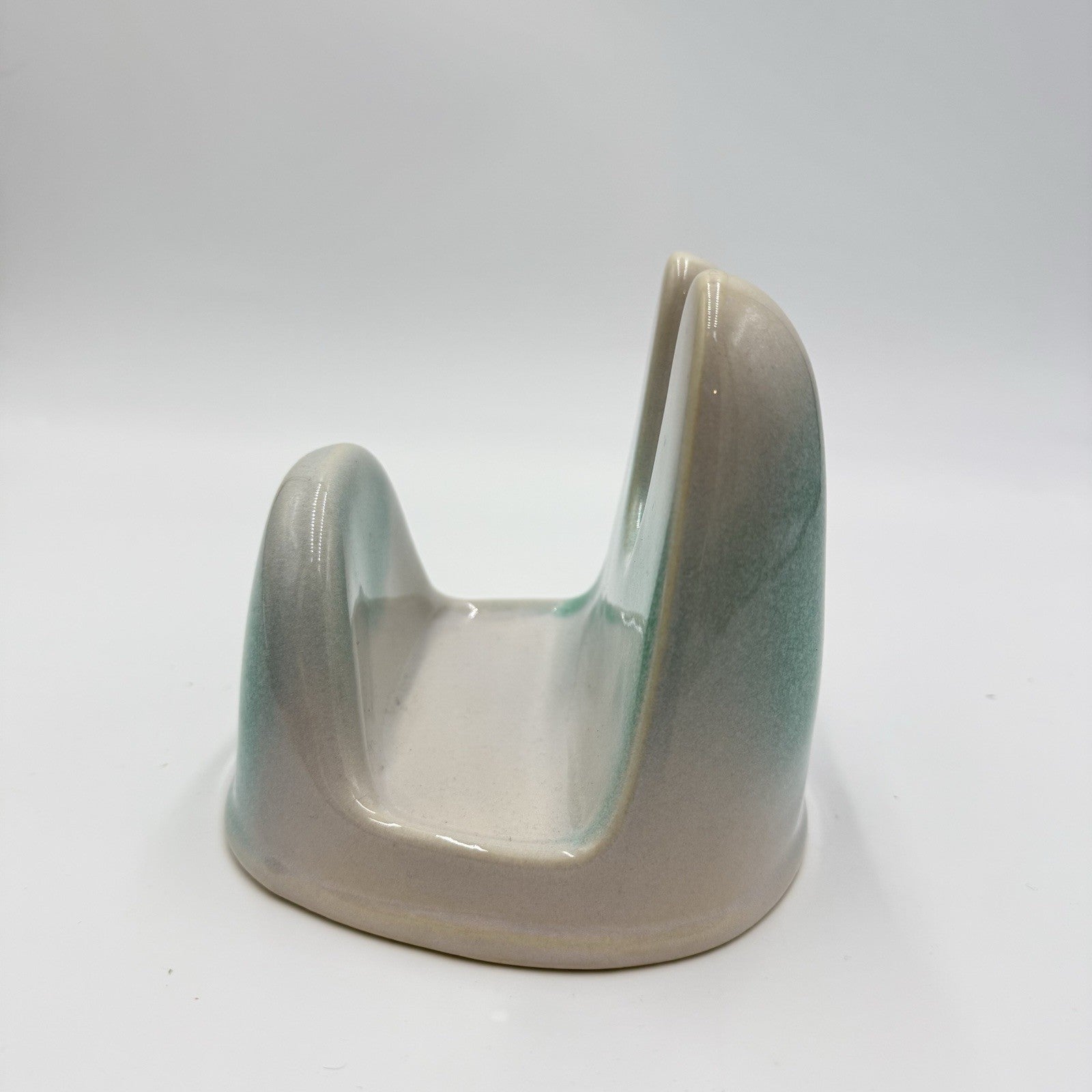This vintage Studio Art Pottery Lid Stand is a unique and stylish addition to any home decor. Made of stoneware with a glossy green and white finish, this square-shaped piece measures 5" x 5.5" x 5". The medium-sized lid stand is an original art pottery production, showcasing a blend of artistry and functionality. Perfect for adding a touch of charm to a kitchen or dining room, this one-of-a-kind piece is a true statement of artistic craftsmanship.