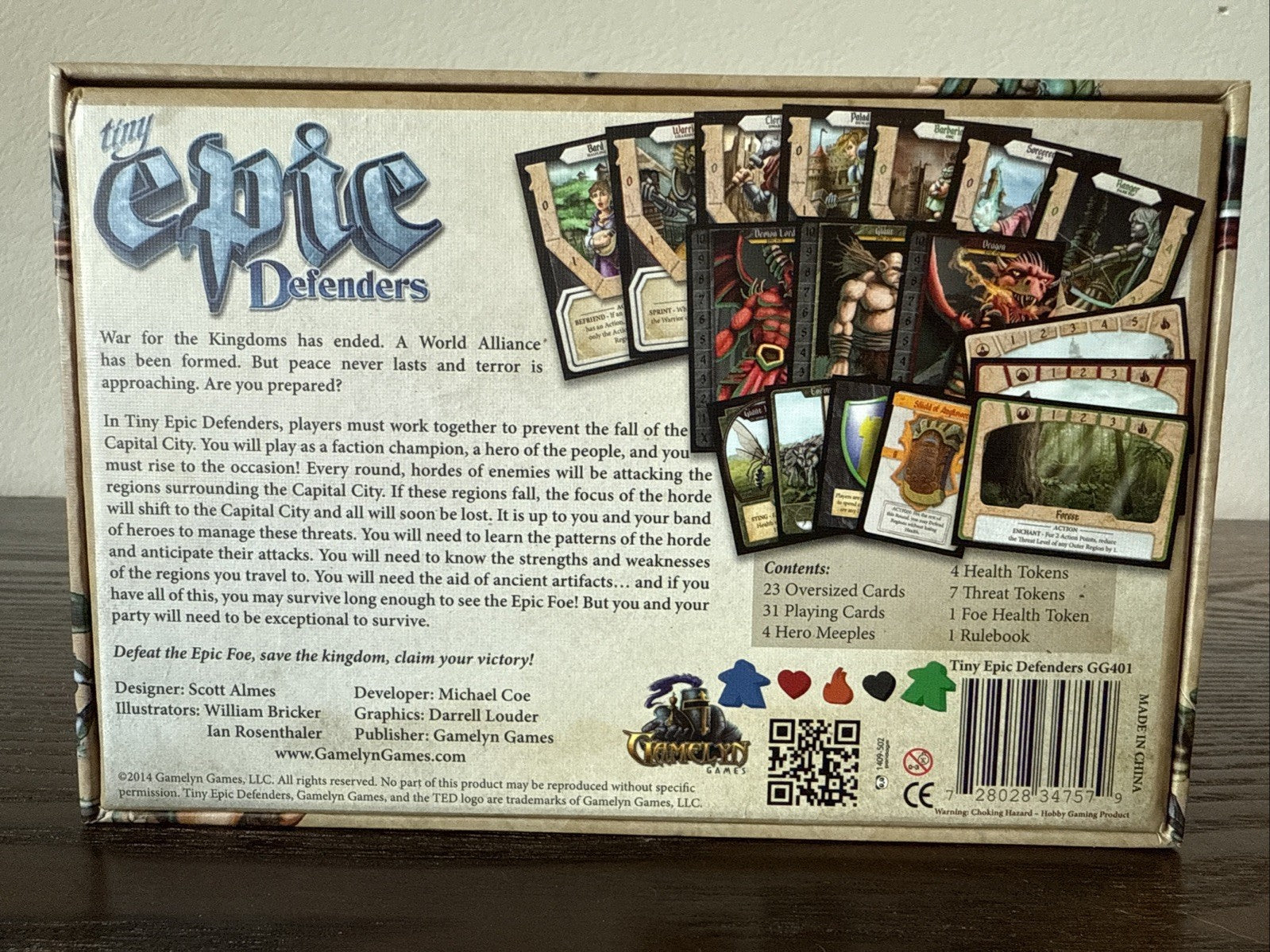 Crafted for those aged 14 and up, Tiny Epic Defenders offers a rich gameplay experience with its intricate design and detail. The components are manufactured in China, reflecting the game's commitment to quality. Whether you're looking to expand your collection or dive into a new adventure, this board game is a fantastic choice for anyone who relishes strategy and the magic of fantasy gaming.