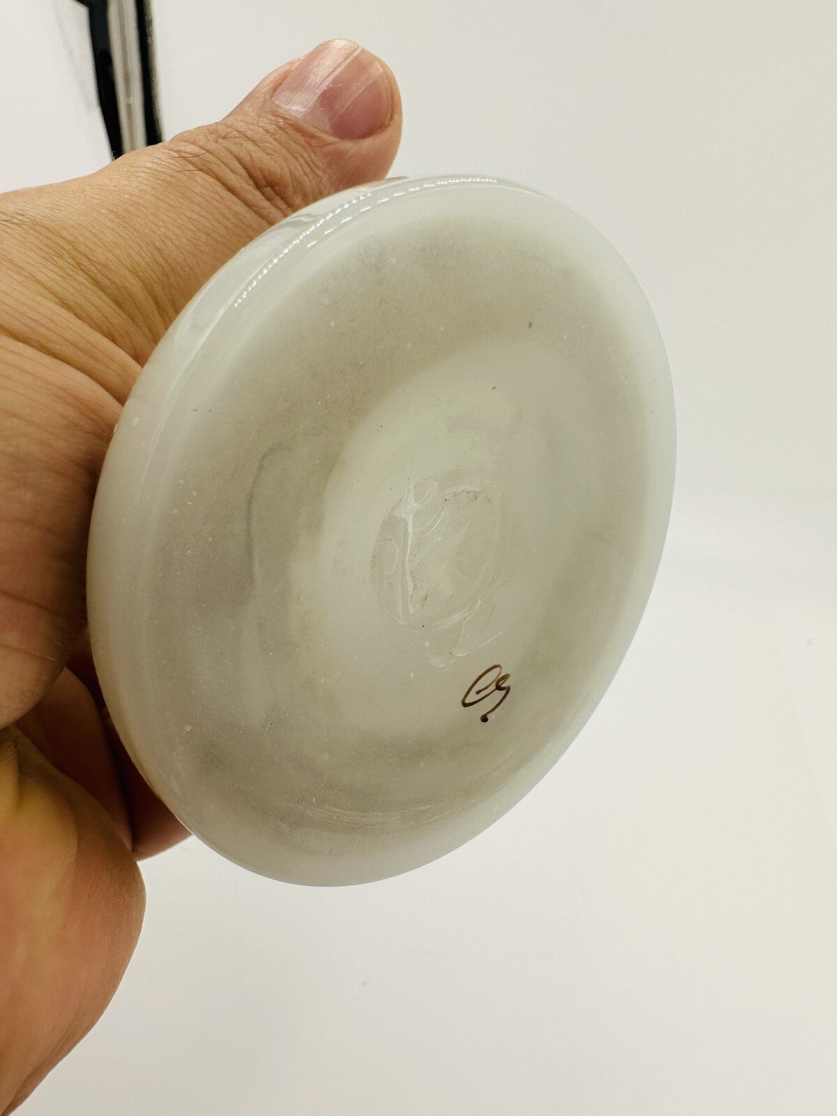 Victorian White Bristol opaline floral hand blown & hand painted vase.
