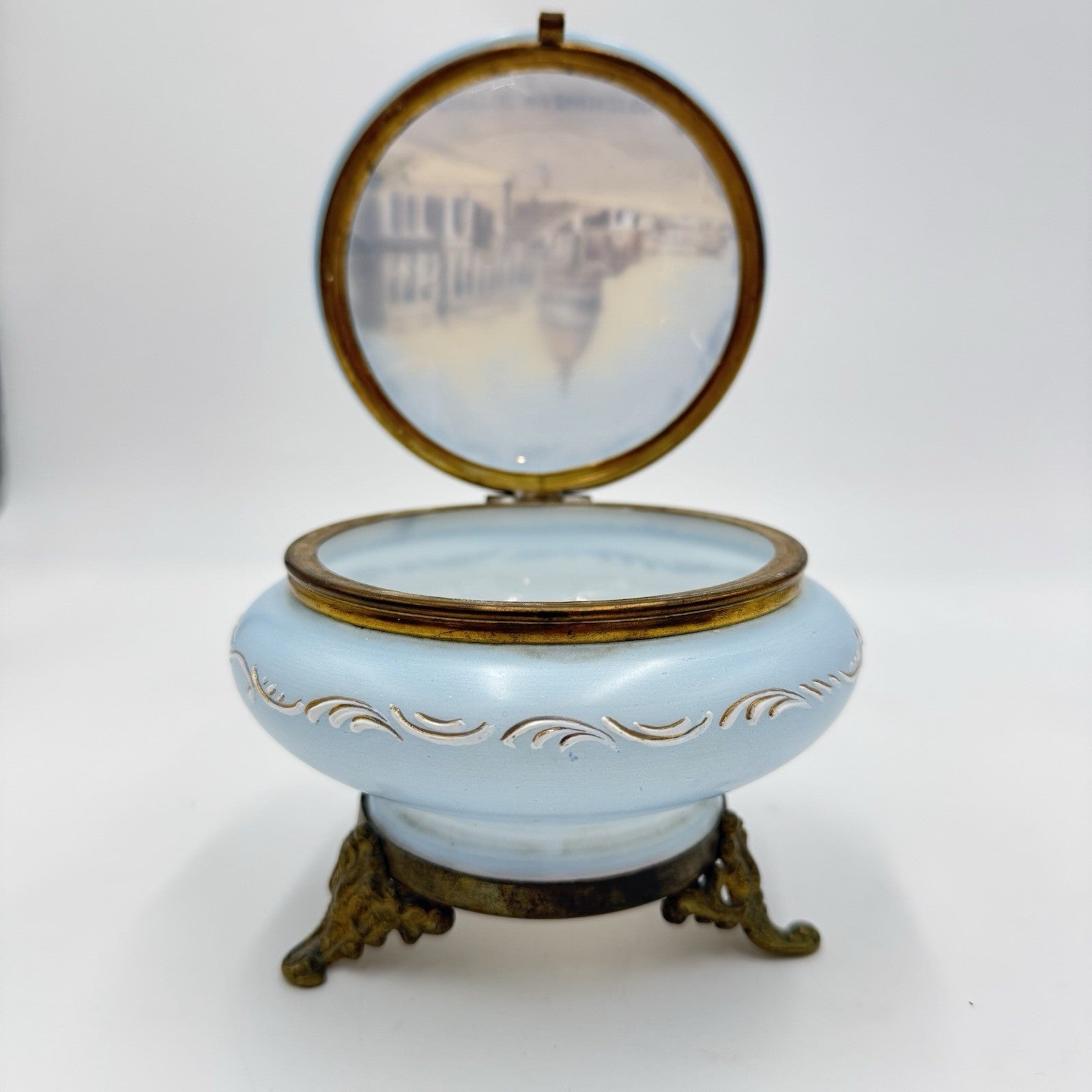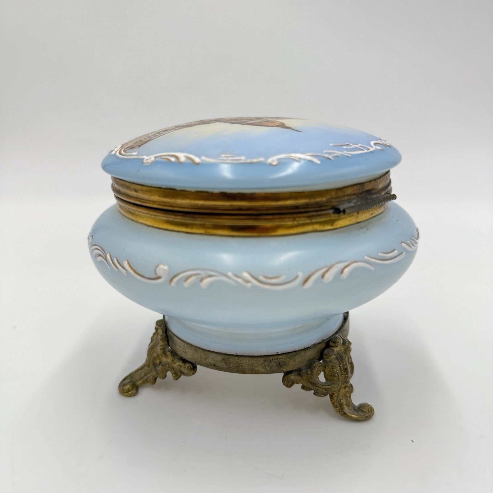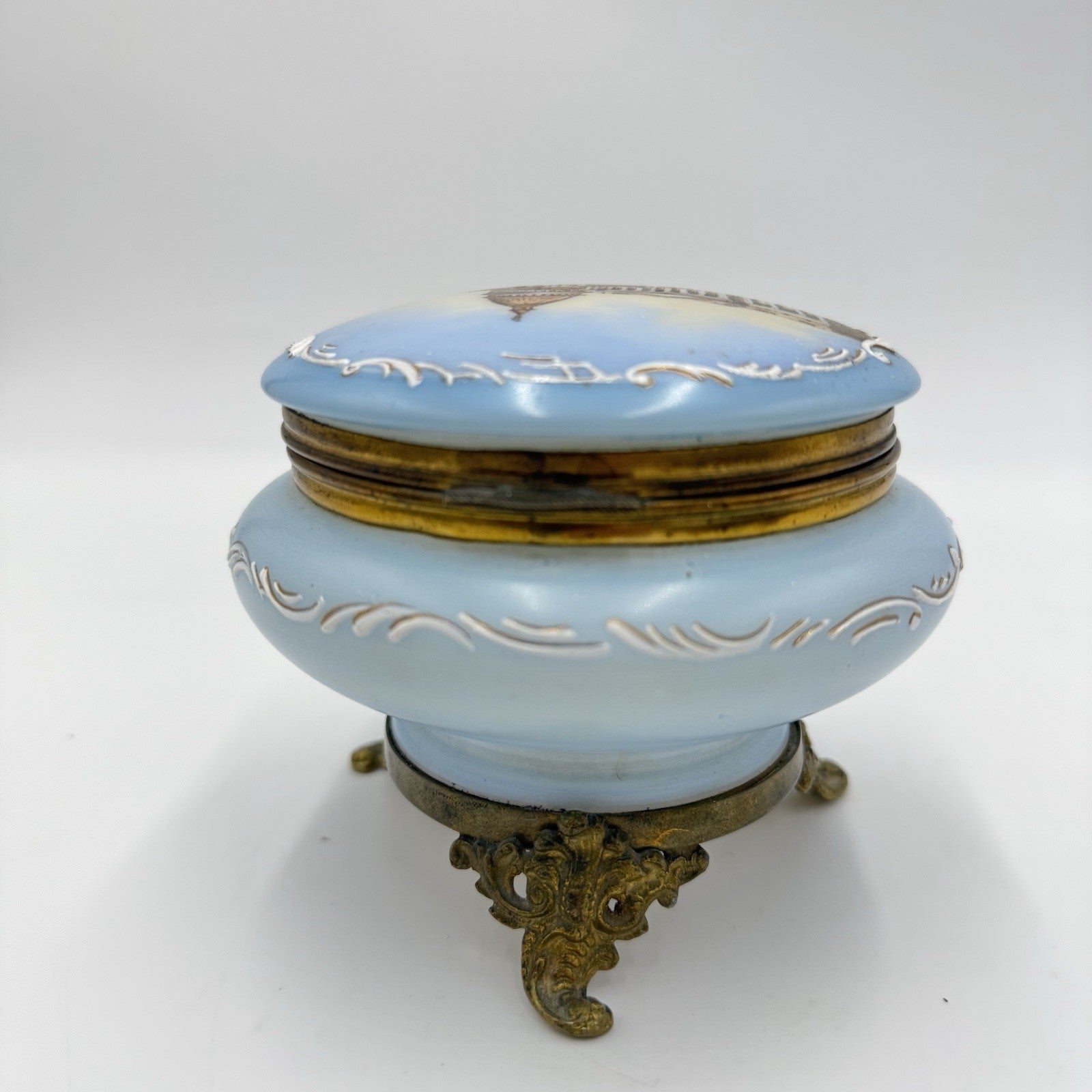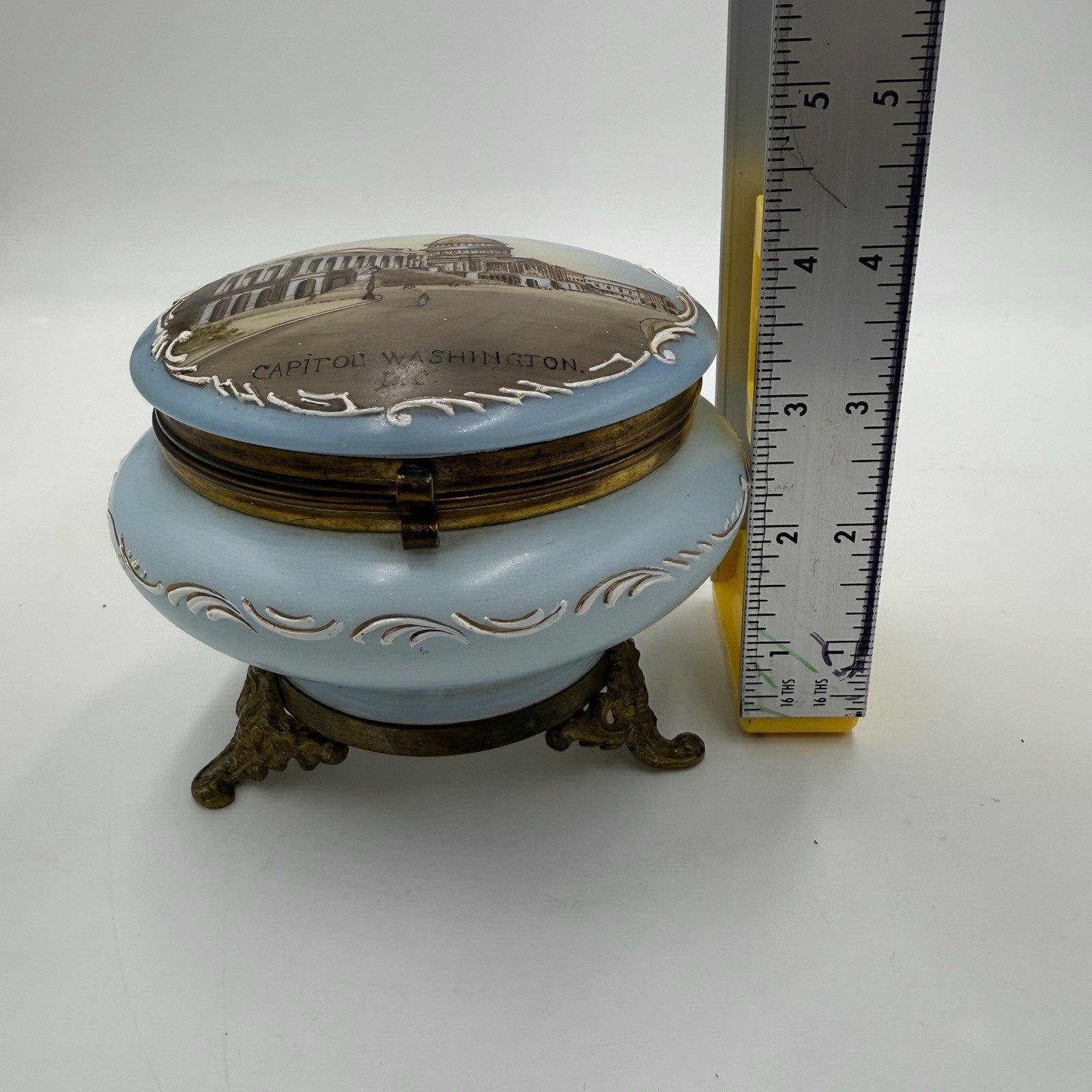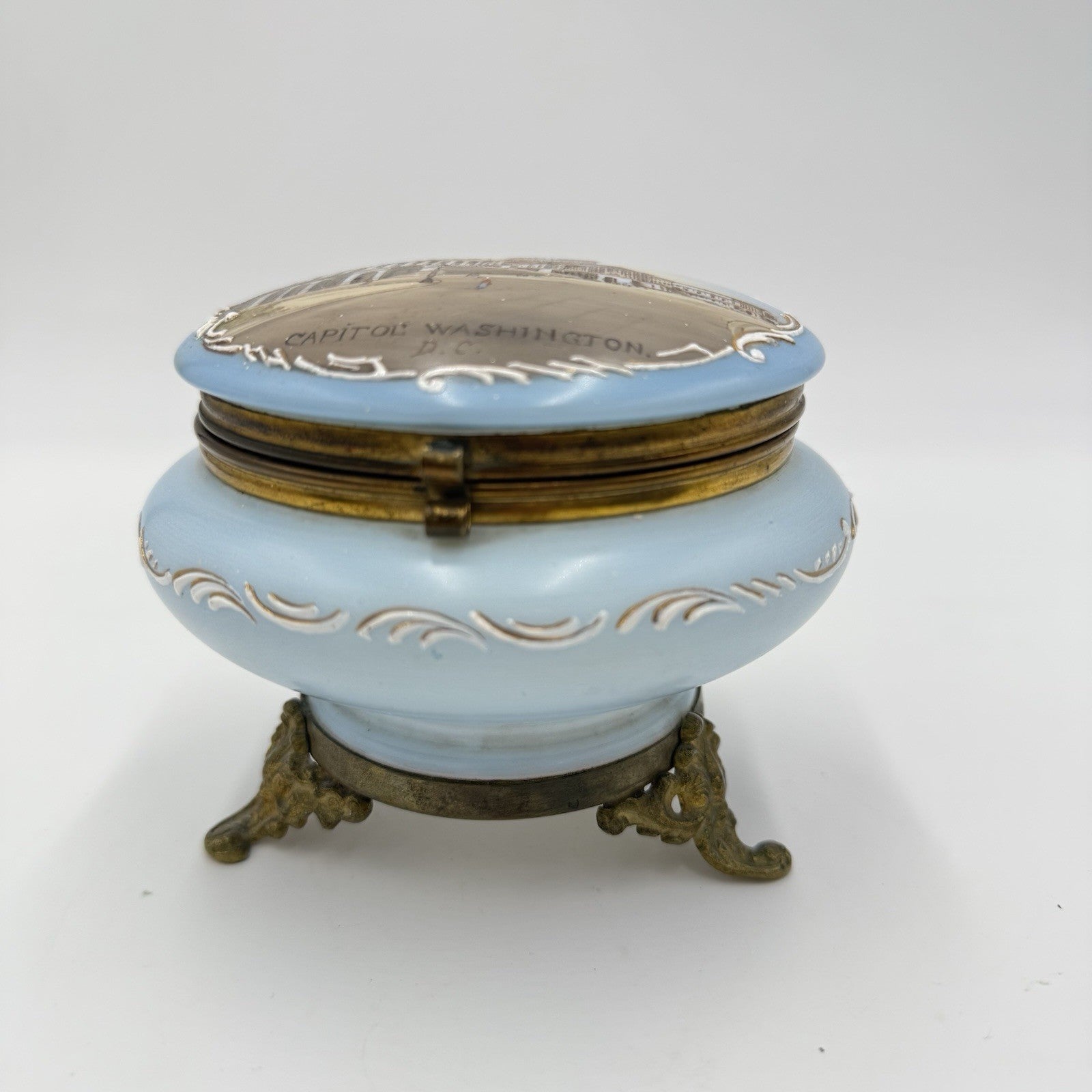 Victorian opaline Capitol Washington painted vanity trinket powder Box Antique