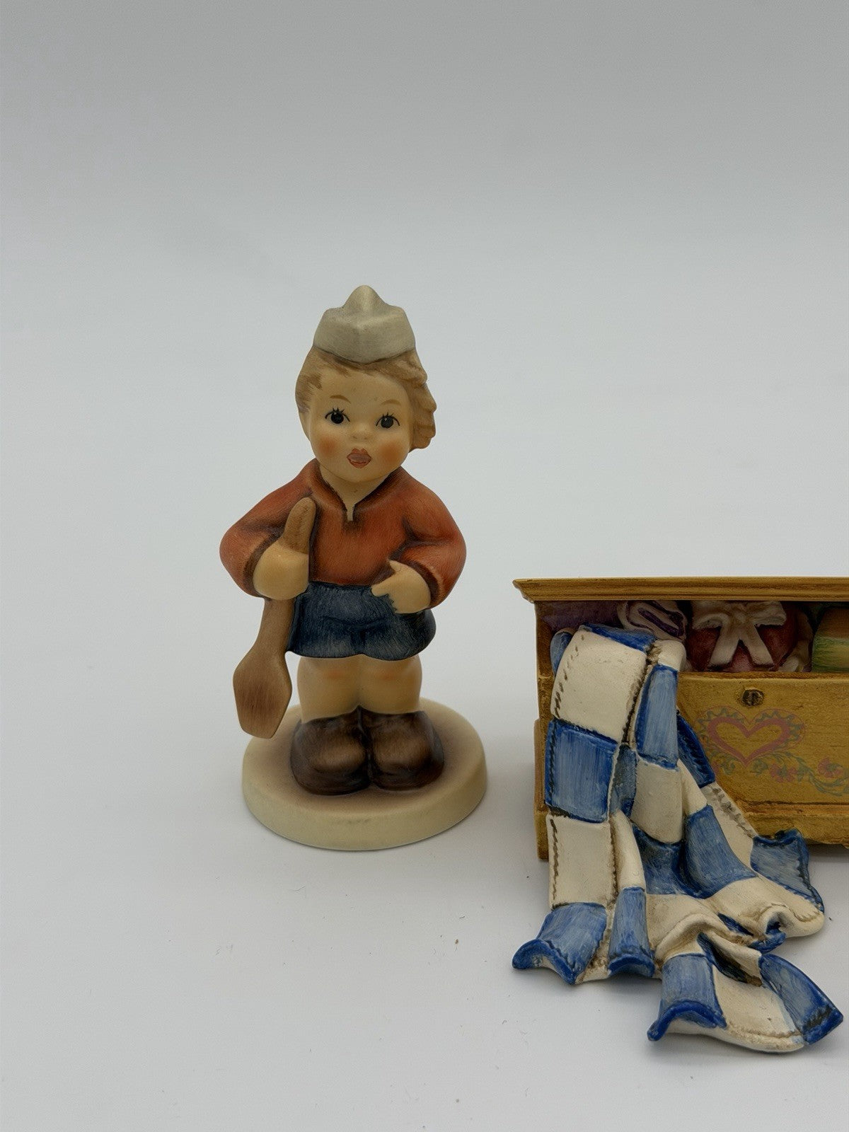 VINTAGE 1999 GOEBEL SMALL HOPE CHEST Plus 2 Hummel Goebel Figurines Set