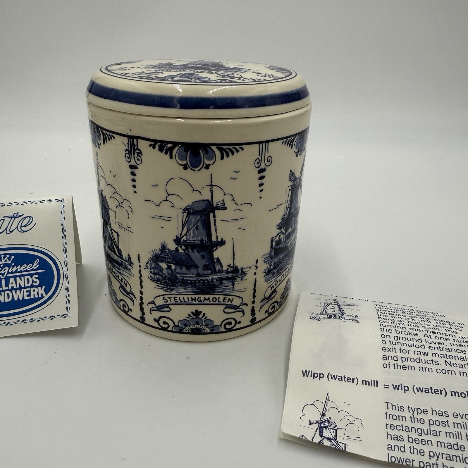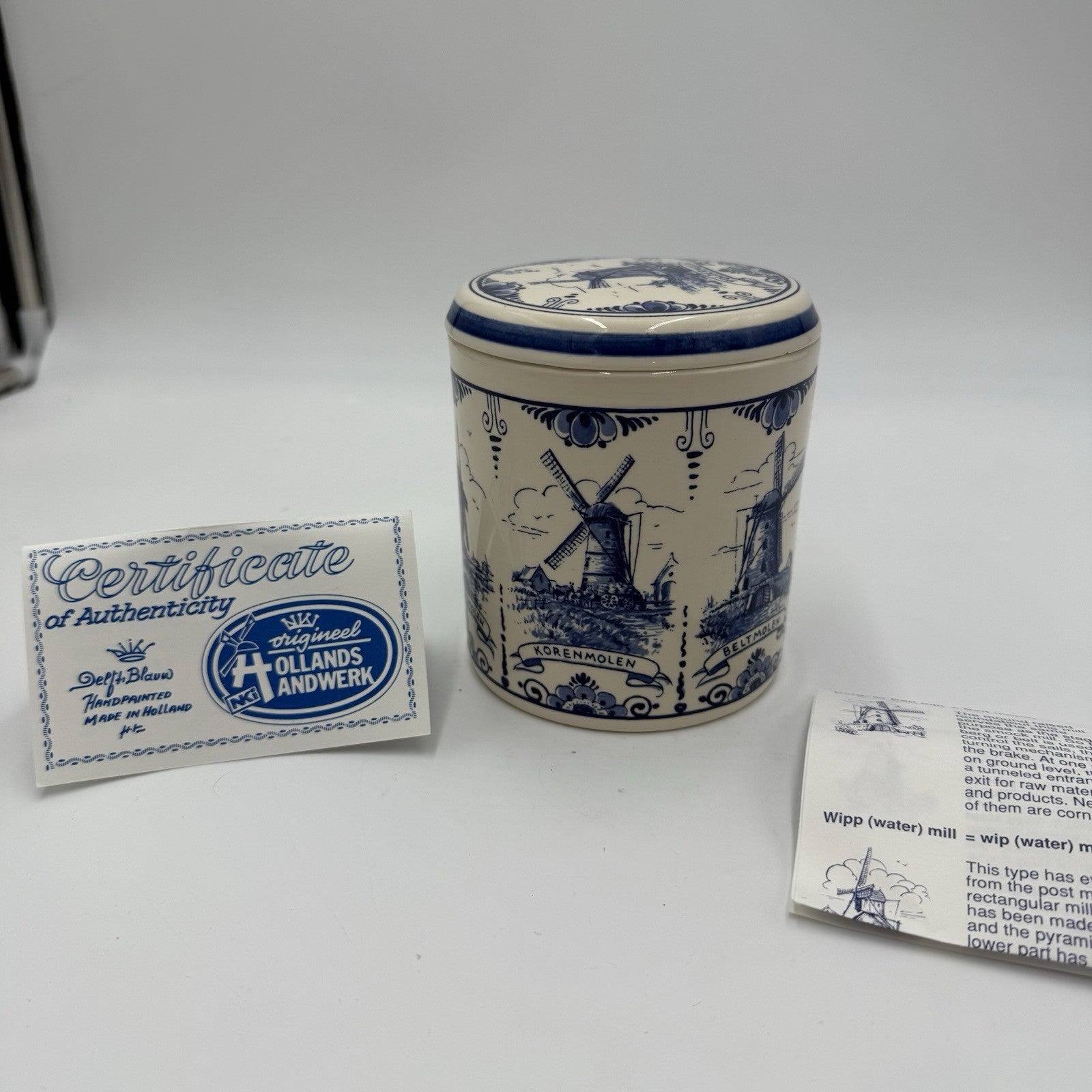 Vintage Delft Blue Windmill Storage Canister Hand Painted Dutch COA Paperwork