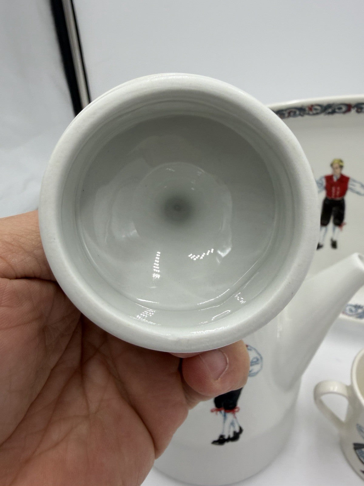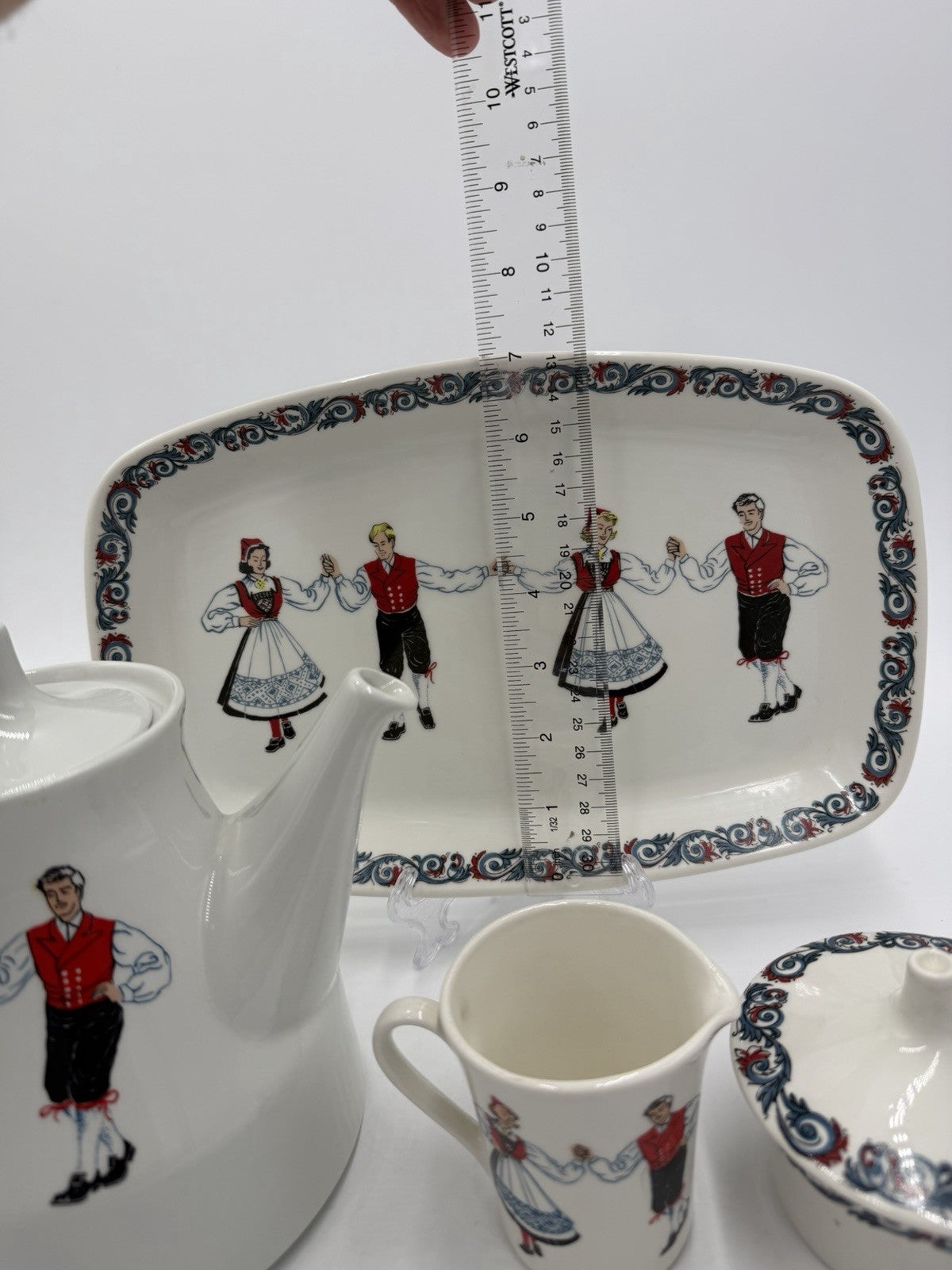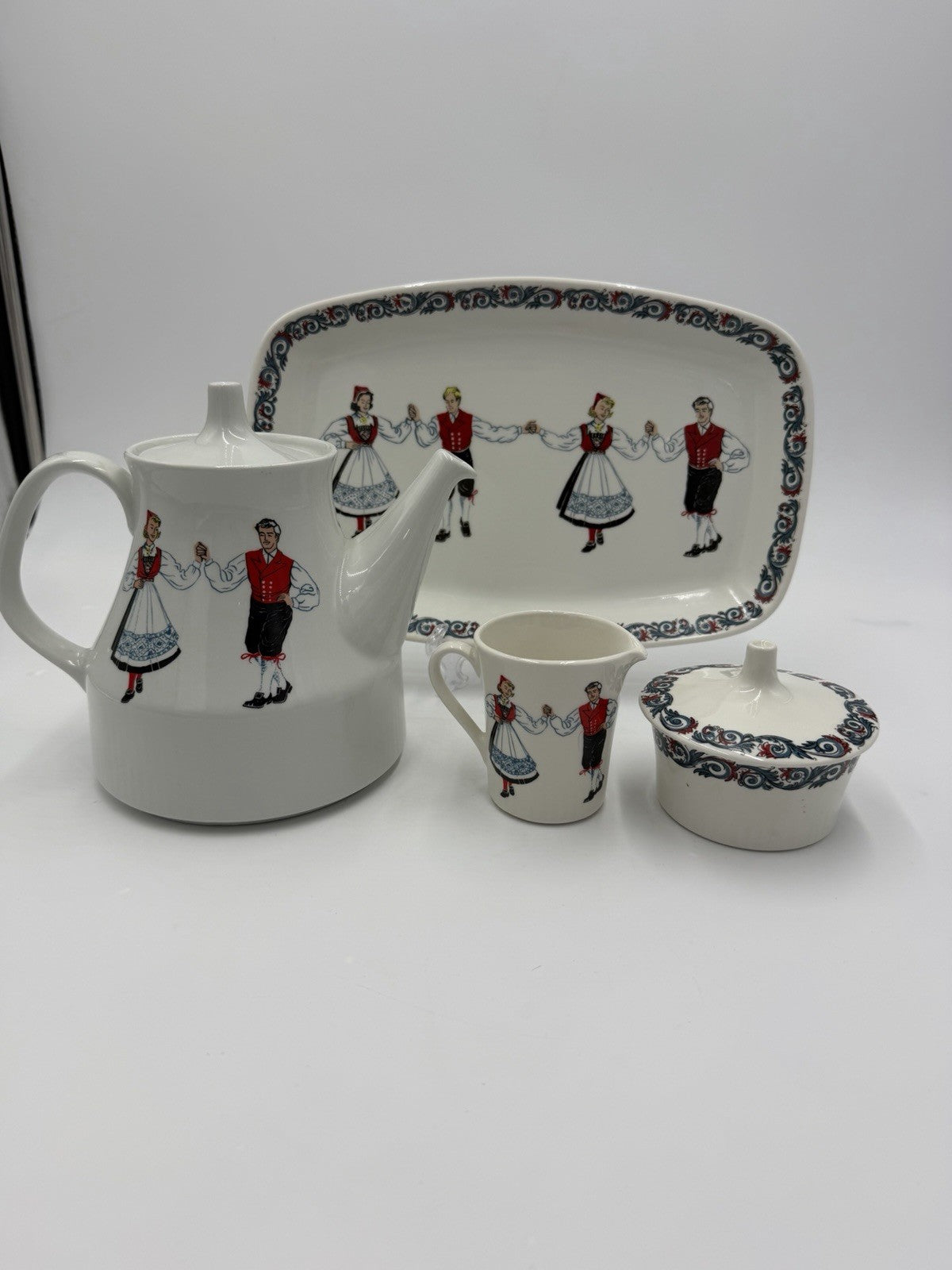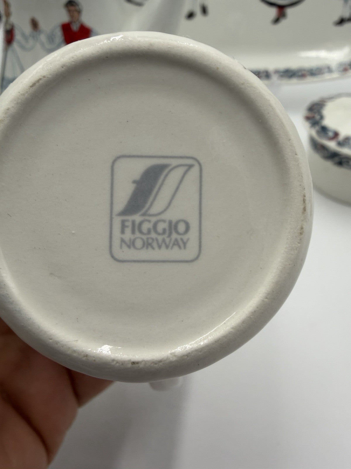 Vintage Figgjo Flint Hardanger Dancers Teapot Creamer Sugar Bowl Platter Norway